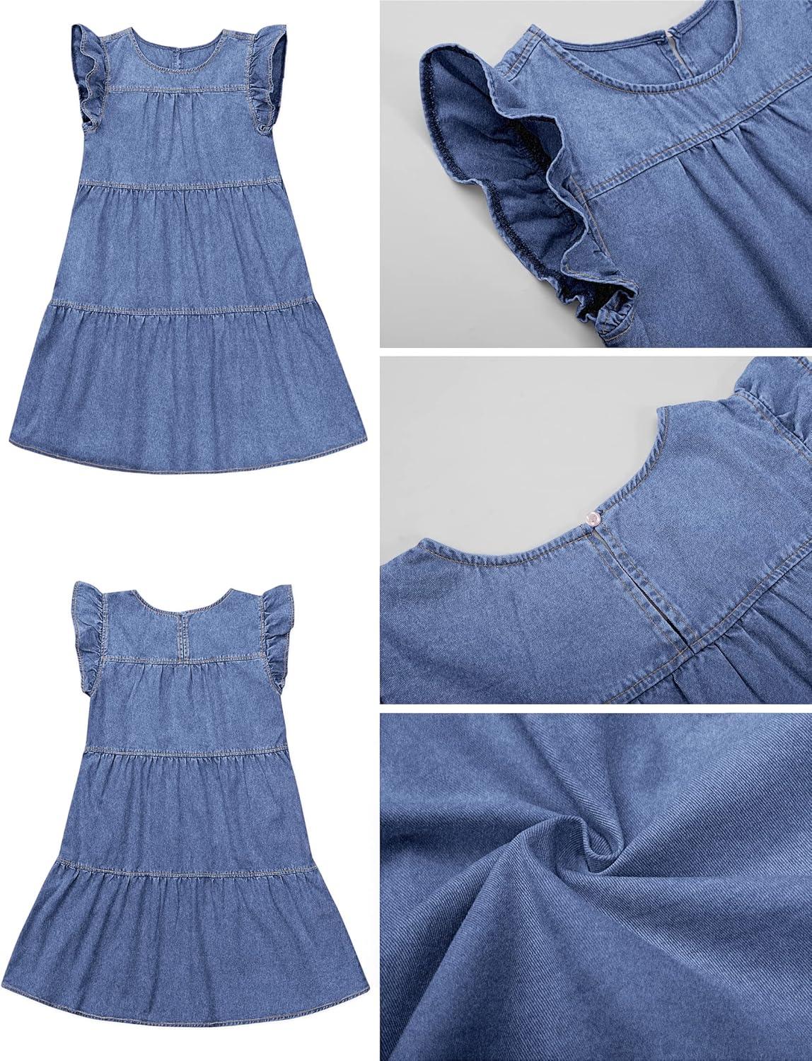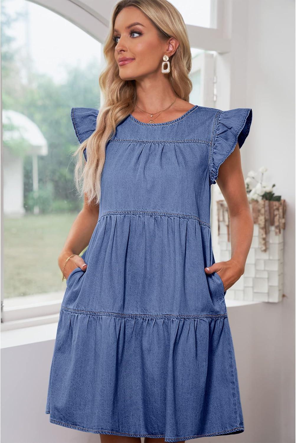 luvamia 2025 Denim Dress for Women Summer Babydoll Sleeveless Ruffle Sleeve Mini Dresses Loose Flowy Swing Pleated Dress(Bay Blue)