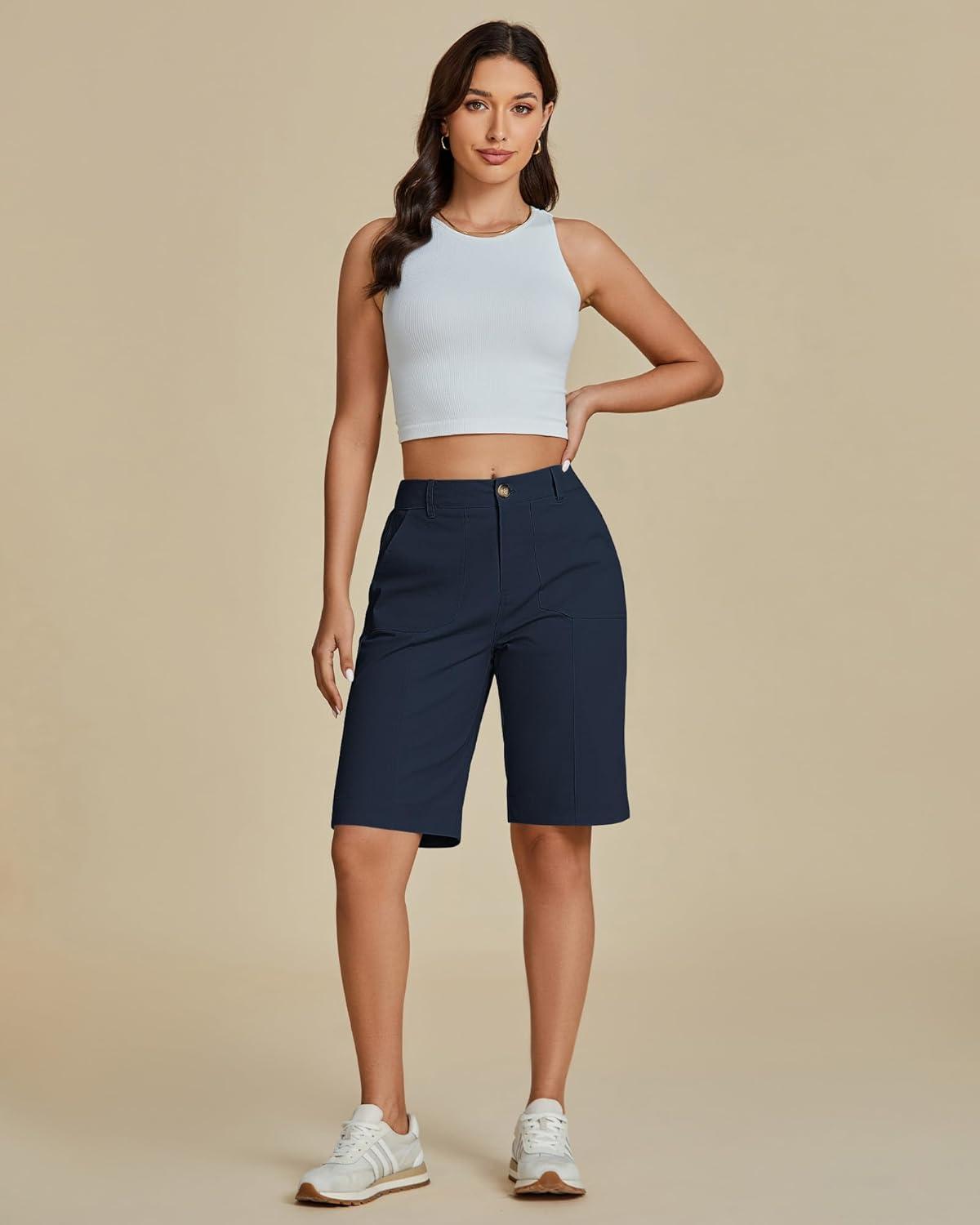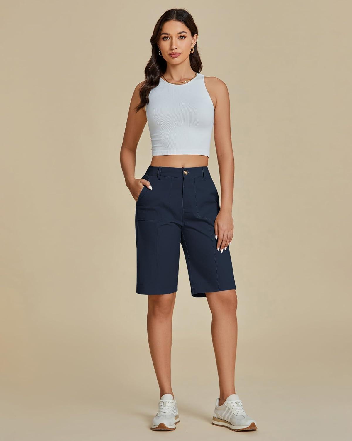 Don’t break the bank! Get the luvamia Bermuda Shorts for Women Knee Length High Waisted Cotton Elastic Wasit Summer Dressy Casual Long Chino Shorts(Dark Blue) you want at a price you can afford during our markdown sale.