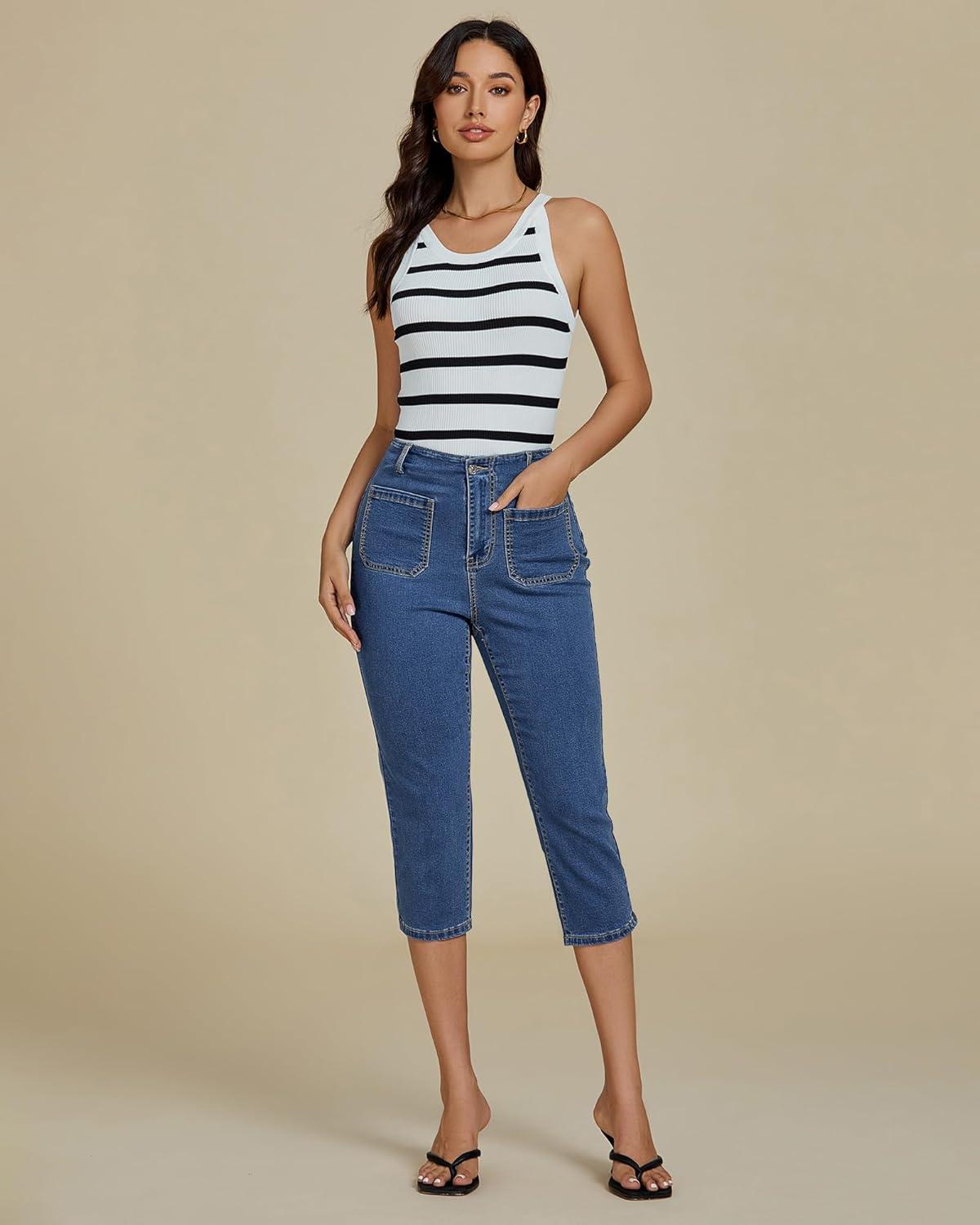 Don’t break the bank! Get the luvamia Capris Jeans for Women Trendy High Waisted Patch Pocket Casual Summer Cropped Stretchy Denim Skinny Capri Pants(Classic Blue) you want at a price you can afford during our markdown sale.