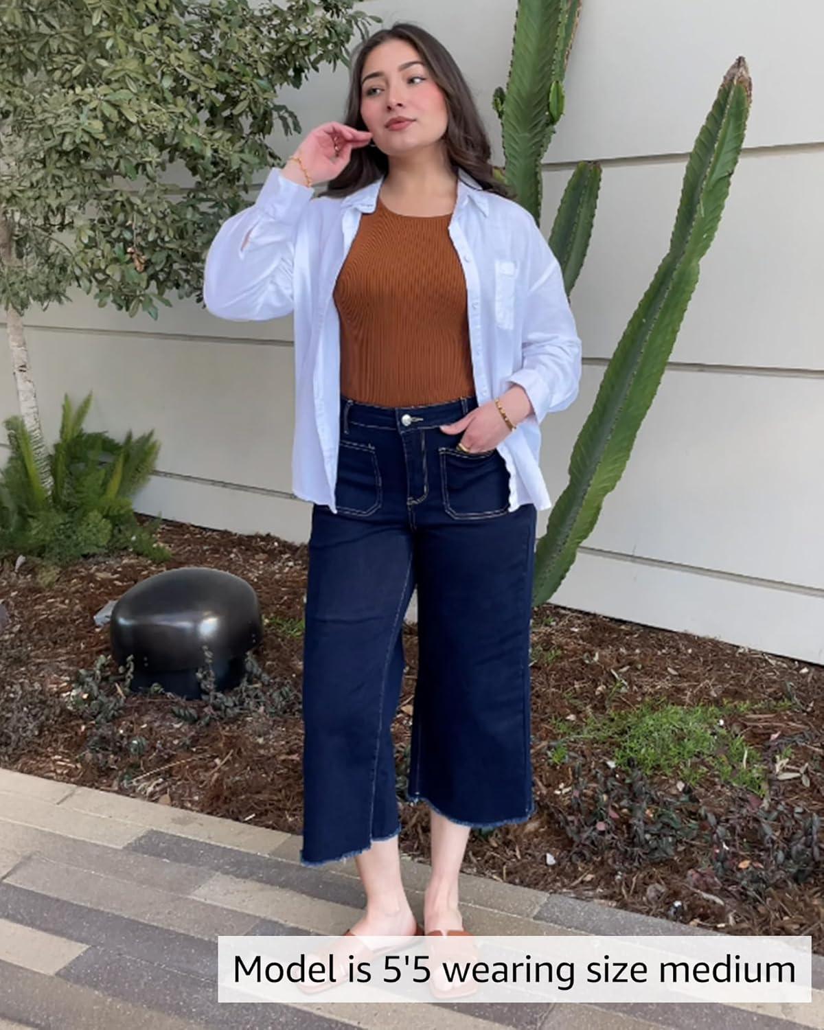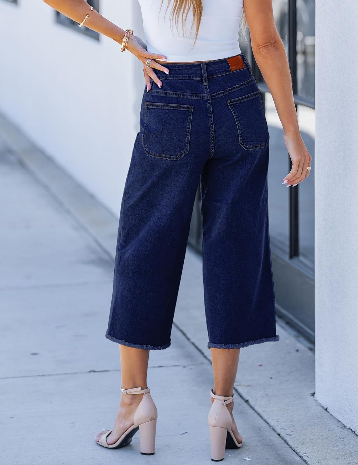 Save big on luvamia Capris Jeans for Women Wide Leg High Waisted Trendy Raw Hem Patch Pocket Cropped Stretchy Denim Capri Pants(Midnight Blue) and accessories during our BOGO sale. Buy one, get one 50% off!