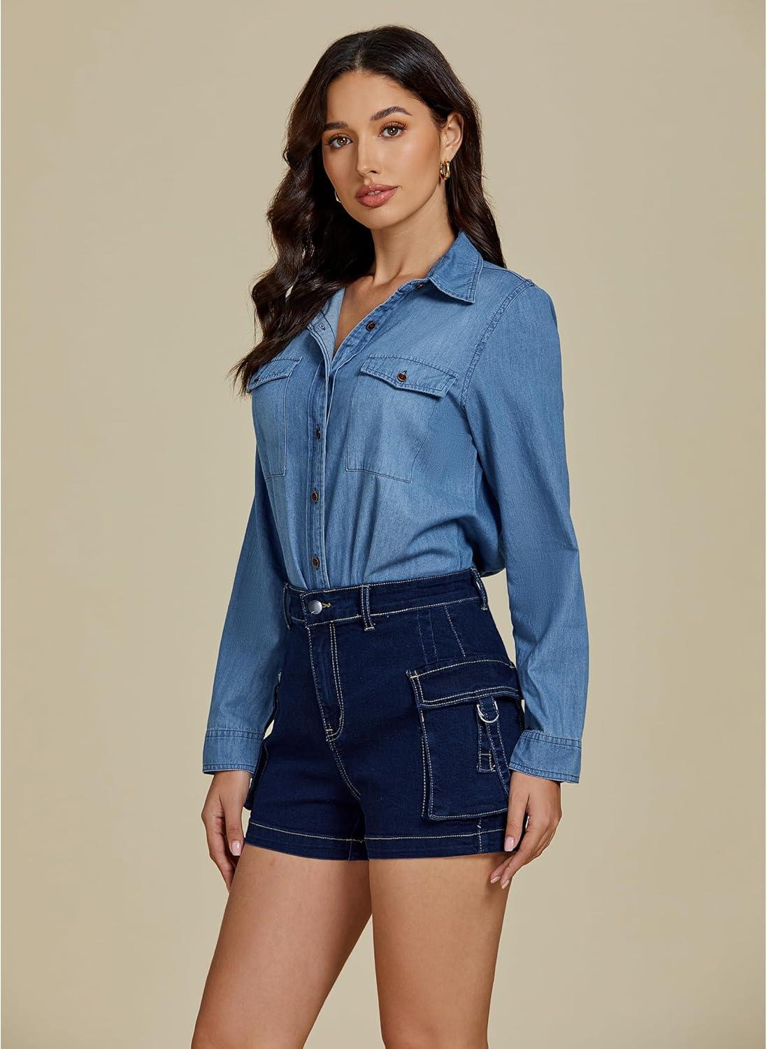 luvamia Cargo Shorts for Women Trendy High Wasited Casual Summer Stretchy Utility Cut Off Shorts with Pockets(Medium Blue)