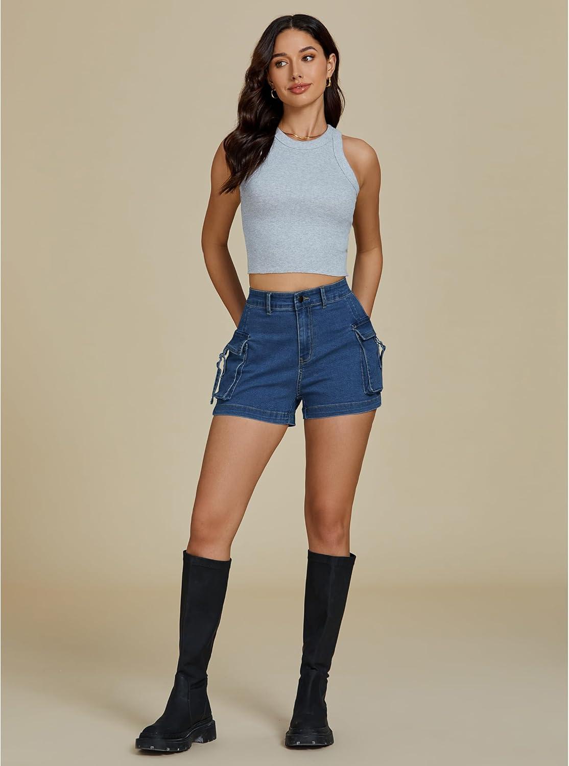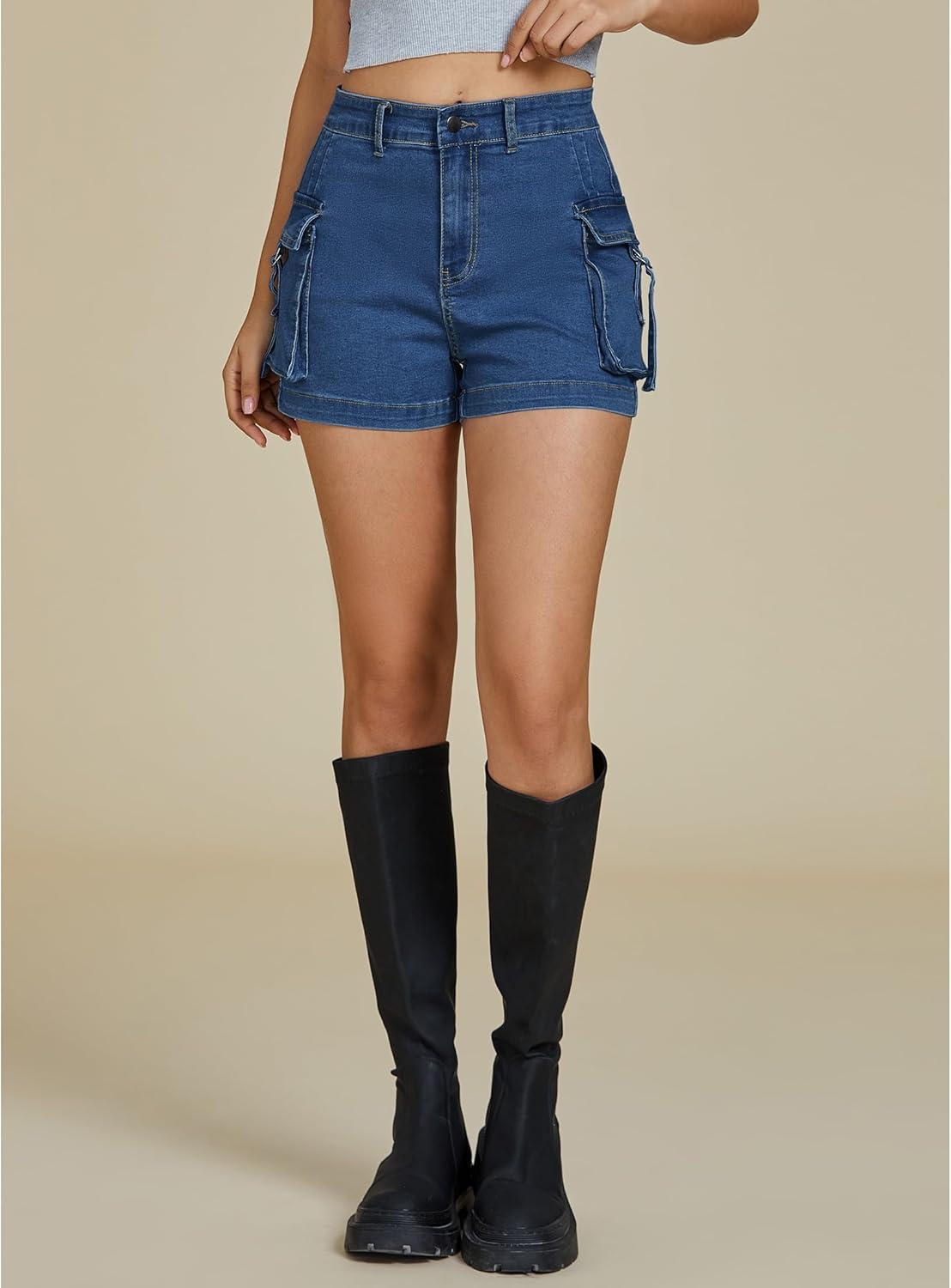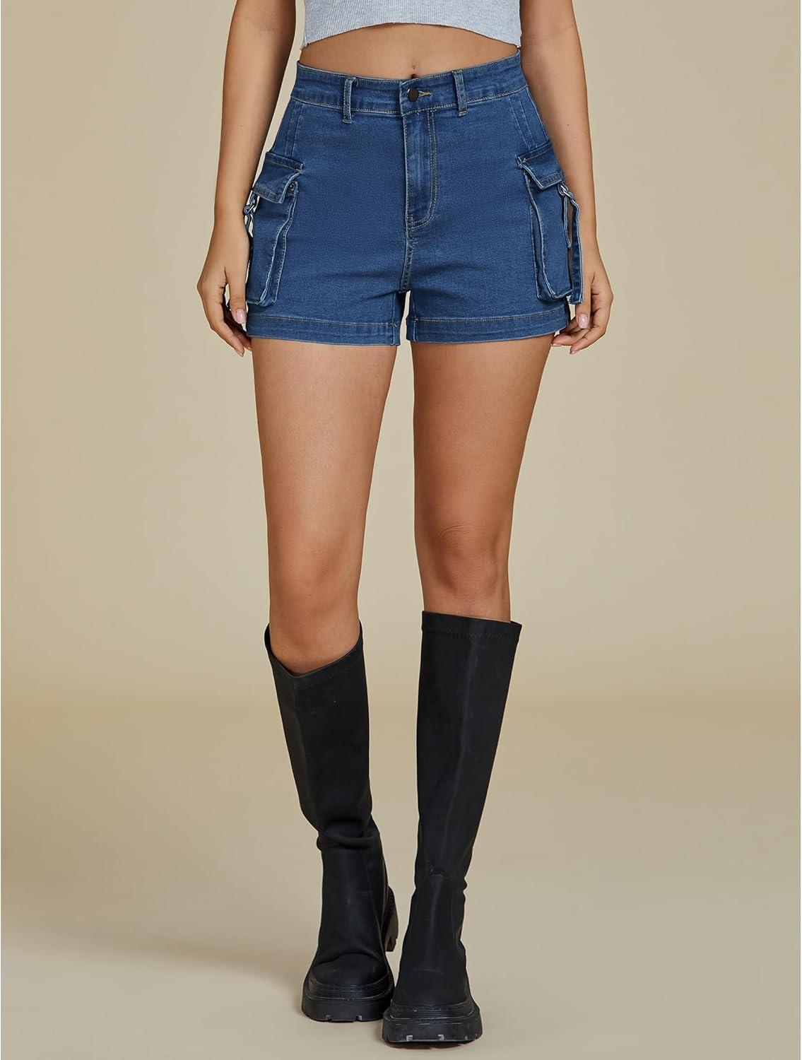 Get up to 70% off on luvamia Cargo Shorts for Women Trendy High Wasited Casual Summer Stretchy Utility Cut Off Shorts with Pockets(Classic Blue) styles during our end-of-season clearance event.
