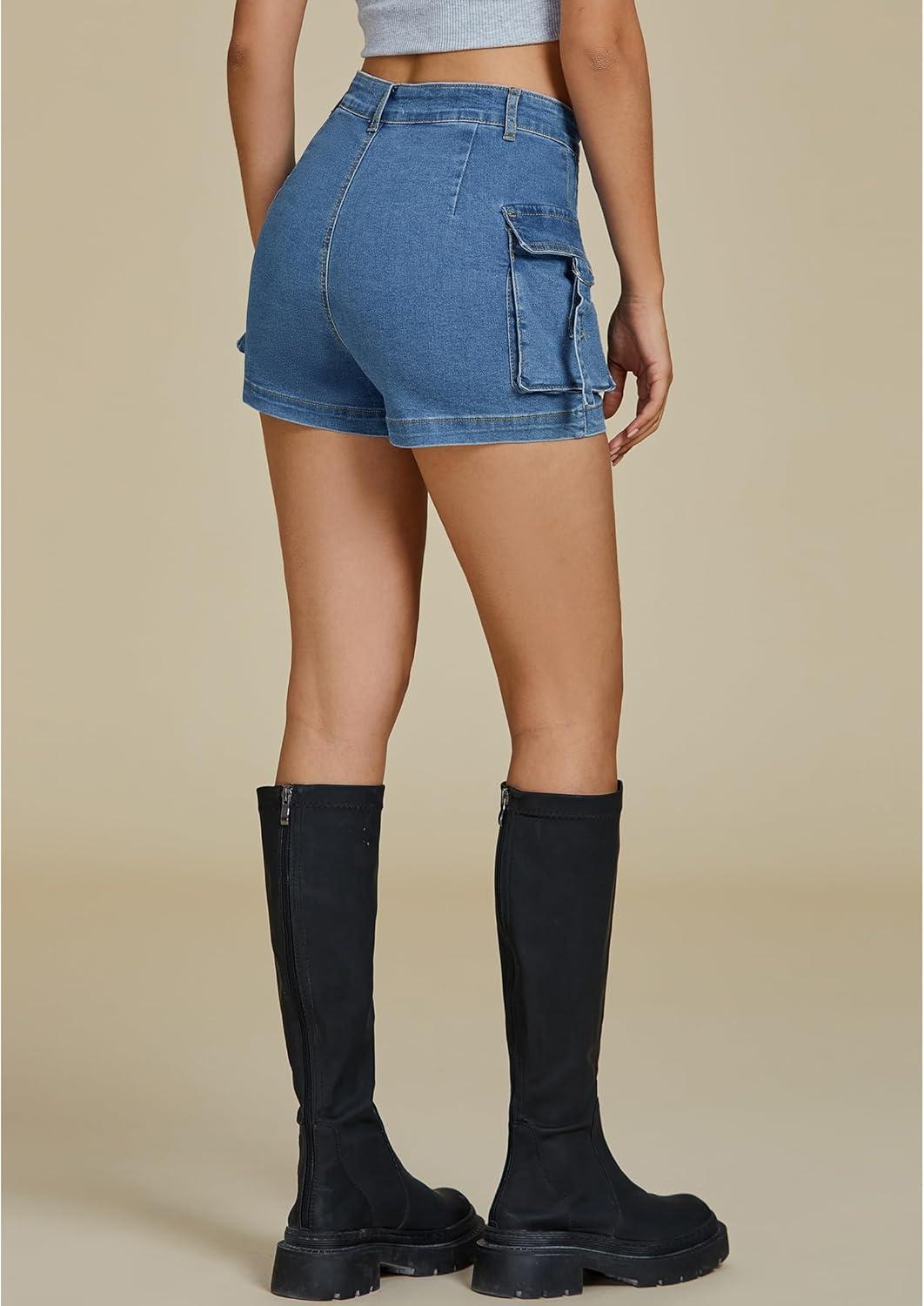imageluvamia Cargo Shorts for Women Trendy High Wasited Casual Summer Stretchy Utility Cut Off Shorts with PocketsMedium Blue