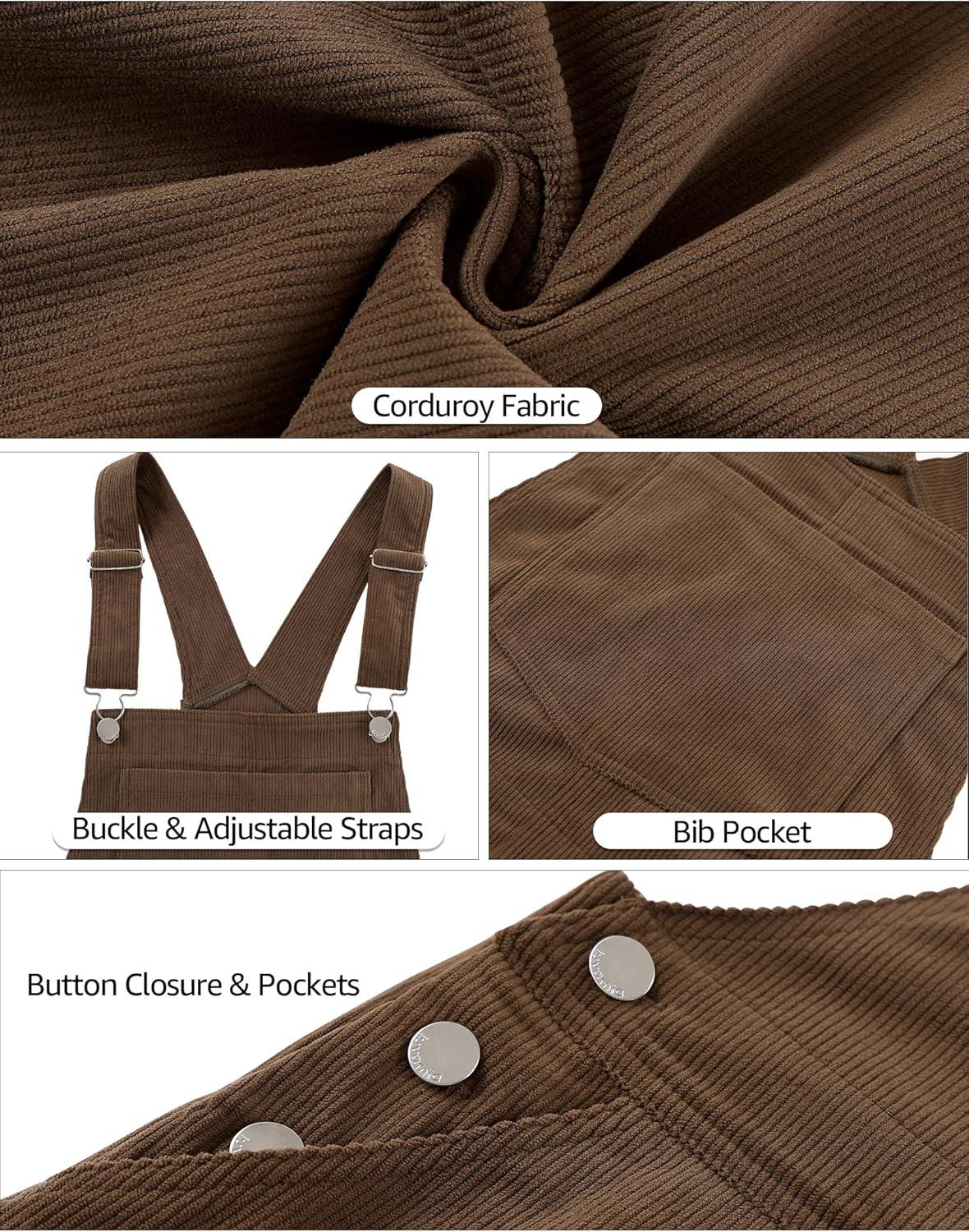Save big on luvamia Corduroy Overalls for Women Loose Fit Baggy Straight Casual Adjustable Straps Bib Jumpsuit Overalls with Pockets(Cocoa Brown) during our summer blowout sale. Limited quantities available.