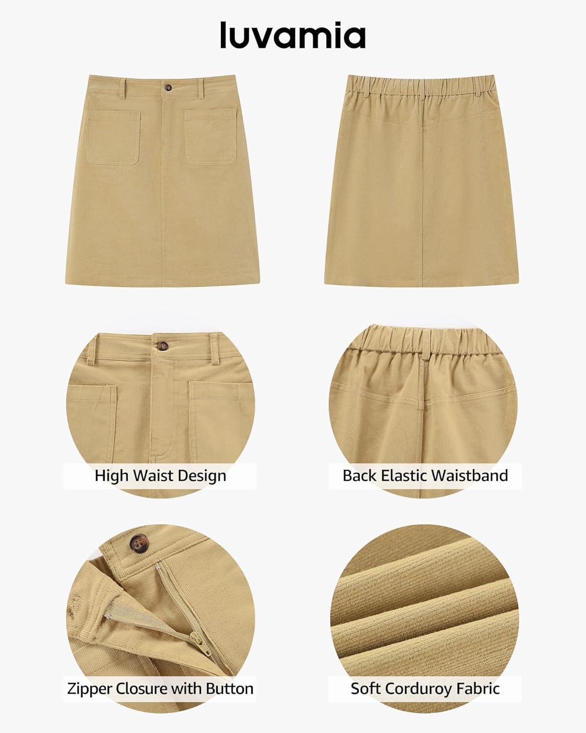 Get your hands on our newest luvamia Corduroy Skirts for Women High Waisted Trendy Fall Elastic Waist Casual Stretchy Short Skirts with Patch Pockets(Almond) and enjoy a limited-time discount offer.