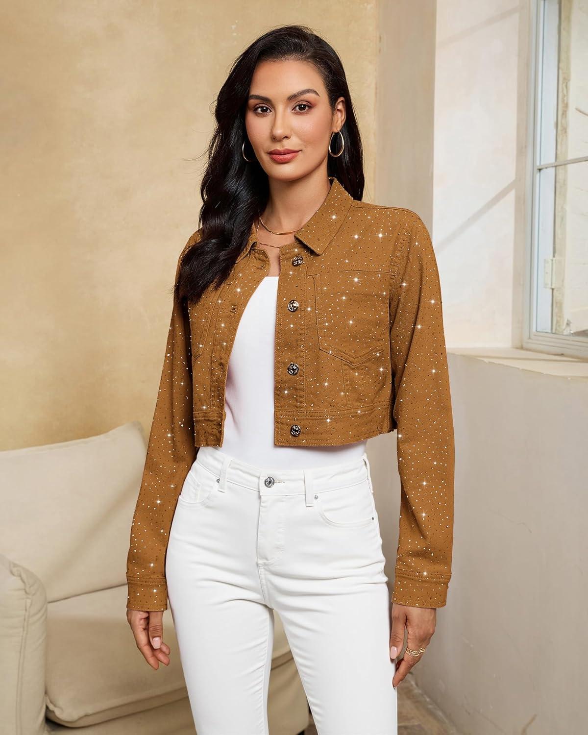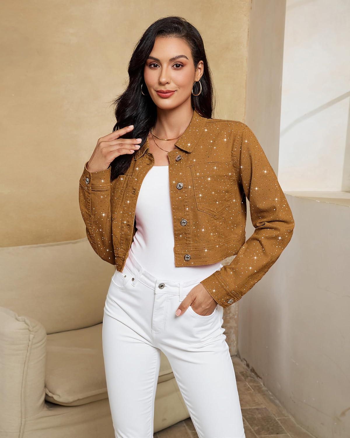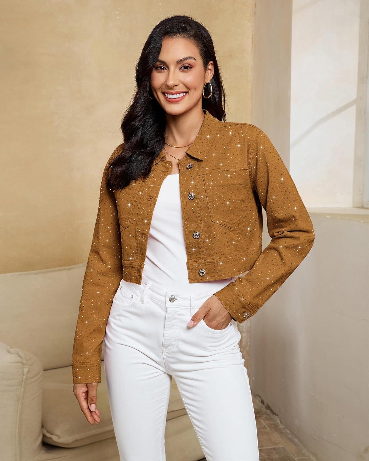 Score big on luvamia Cropped Jean Jacket Women Trendy Rhinestone Embellished Going Out Party Short Stretchy Trucker Denim Jackets(Brown) and accessories during our BOGO sale. Buy one, get one 50% off!