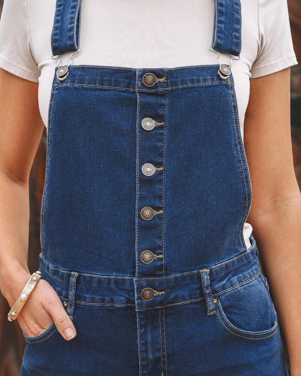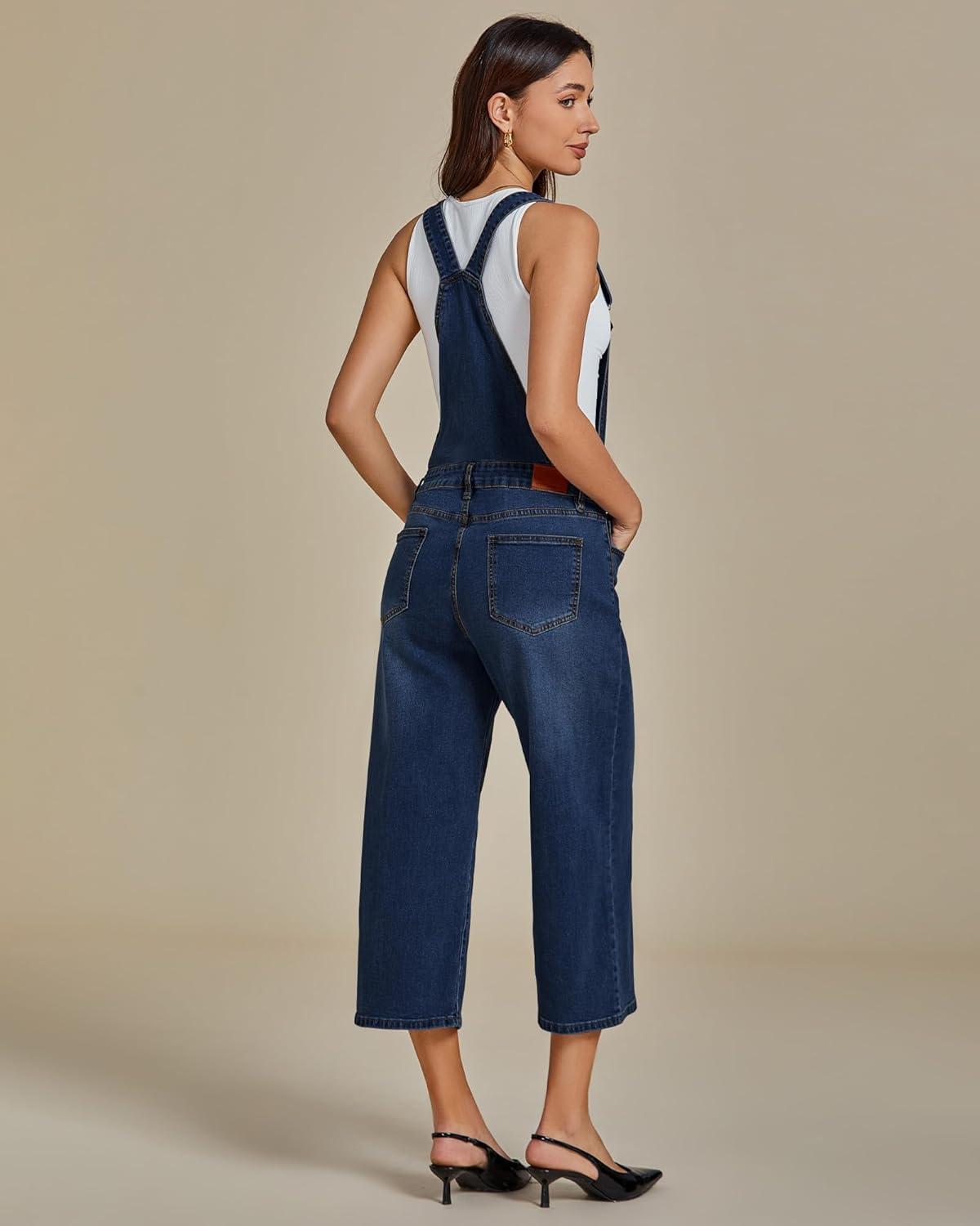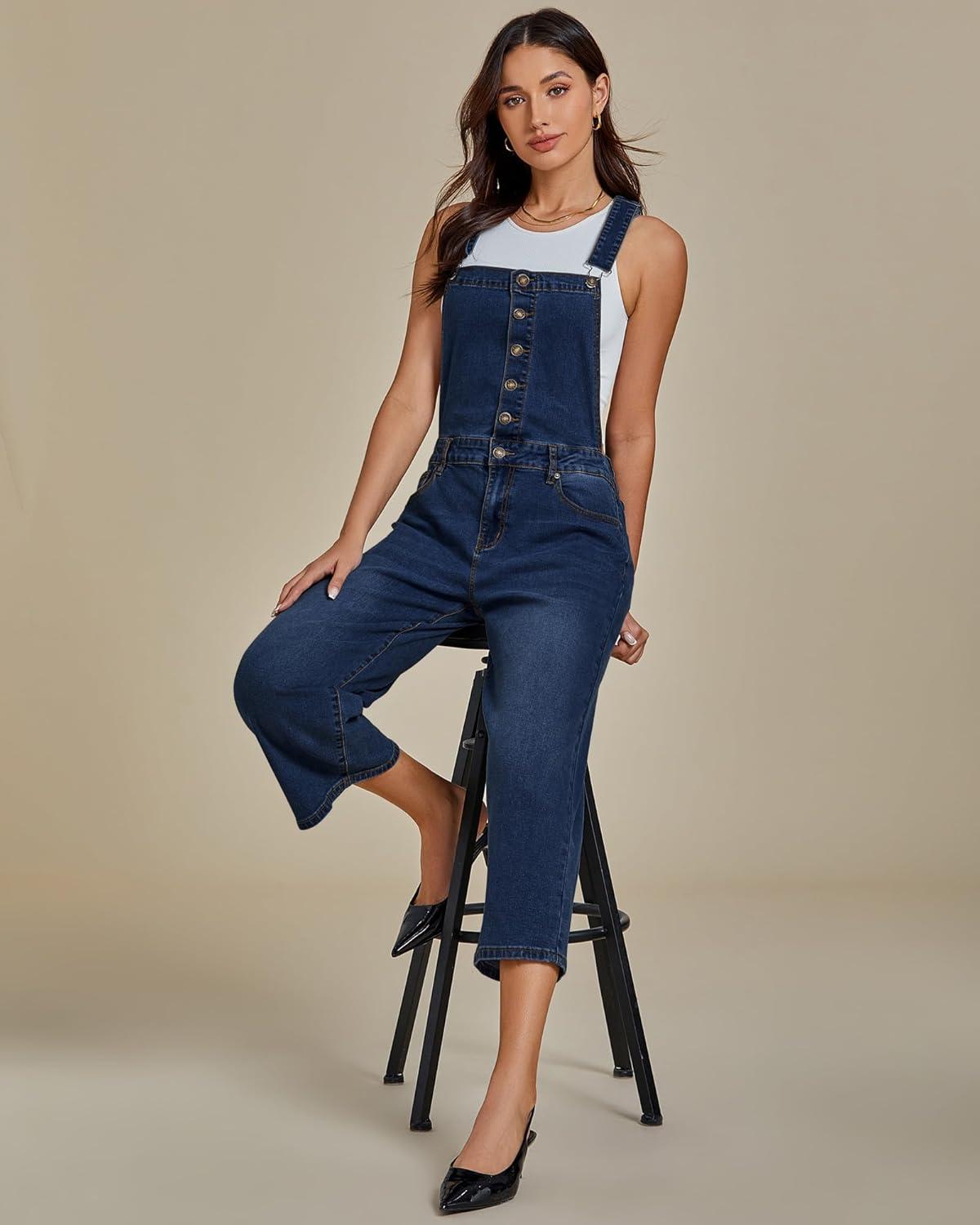 luvamia Denim Overalls for Women Stretchy Capri Jean Jumpsuit Loose Fit Summer Cropped Wide Leg Button Front Bib Overall(Darkness Blue)