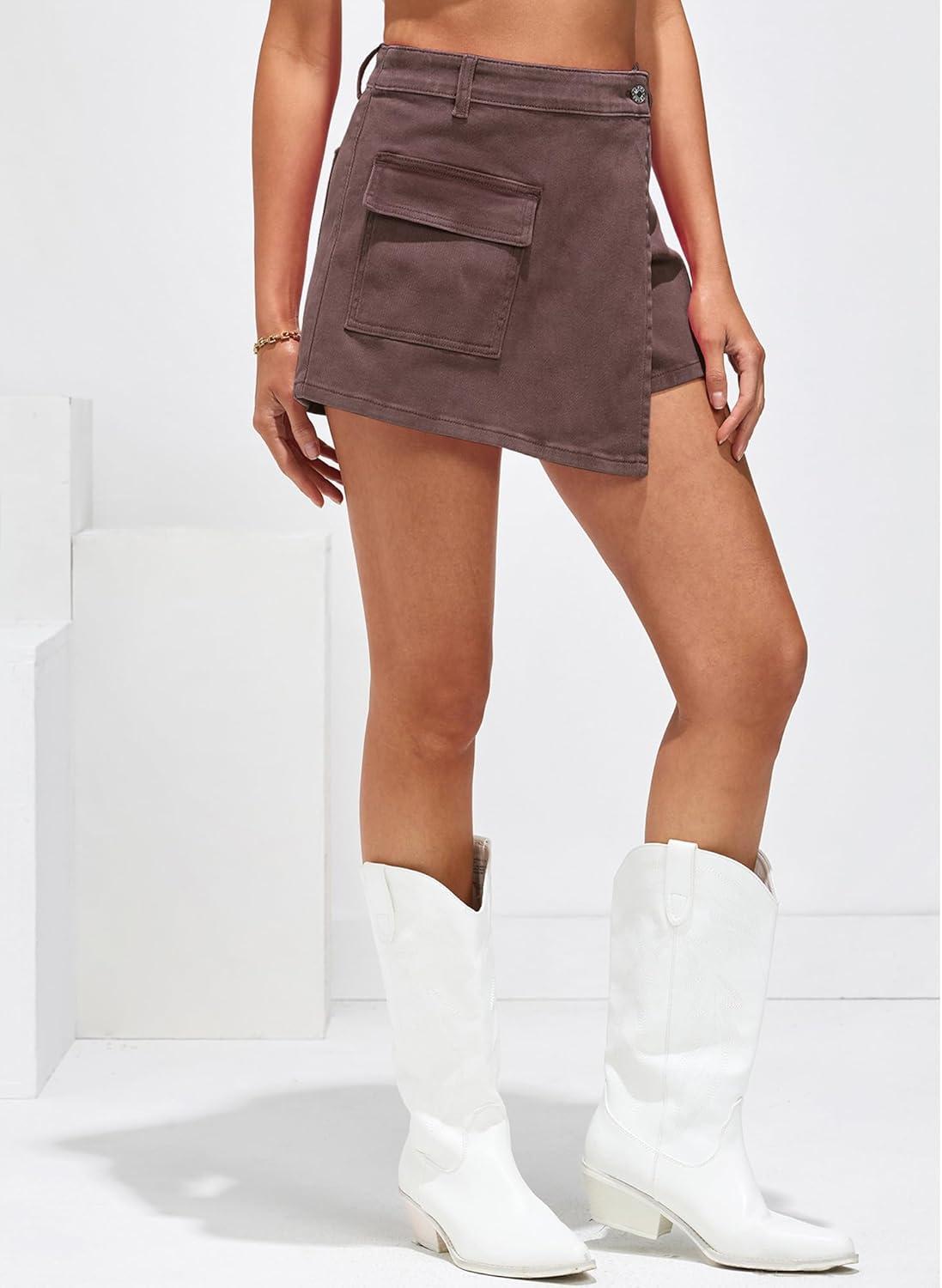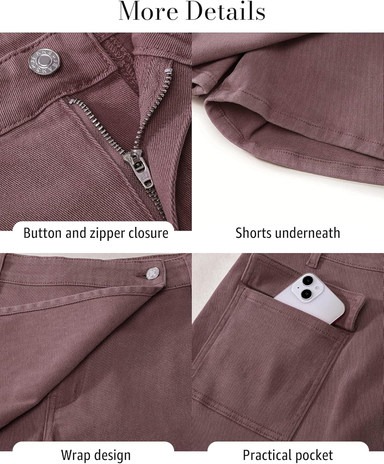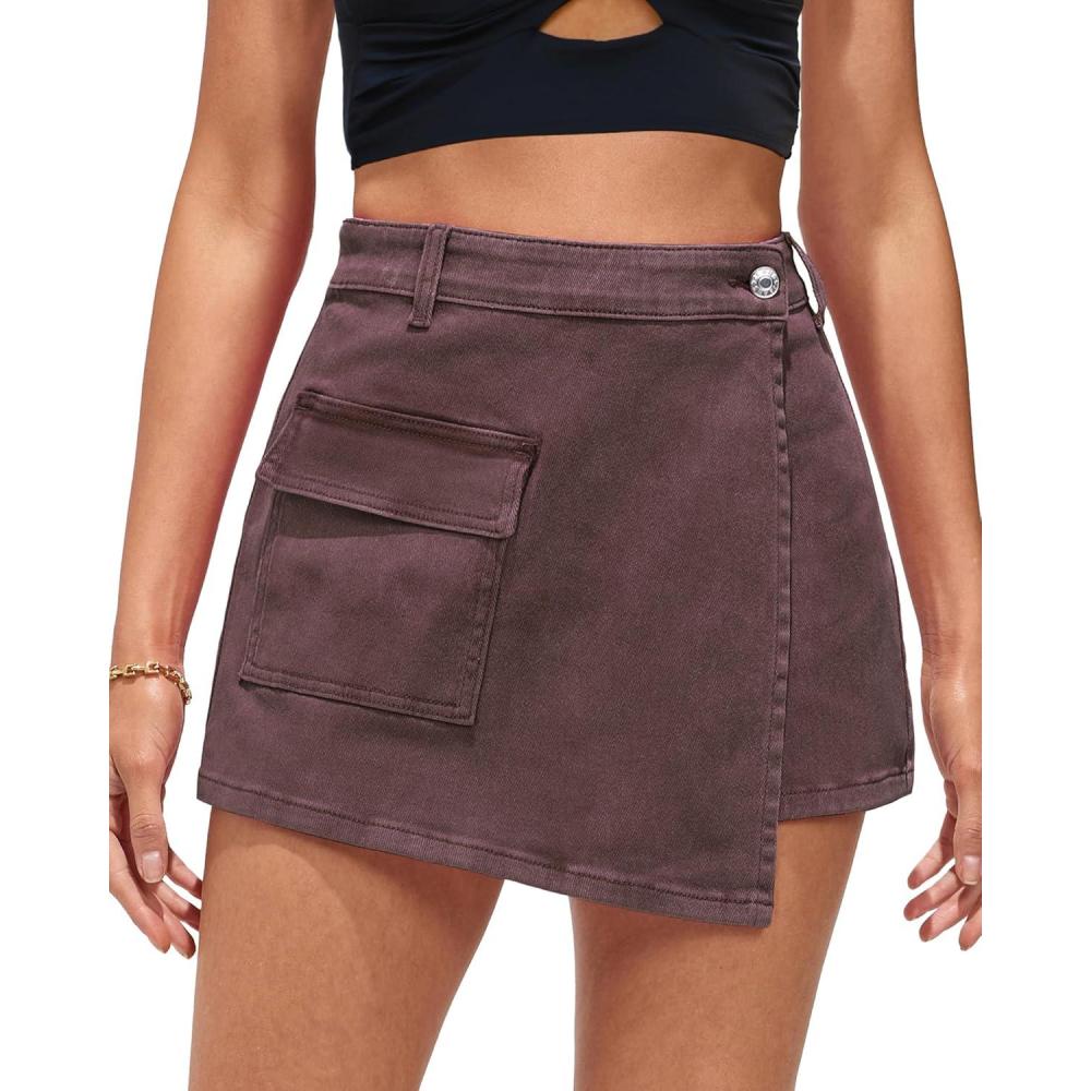 Get up to 70% off on luvamia Denim Skorts for Woman Cargo Faux Wrap Jean Skort Skirts Stretchy High Waisted Skirt Shorts Country Concert Wear(Pecan Brown) styles during our end-of-season clearance event.