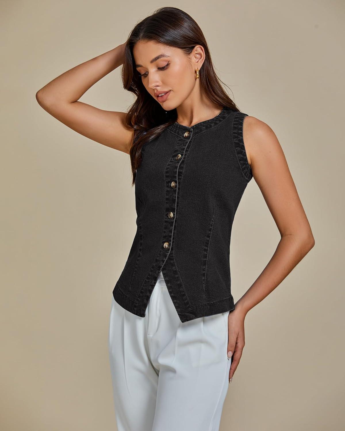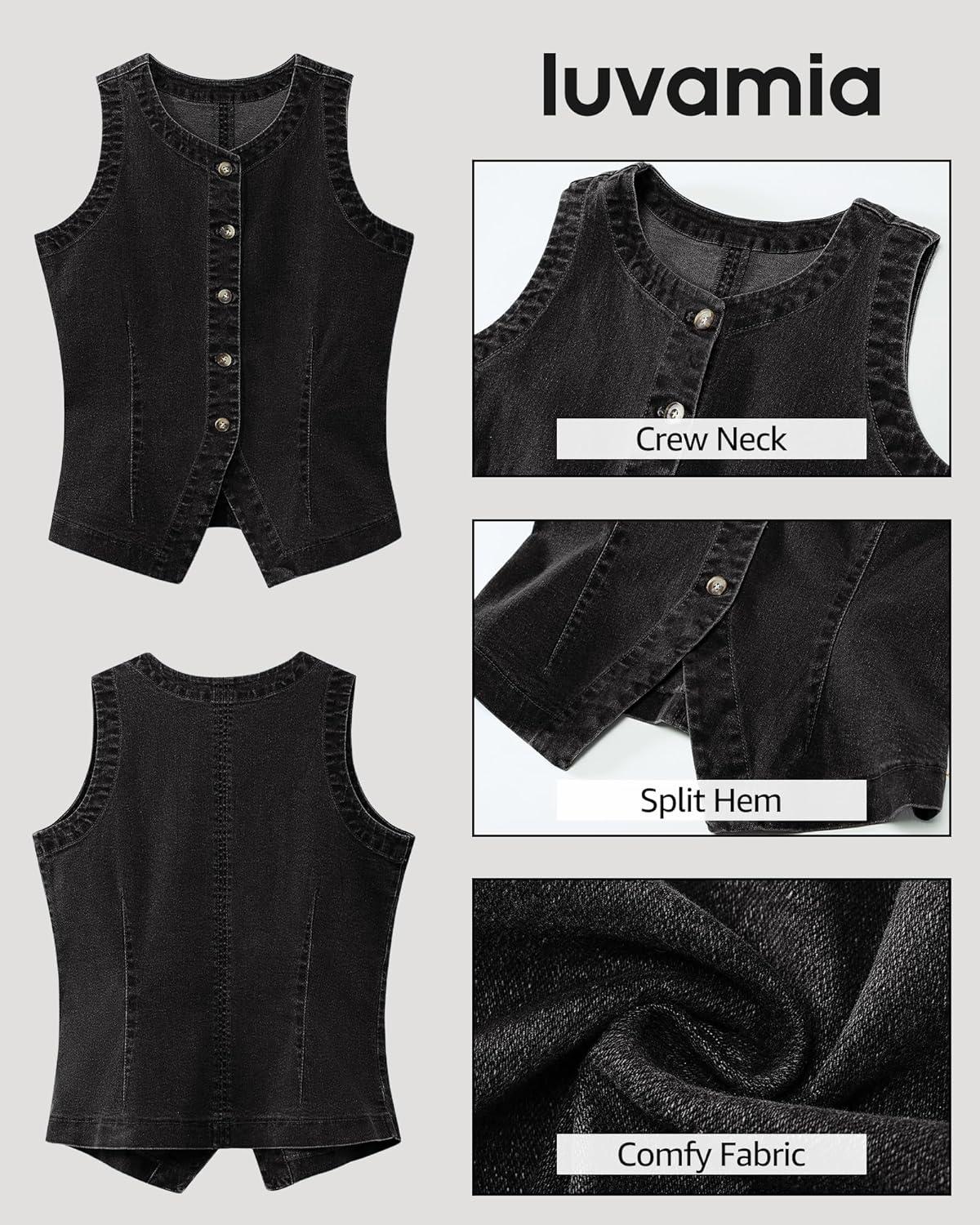 Get more for your money with our exclusive bundle deals on luvamia Denim Vest for Women Sleeveless Strechy Jean Vest Top Button Down Crewneck Casual Summer Western Waistcoat(Vintage Black) and accessories.