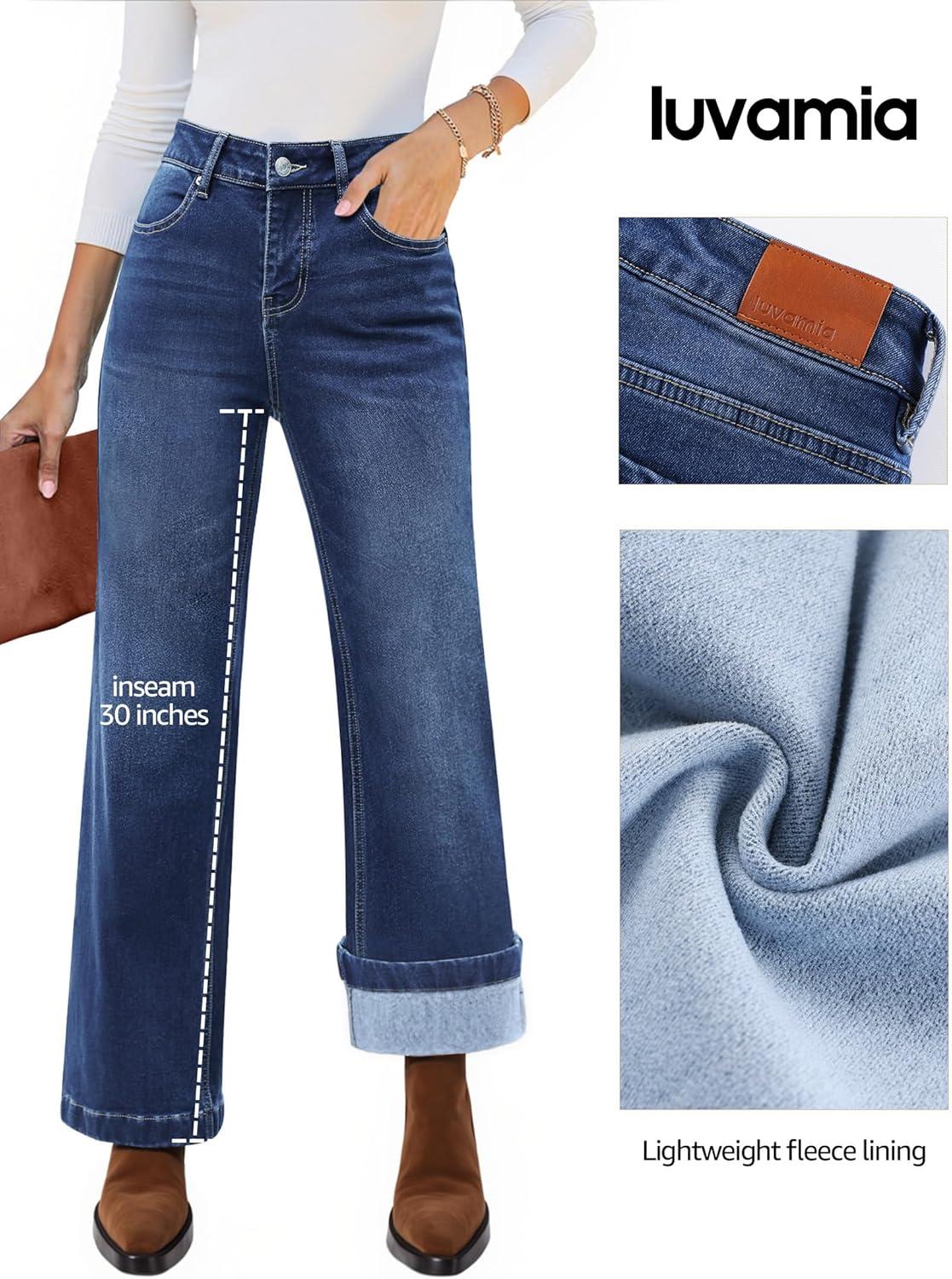 luvamia Flare Jeans for Women Thin Fleece Lined High Waisted Wide Leg Trendy Fall Stretchy Denim Pants Trouser Jeans(Indigo Skyblue)