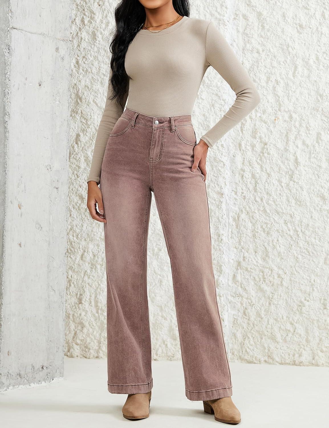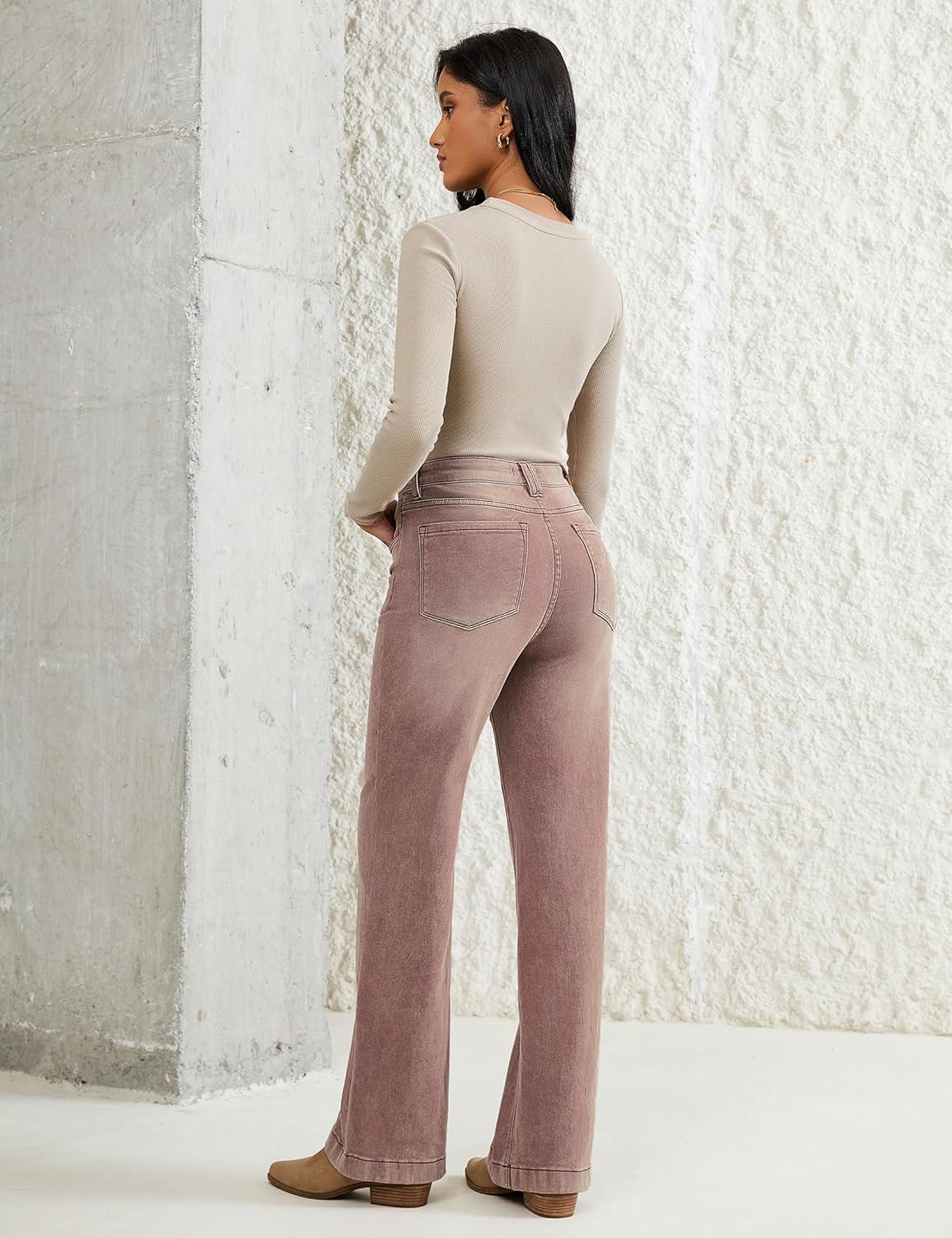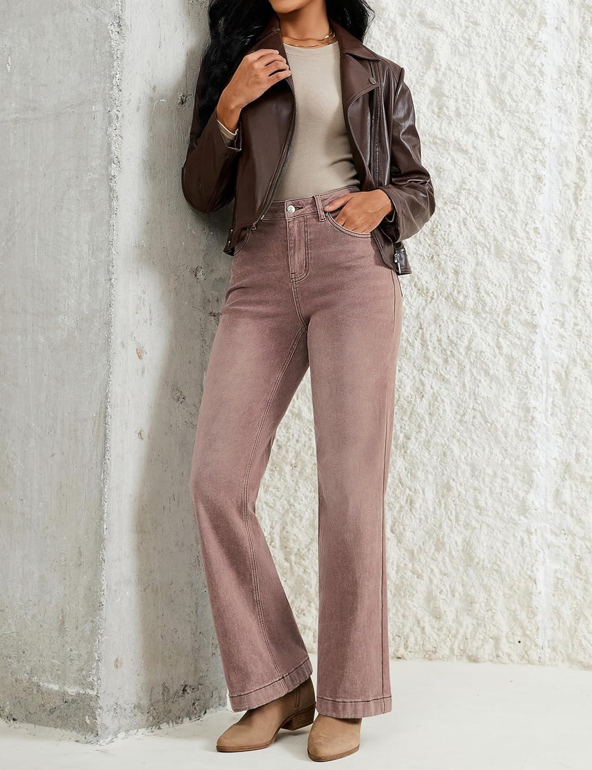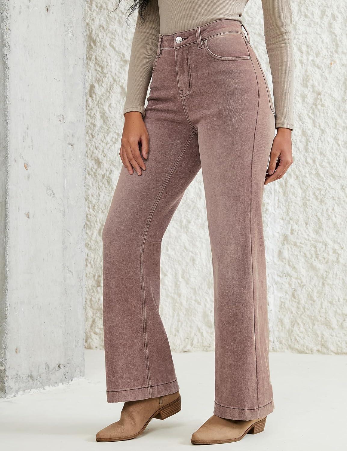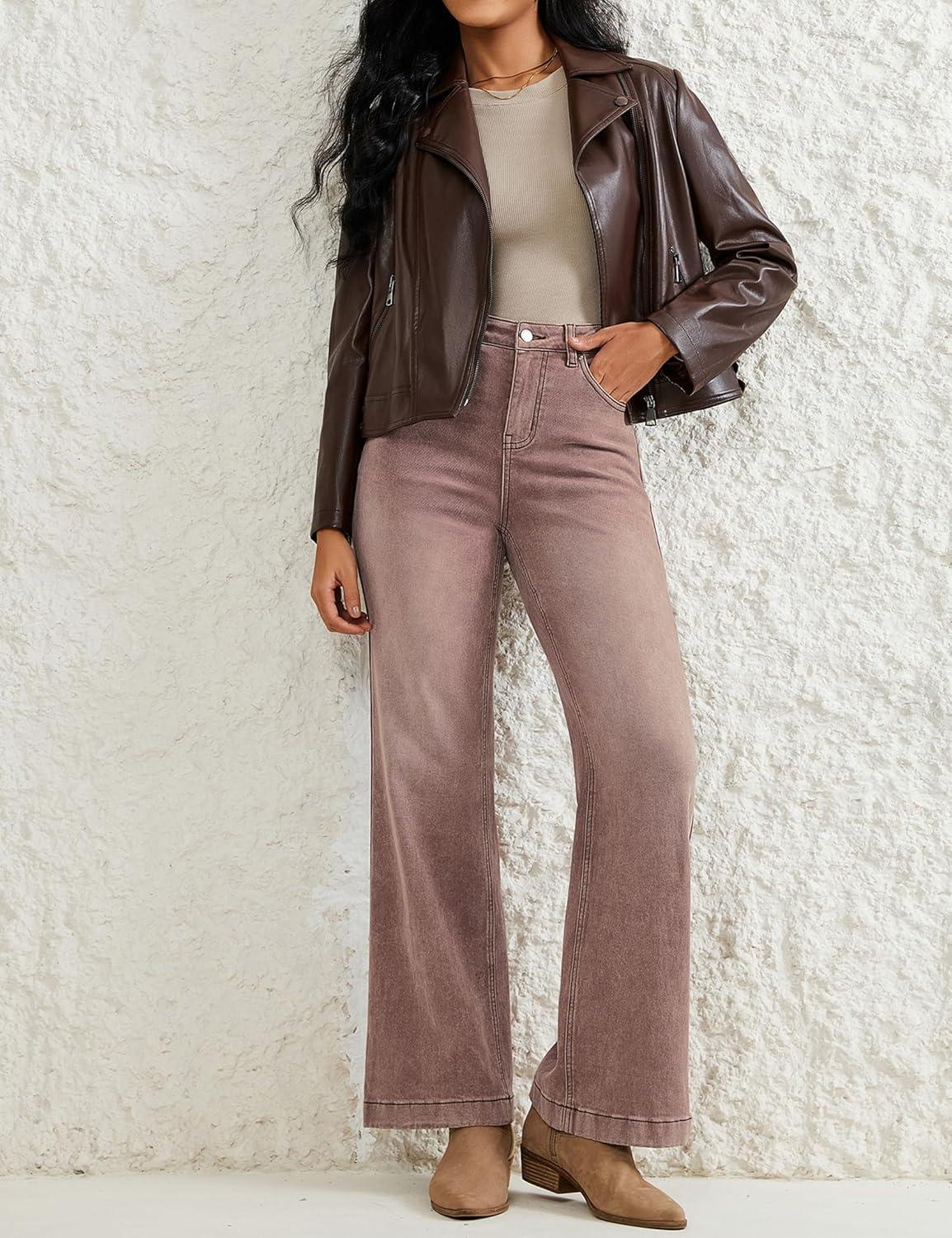 luvamia Flare Jeans for Women Thin Fleece Lined High Waisted Wide Leg Trendy Fall Stretchy Denim Pants Trouser Jeans(Pecan Brown)