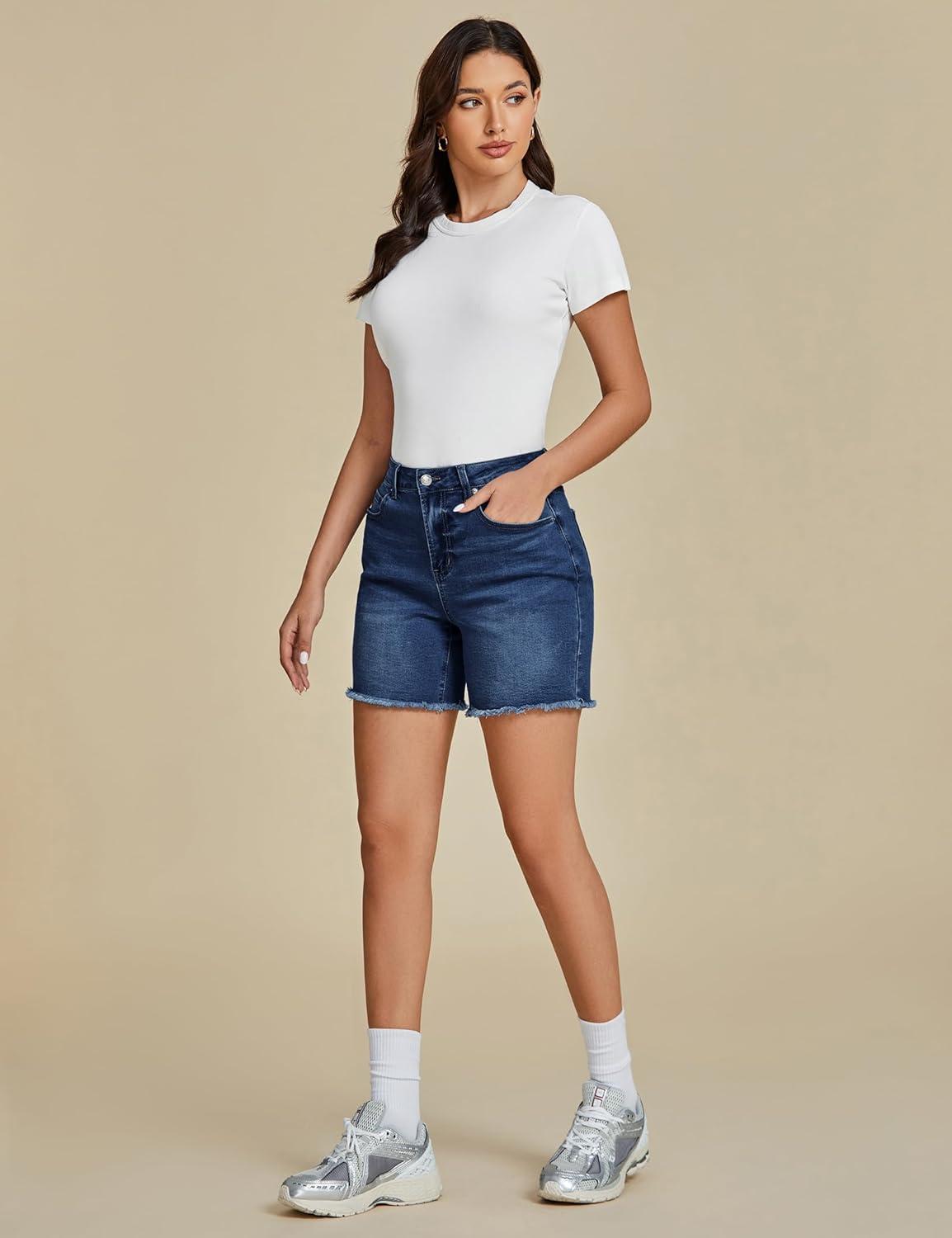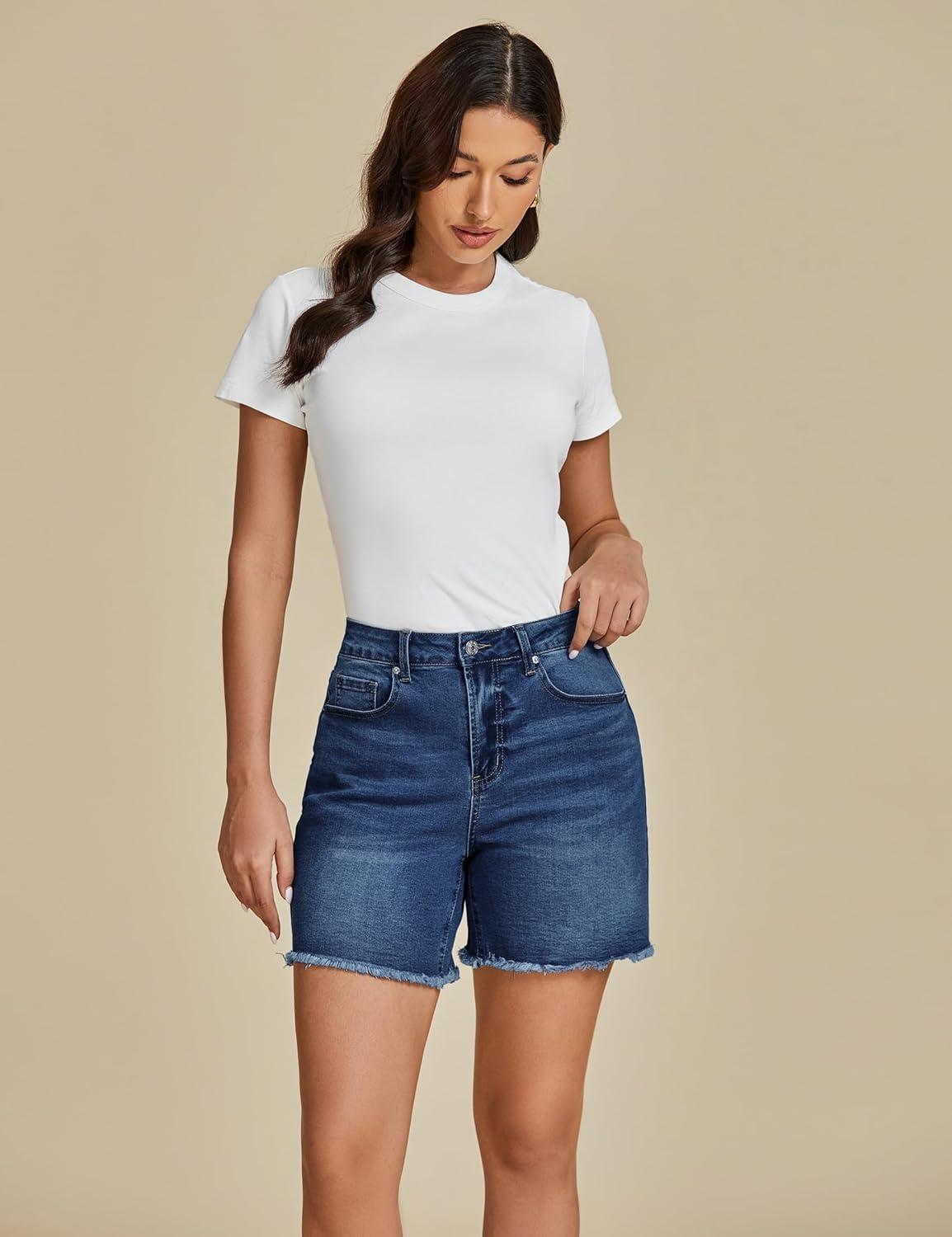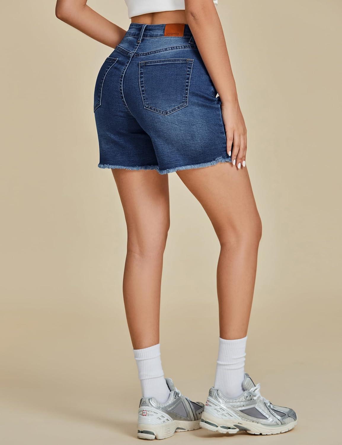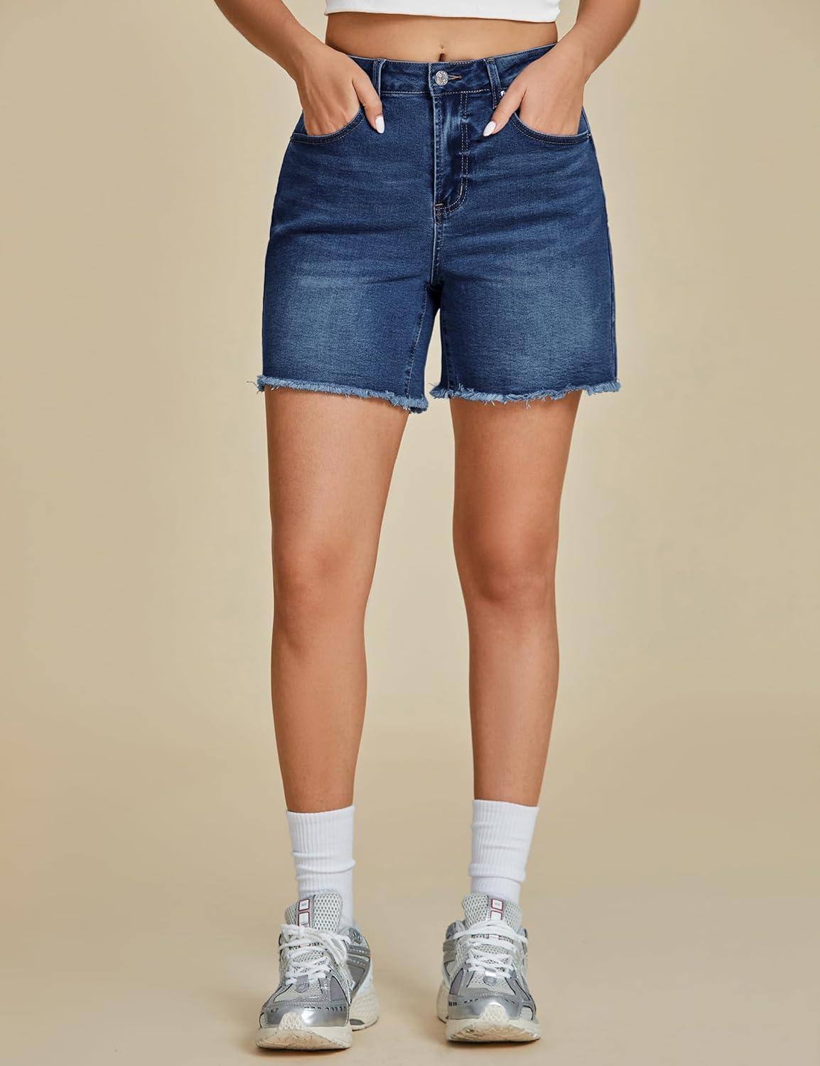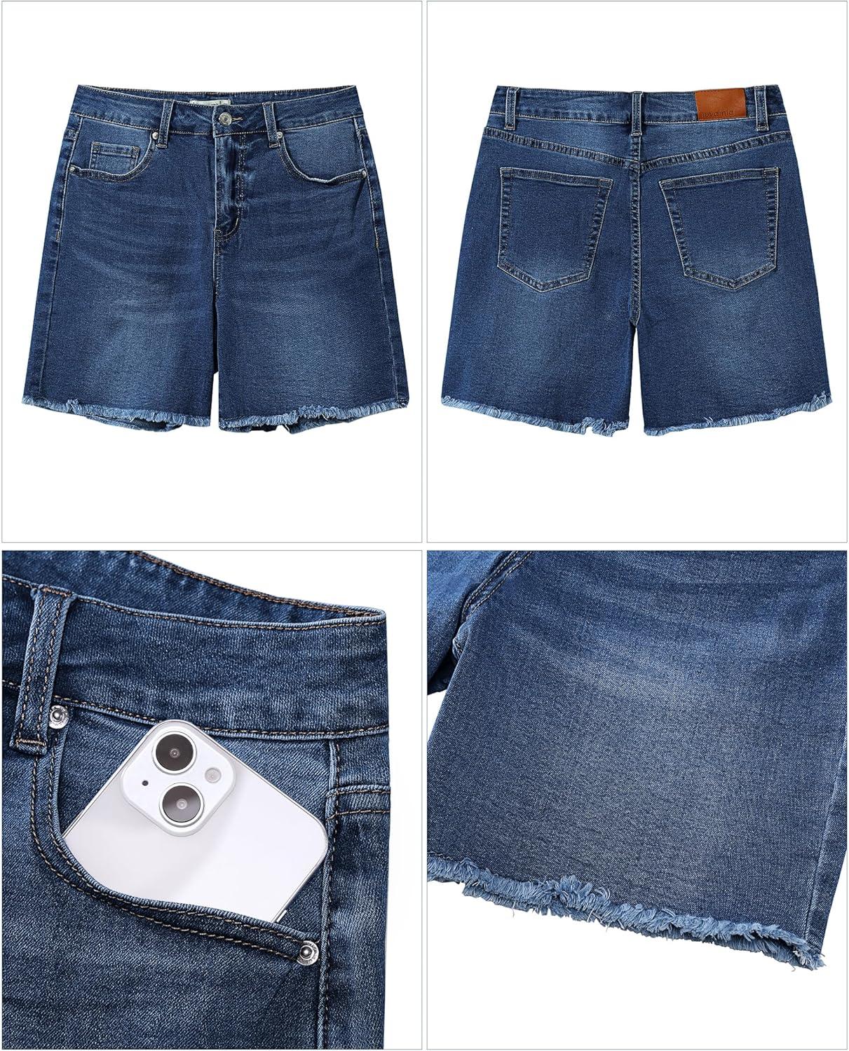 Don’t wait, get up to 50% off on luvamia FleXclusive Jean Shorts for Women Trendy High Waisted Stretchy Denim Summer Raw Hem Mom Long Shorts Cutoff Jorts(Darkness Blue) during our end-of-season sale event.