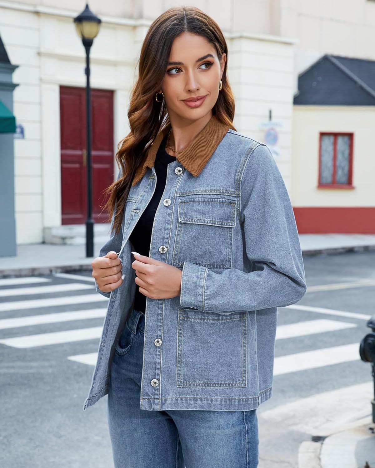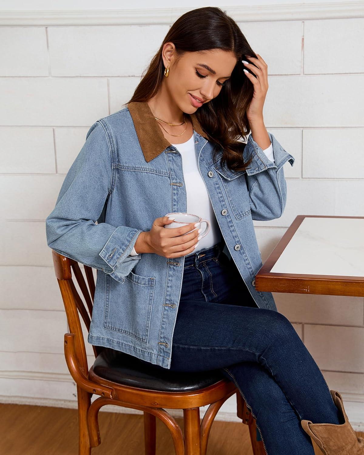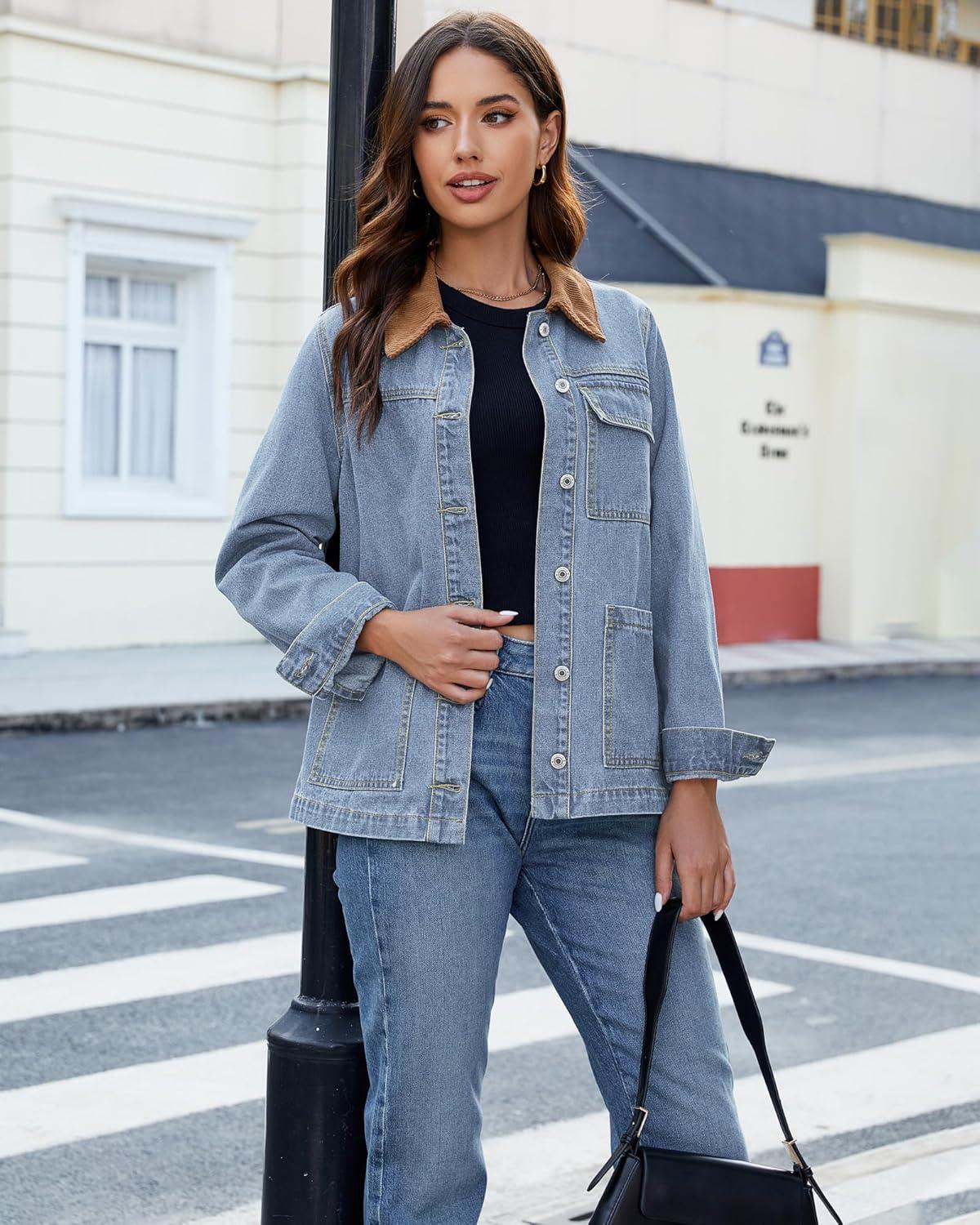 Don’t miss out on our limited-time offer: buy luvamia Jean Jacket Women Trendy Button Down Contrast Corduroy Collar Casual Loose Fit Denim Barn Jackets with Pockets(Roadknight Blue), get a free {accessory}!