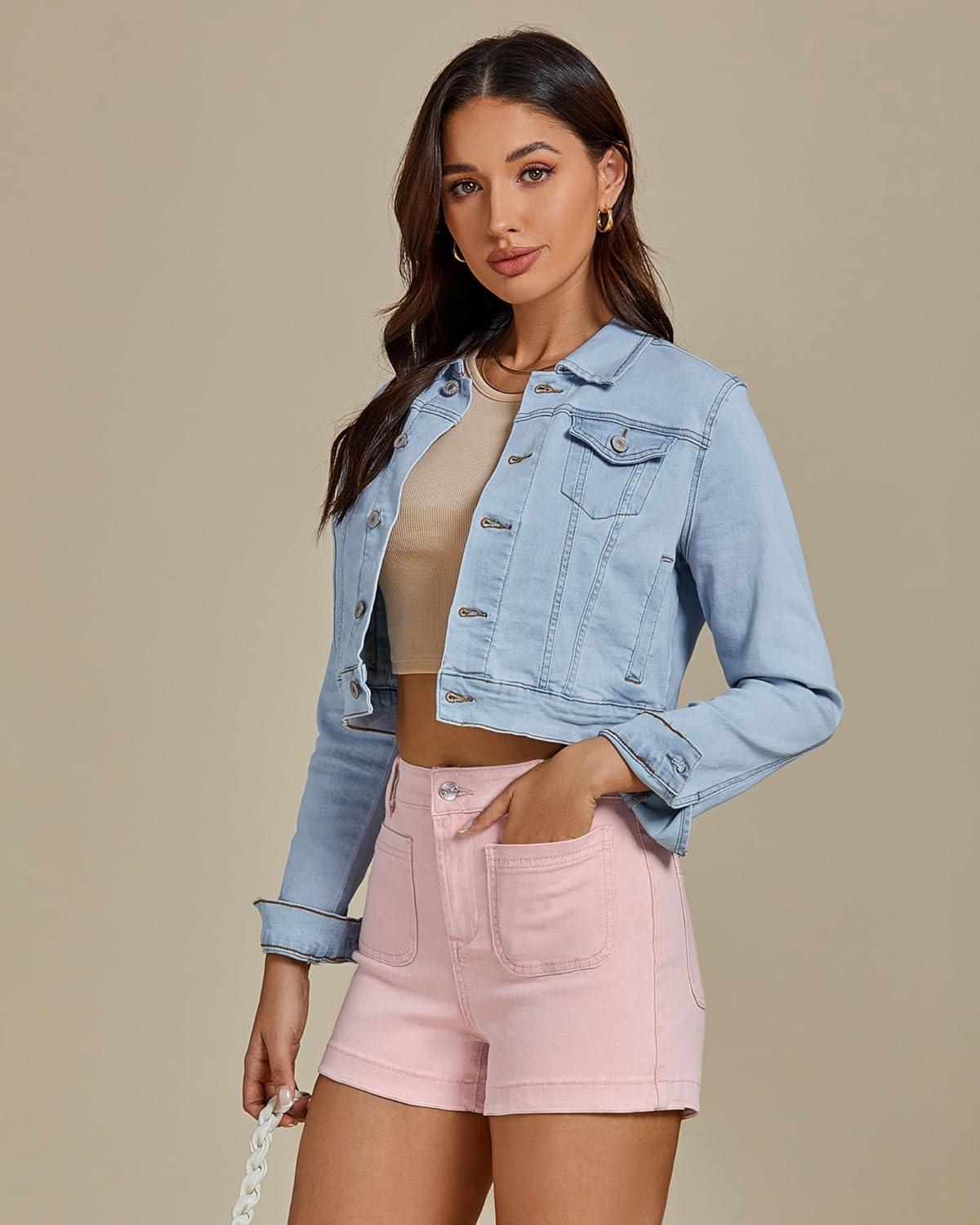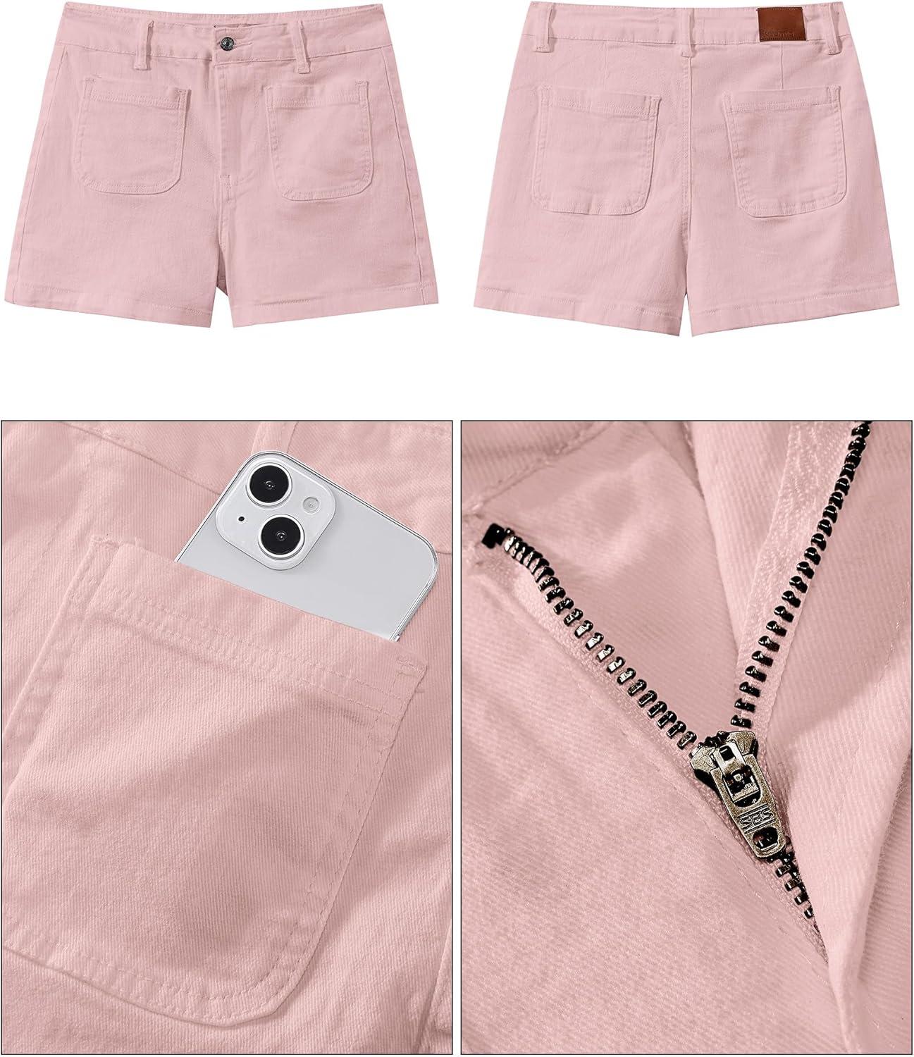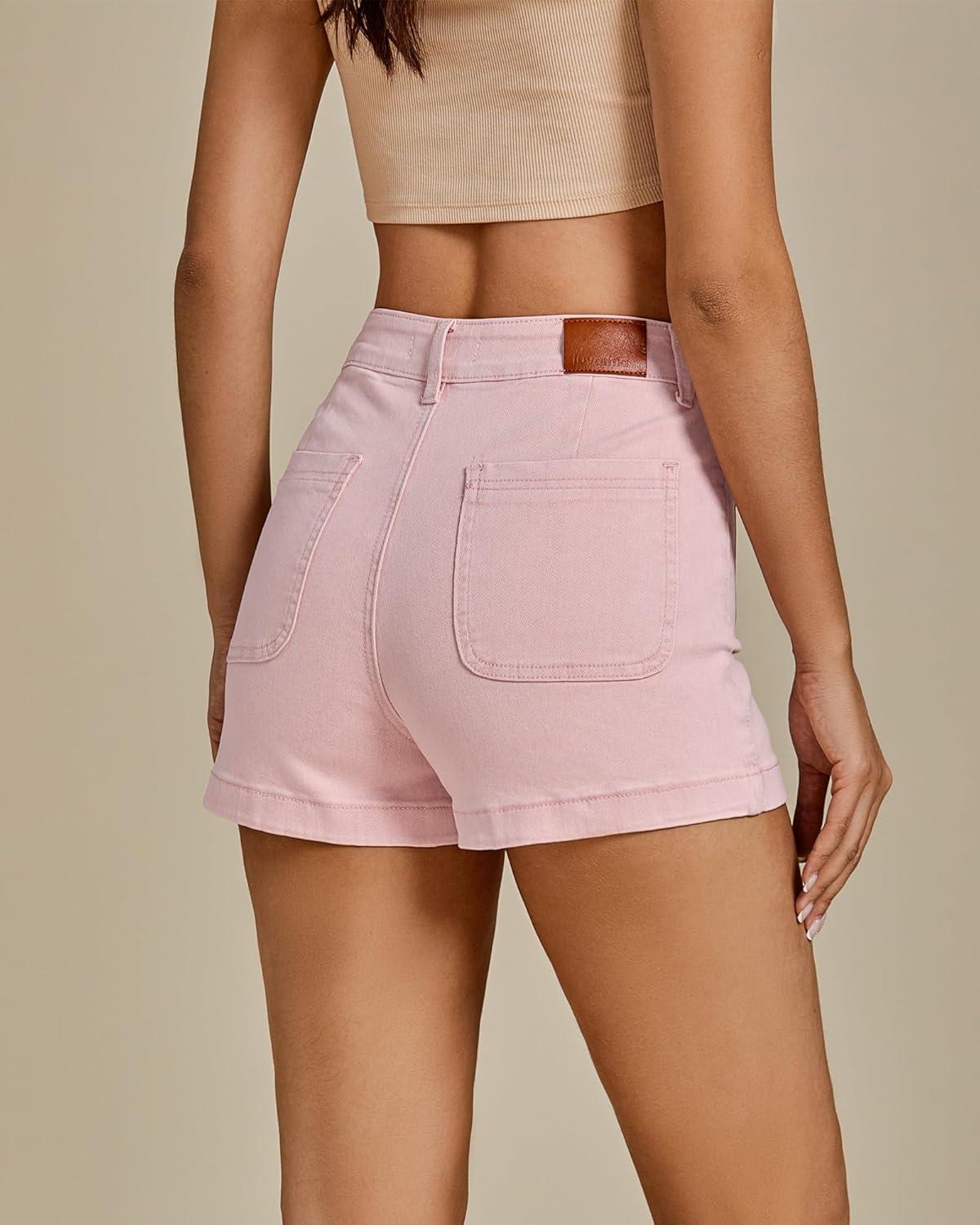 luvamia Jean Shorts for Women High Waisted Trendy Flat Pockets Cutoff Stretchy Denim Shorts Casual Summer(Candy Pink)