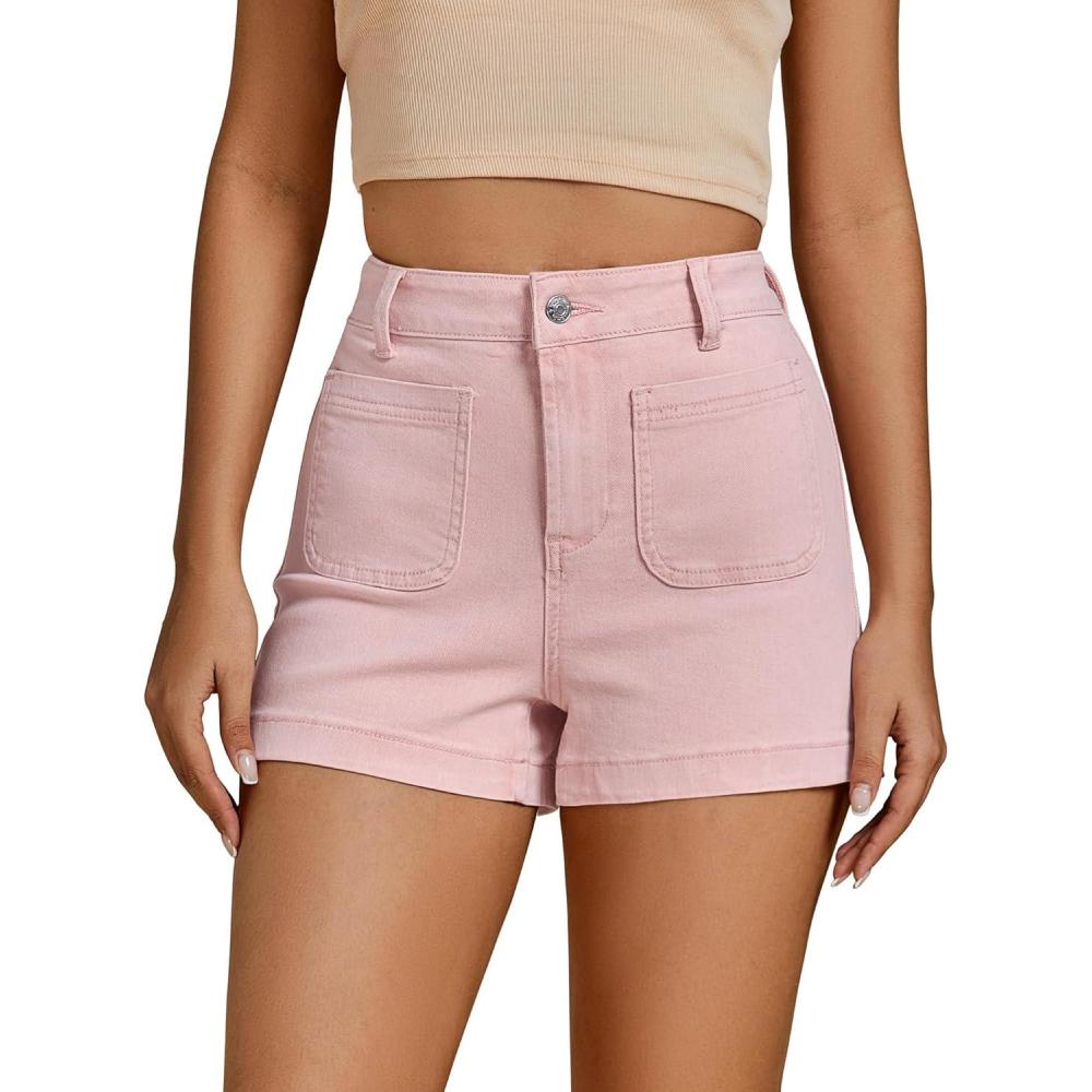 imageluvamia Jean Shorts for Women High Waisted Trendy Flat Pockets Cutoff Stretchy Denim Shorts Casual SummerCandy Pink