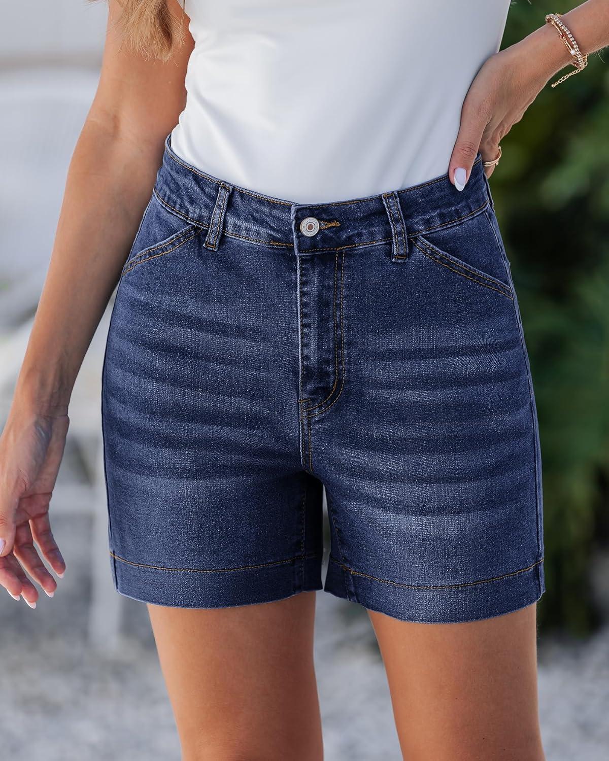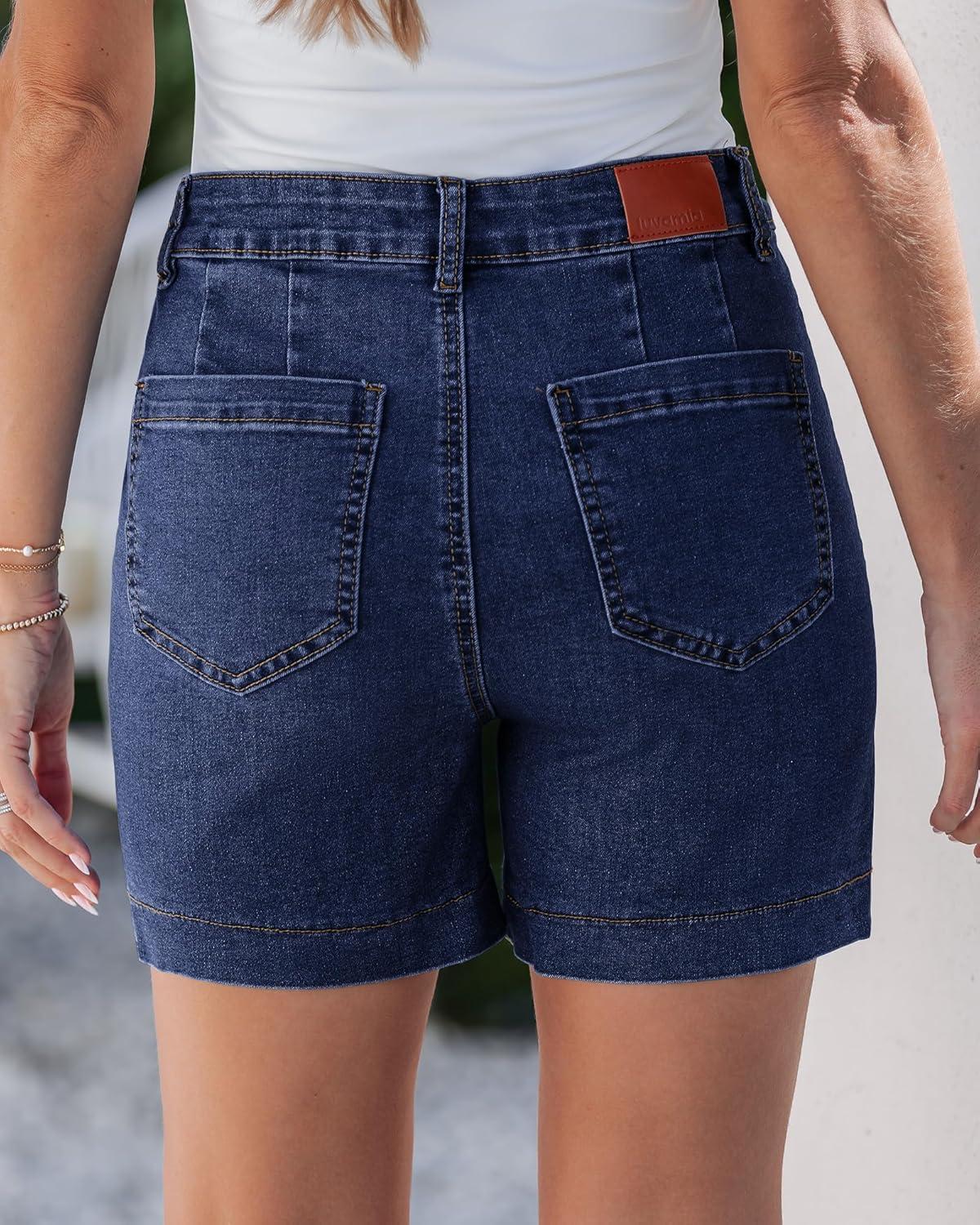 luvamia Jean Shorts for Women High Waisted Trendy Stretchy Denim Shorts 5 Inch Inseam Summer Casual Jorts with Pockets(Darkness Blue)
