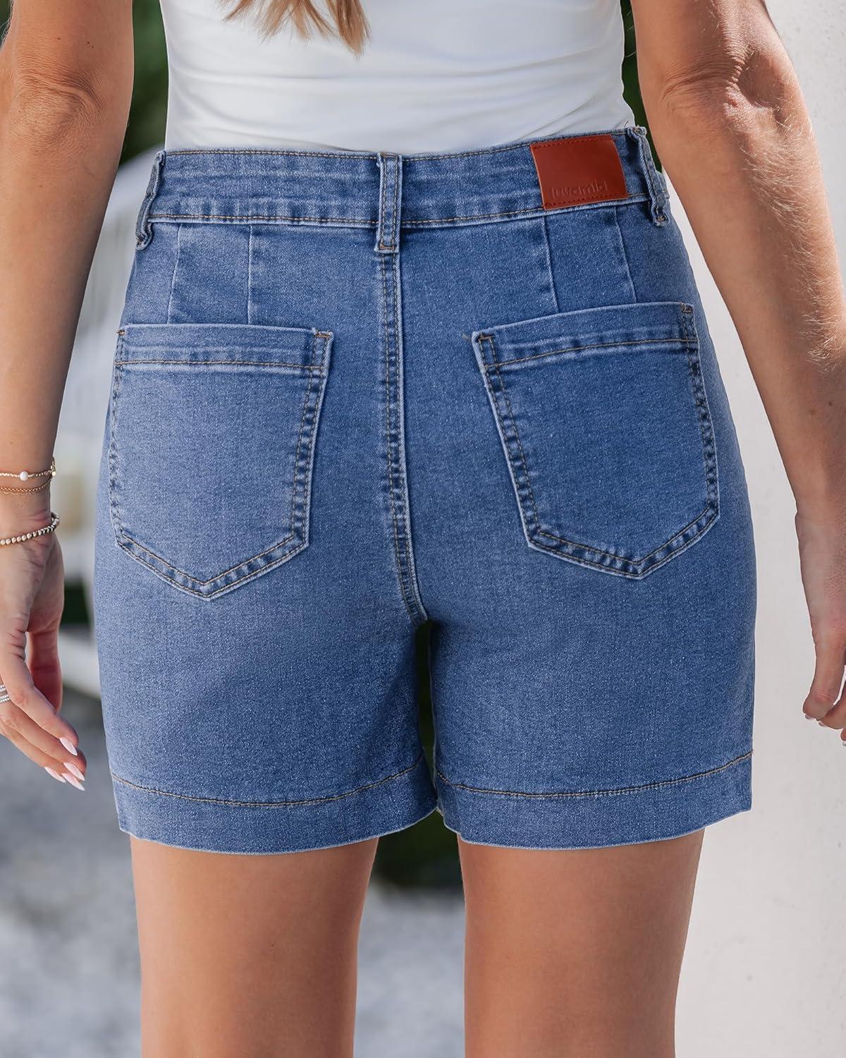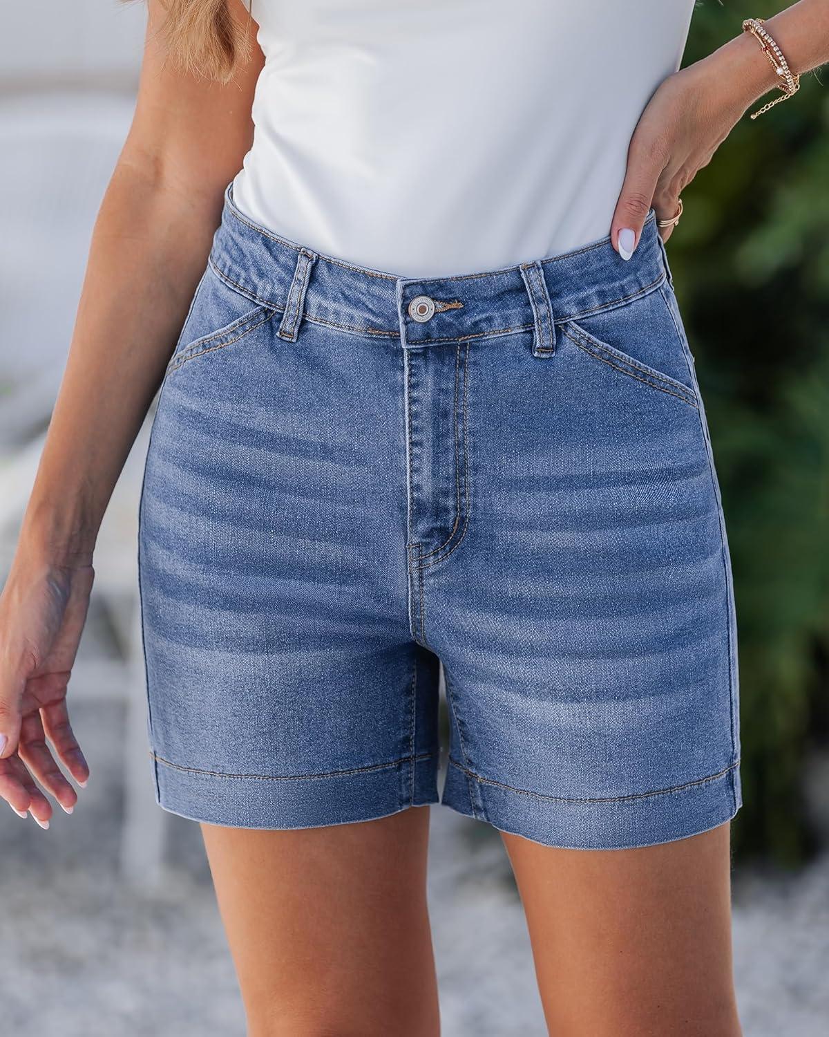 luvamia Jean Shorts for Women High Waisted Trendy Stretchy Denim Shorts 5 Inch Inseam Summer Casual Jorts with Pockets(Medium Blue)