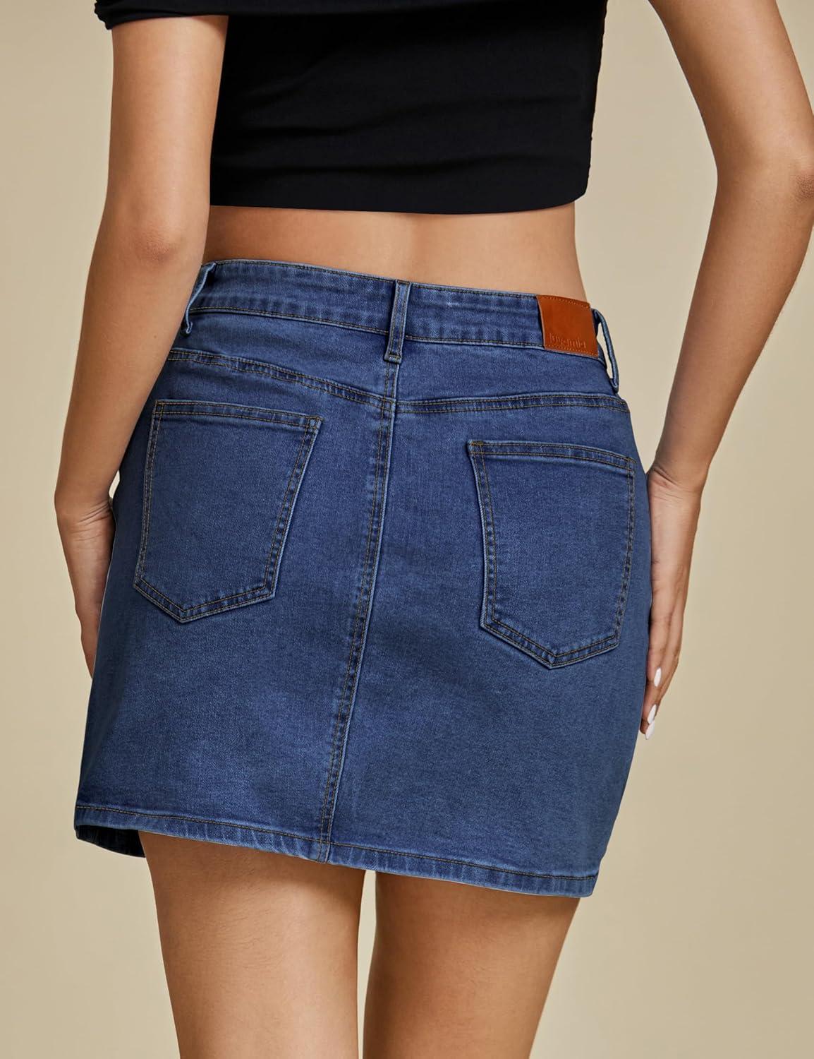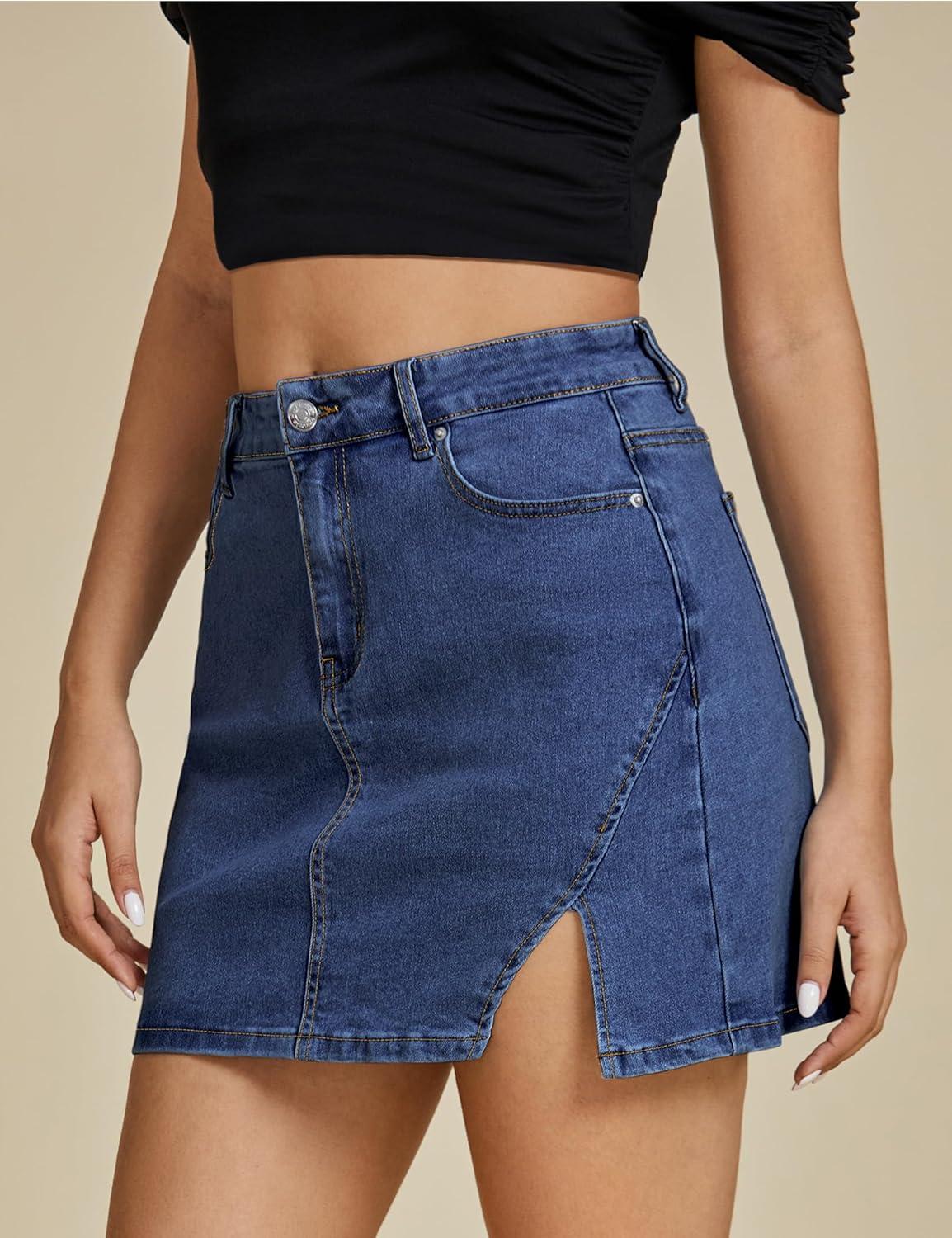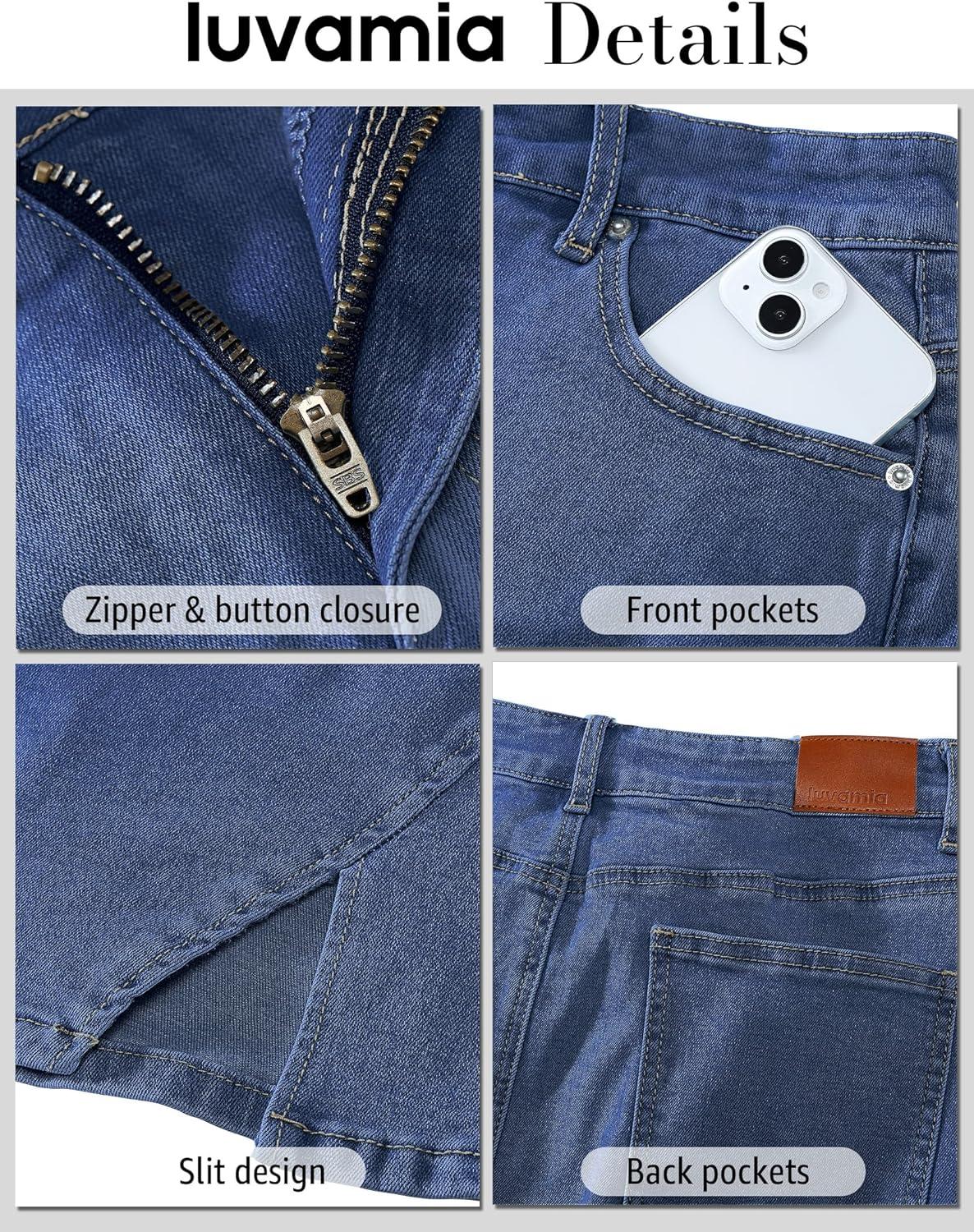 Don’t miss out on our limited-time offer: get a free {accessory} with your purchase of luvamia Jean Skirts for Women Denim High Waisted Stretchy Denim Skirt with Slit Trendy Casual Slim Fit Short Skirts(Classic Blue).