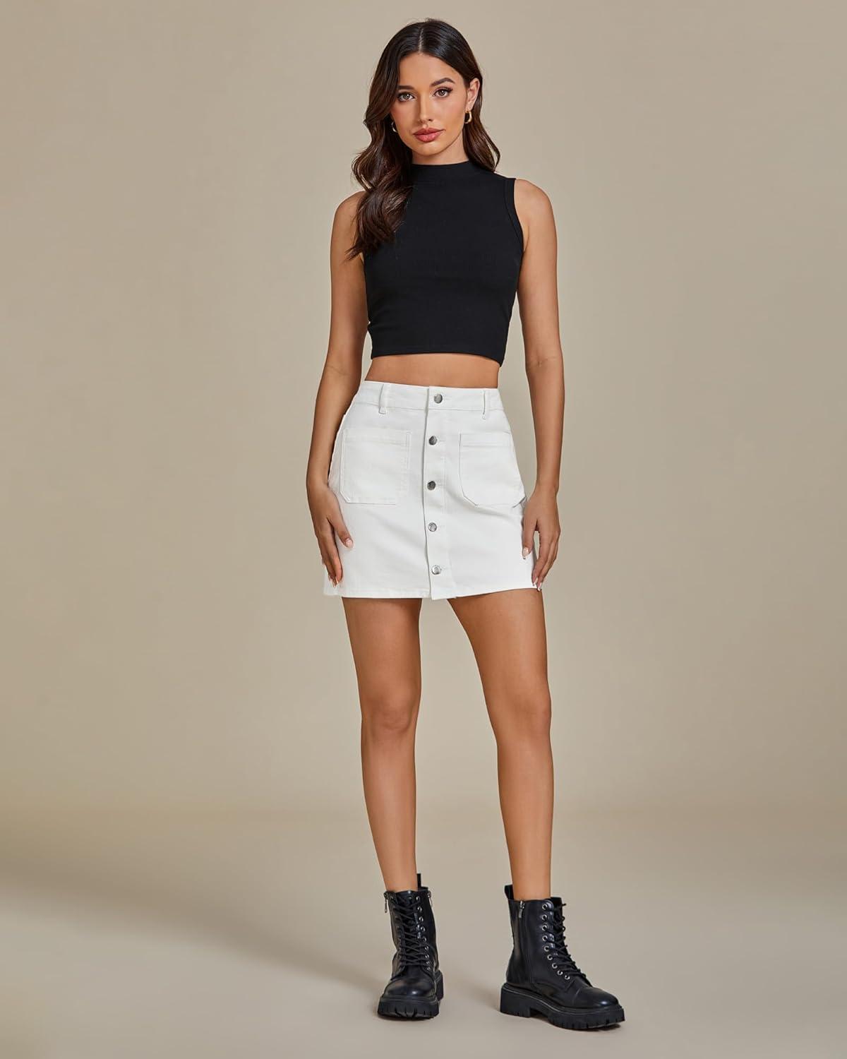 Be the first to review “luvamia Jean Skirts for Women Denim High Waisted Trendy Stretchy Mini Button Front Short Pencil Skirt with Patch Pockets(Cream White)”