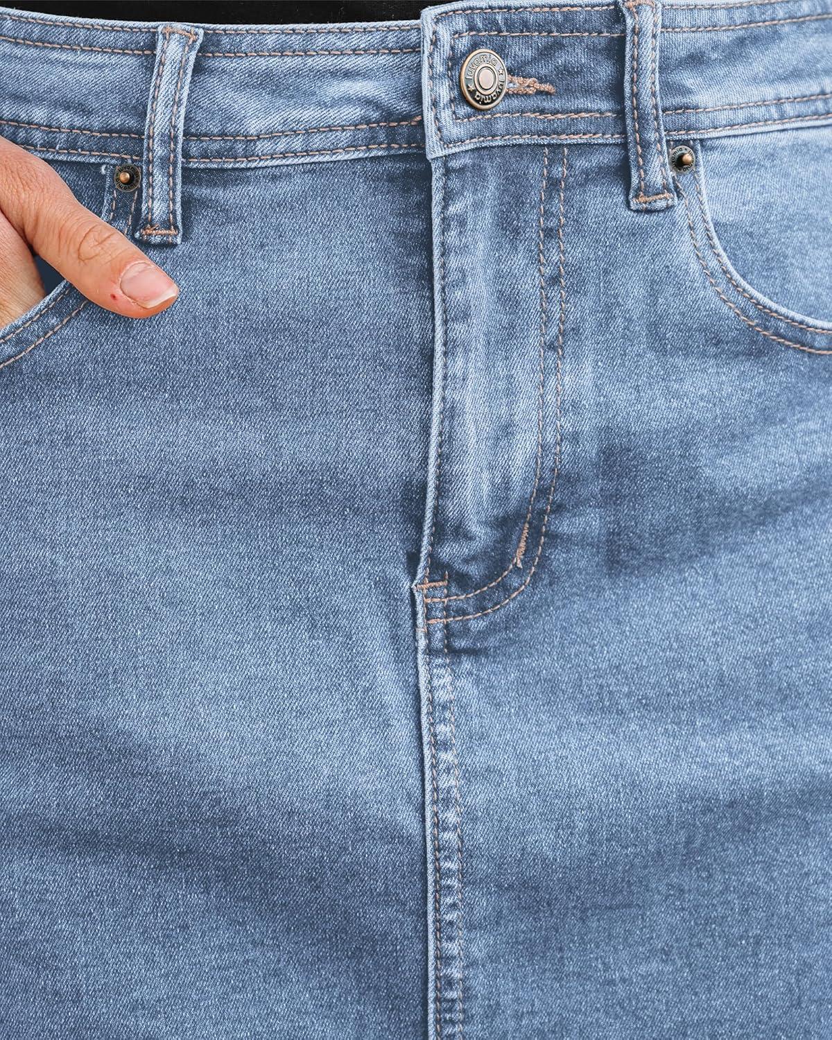 luvamia Jean Skirts for Women Denim Trendy Summer Casual Stretchy High Waisted Midi Below Knee Pencil Skirt with Slit(Classic Blue)