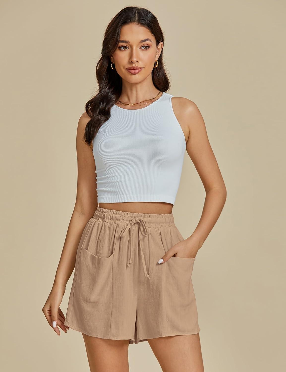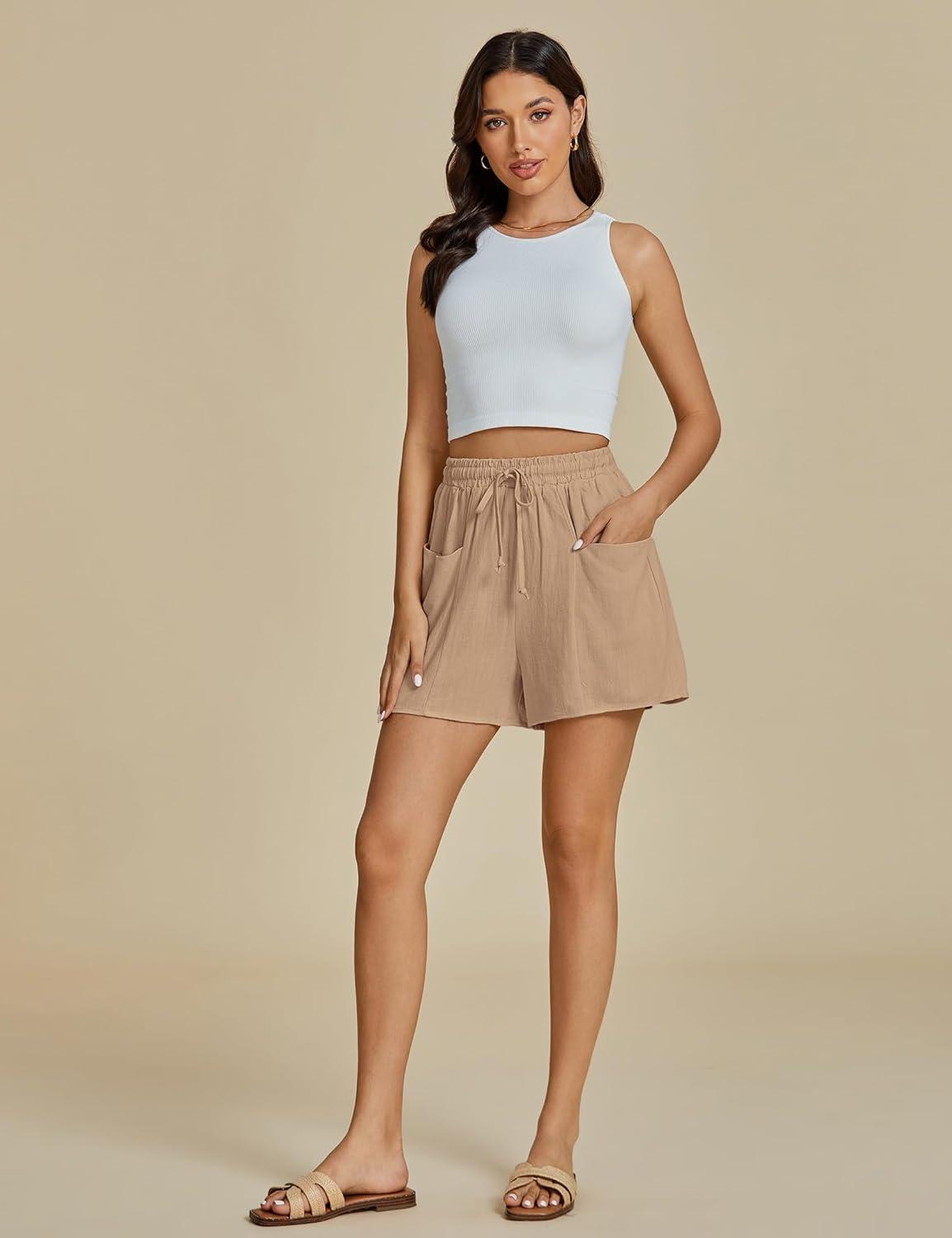 Save up to 40% on luvamia Linen Shorts for Women Trendy High Waisted Casual Summer Pull On Drawstring Beach Loost Fit Shorts with Pockets(Almond) styles during our end-of-season sale.