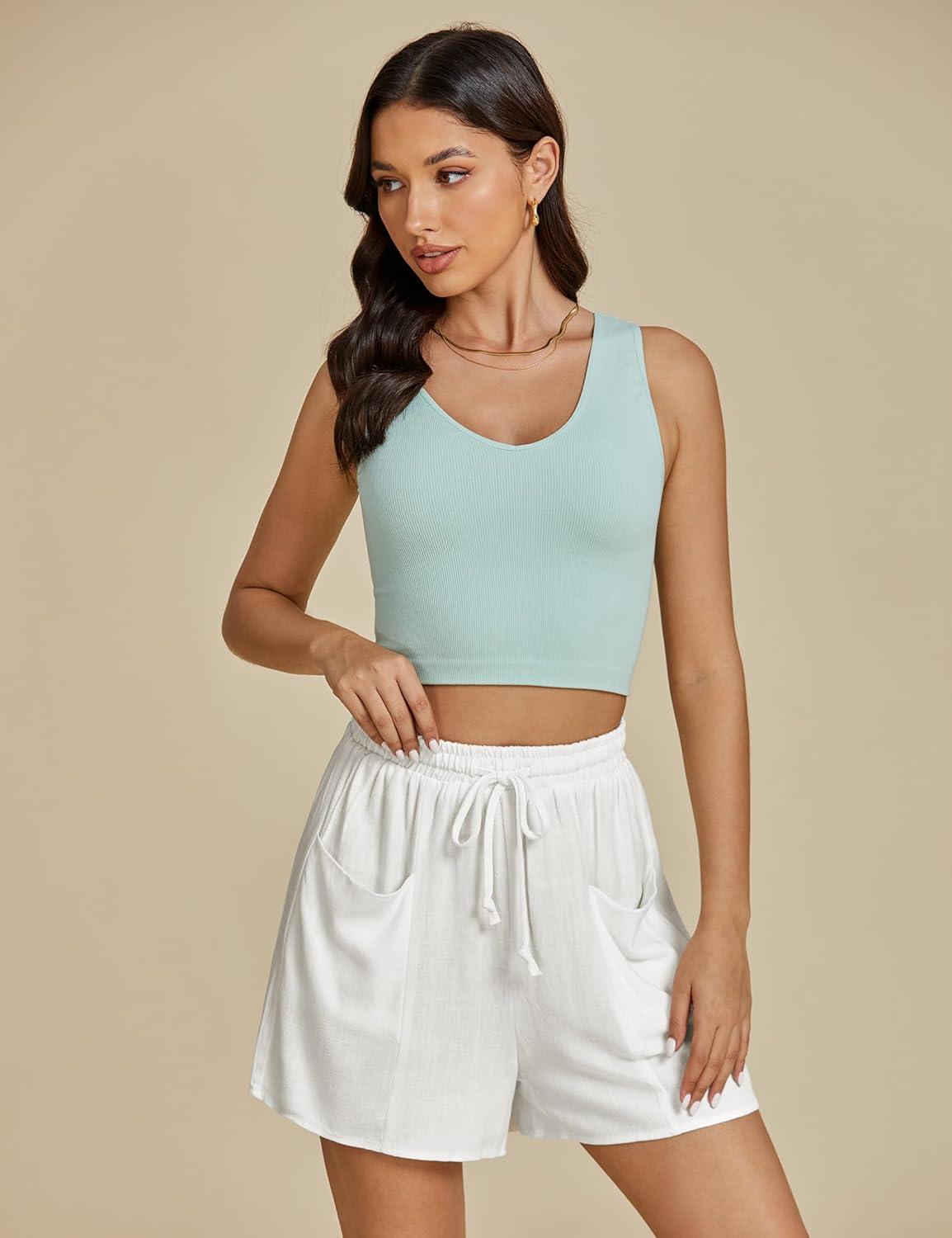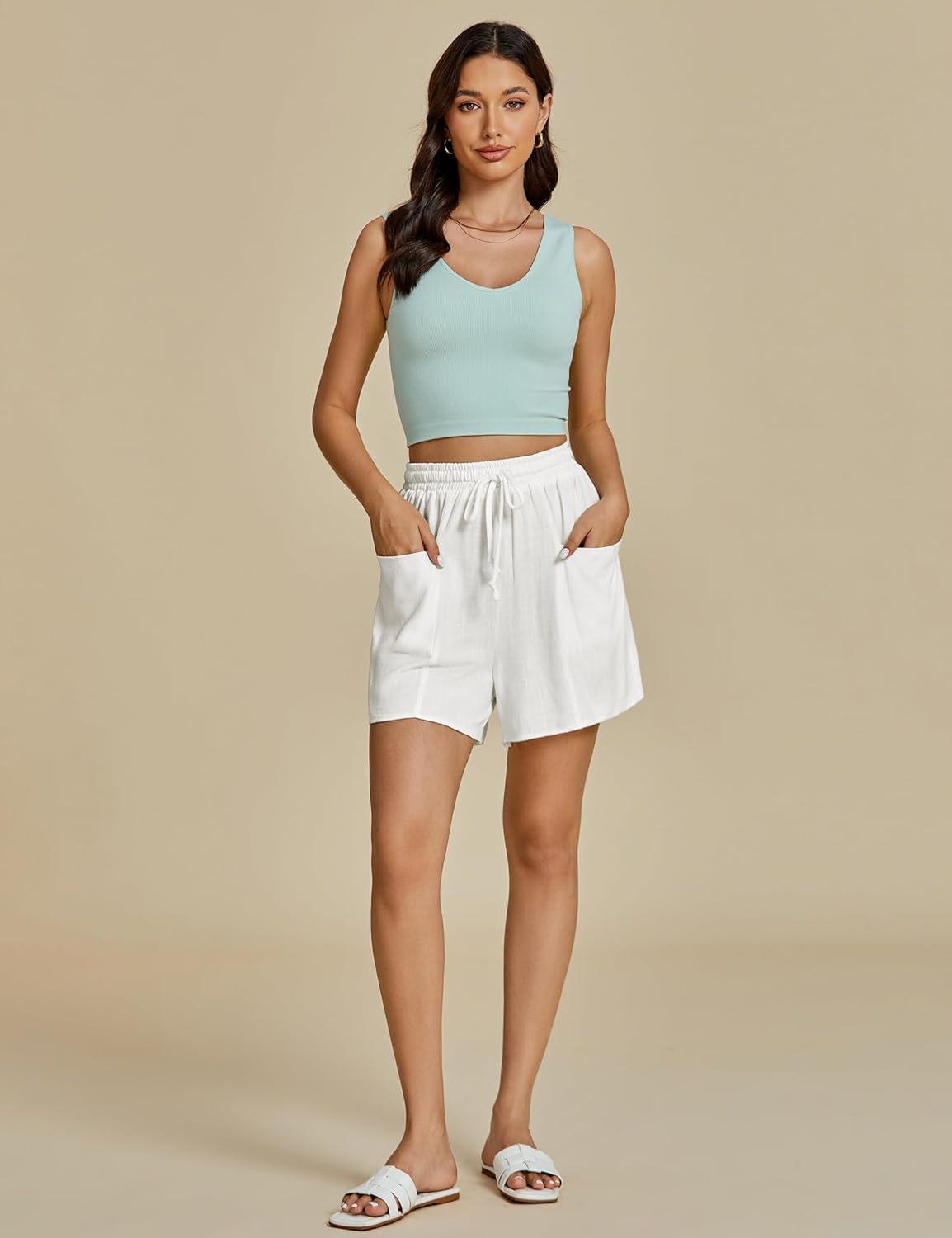 luvamia Linen Shorts for Women Trendy High Waisted Casual Summer Pull On Drawstring Beach Loost Fit Shorts with Pockets(Cream White)