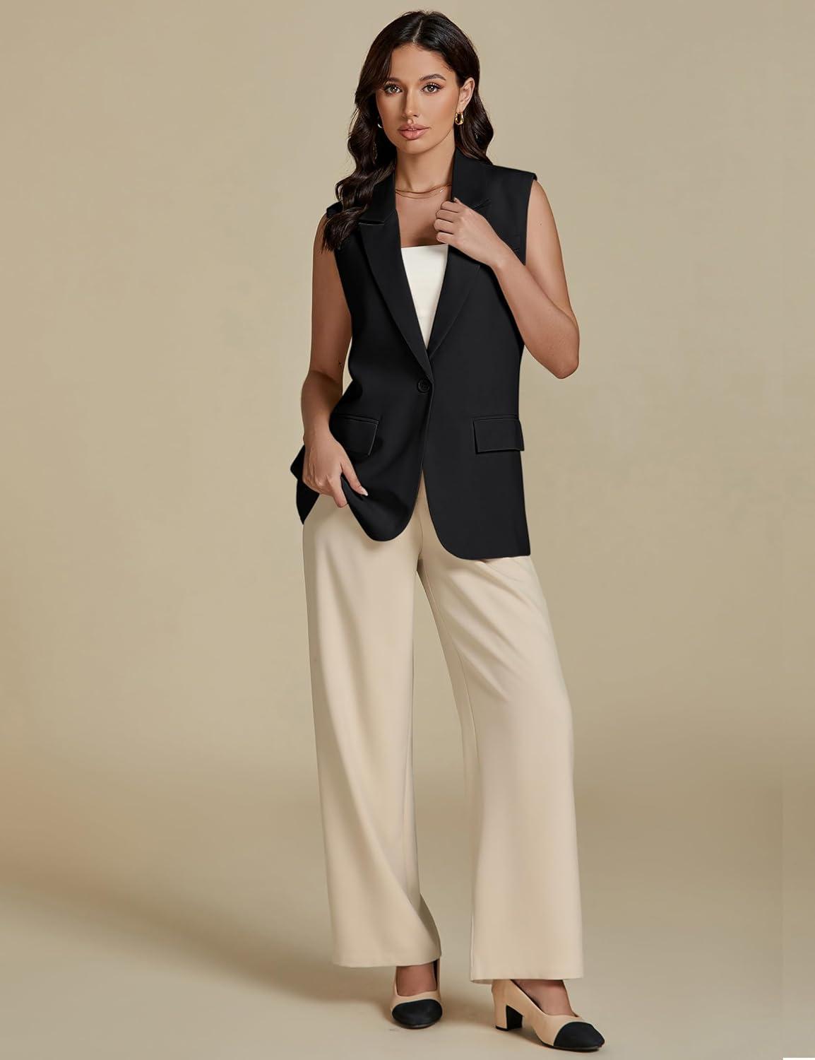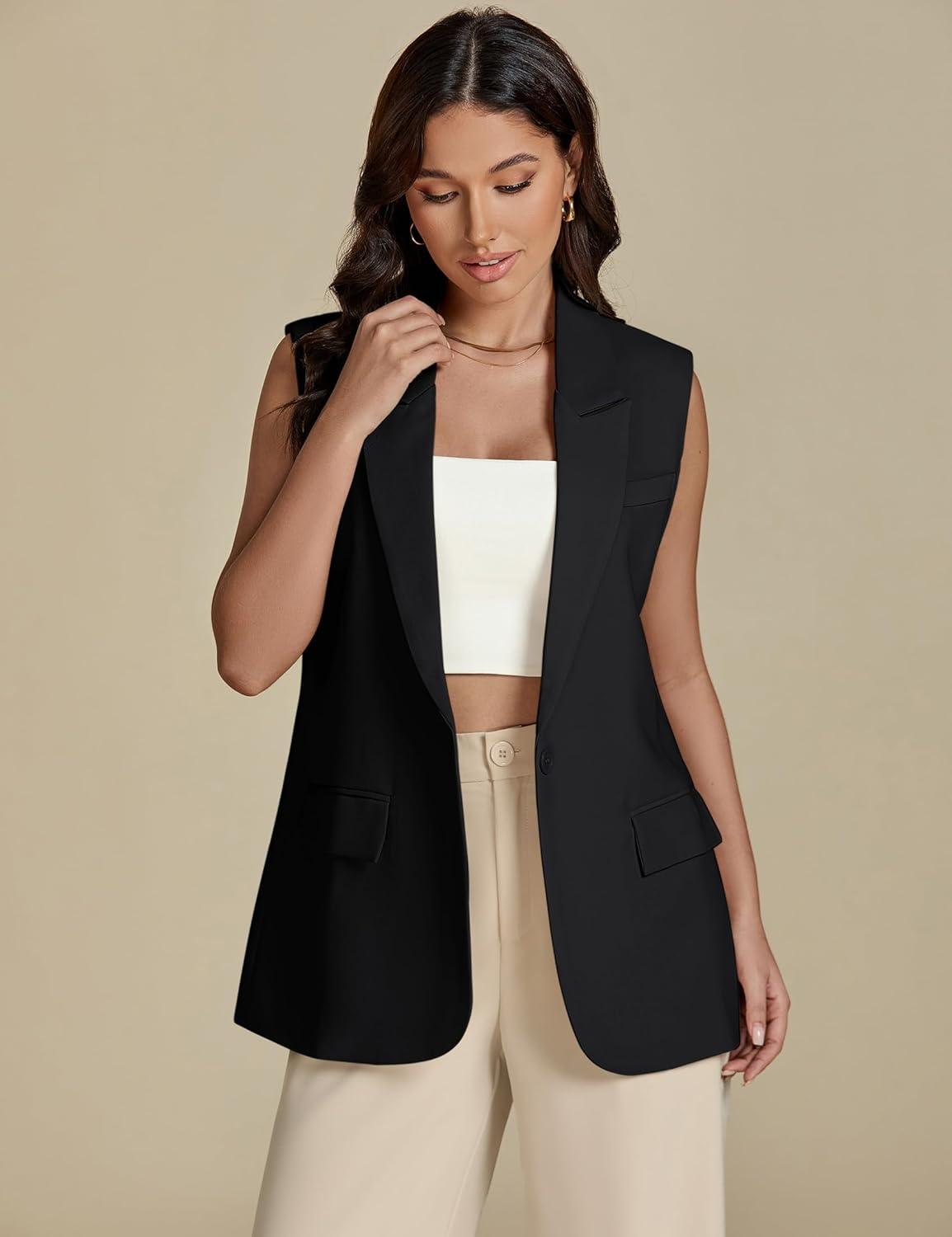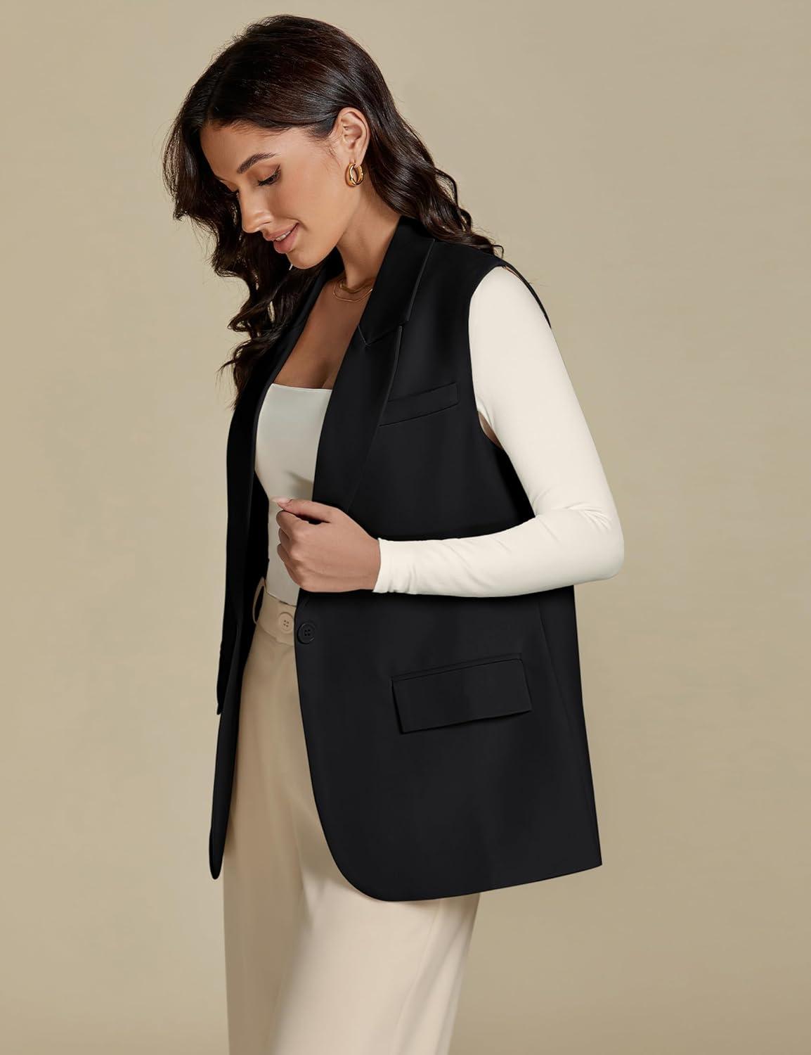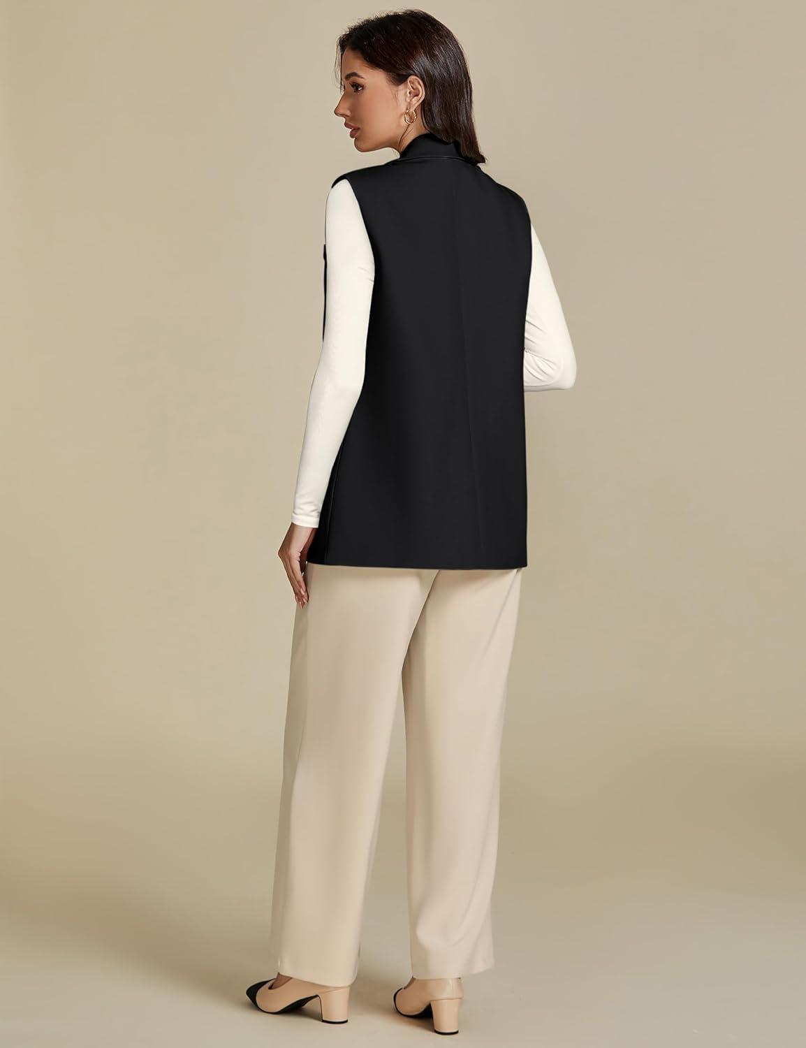 luvamia Long Vest for Women 2025 Spring Business Casual Sleeveless Open Front Blazers Suit Vests Top Pockets Work Office(Black)