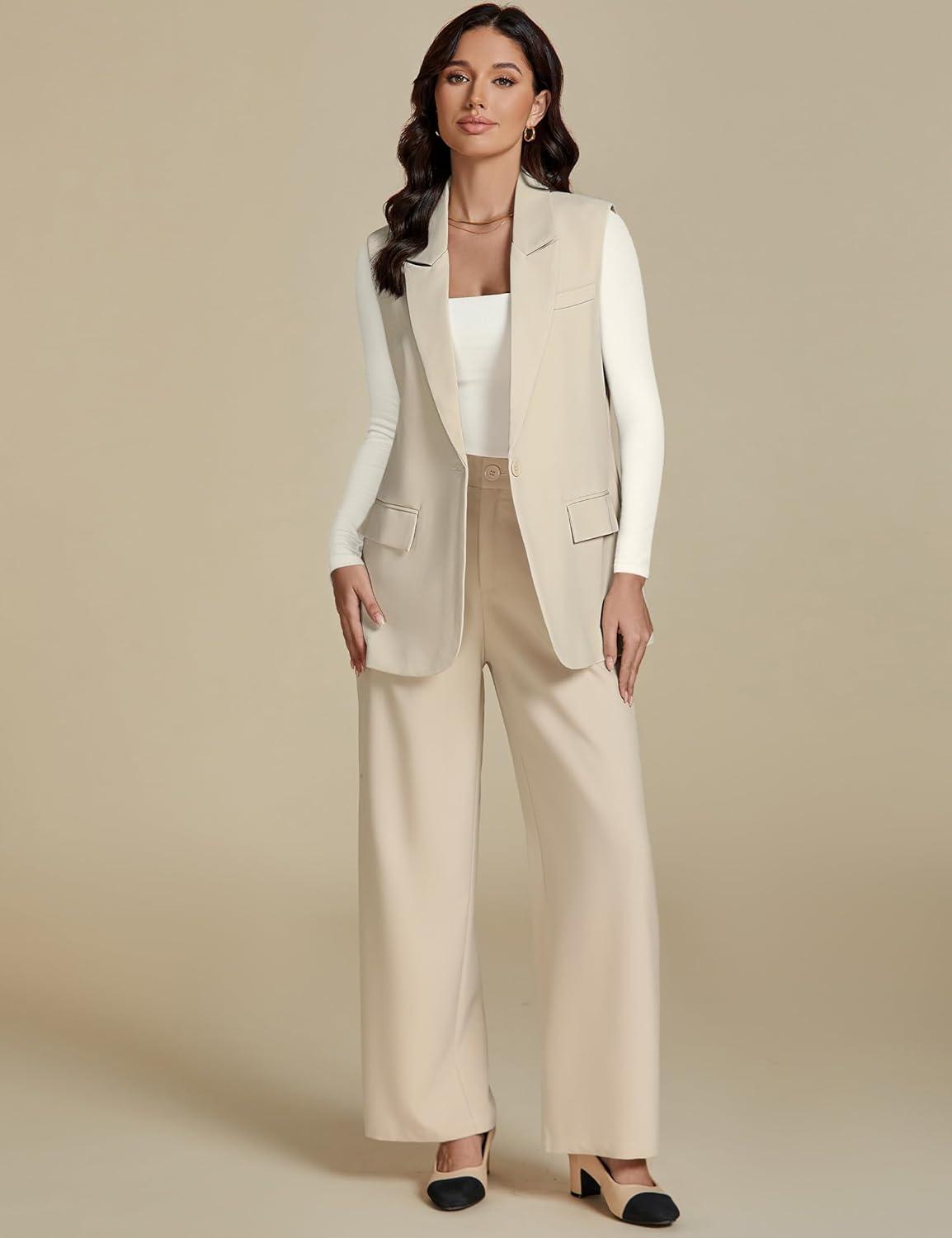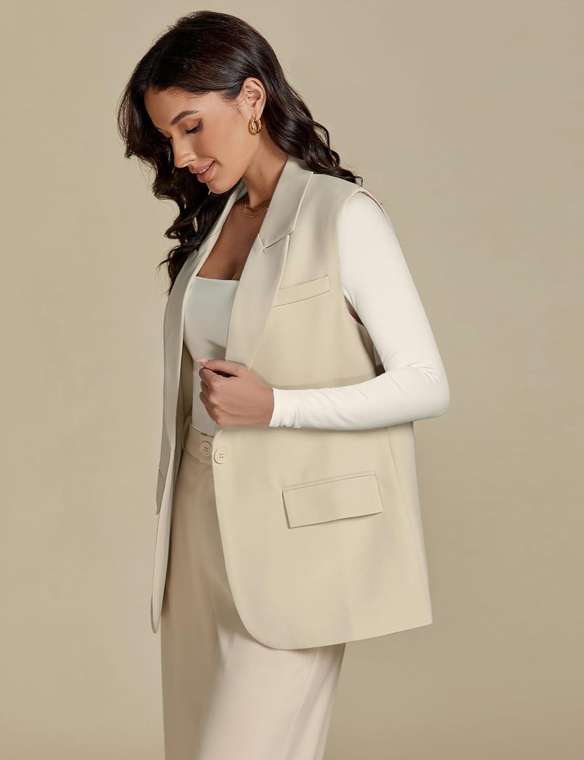Don’t miss out on our limited-time offer: buy luvamia Long Vest for Women 2025 Spring Business Casual Sleeveless Open Front Blazers Suit Vests Top Pockets Work Office(Light Beige), get a free {accessory}!