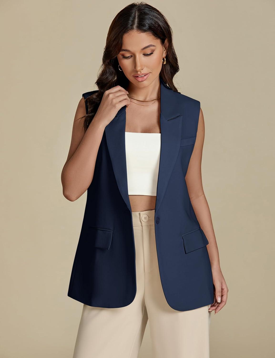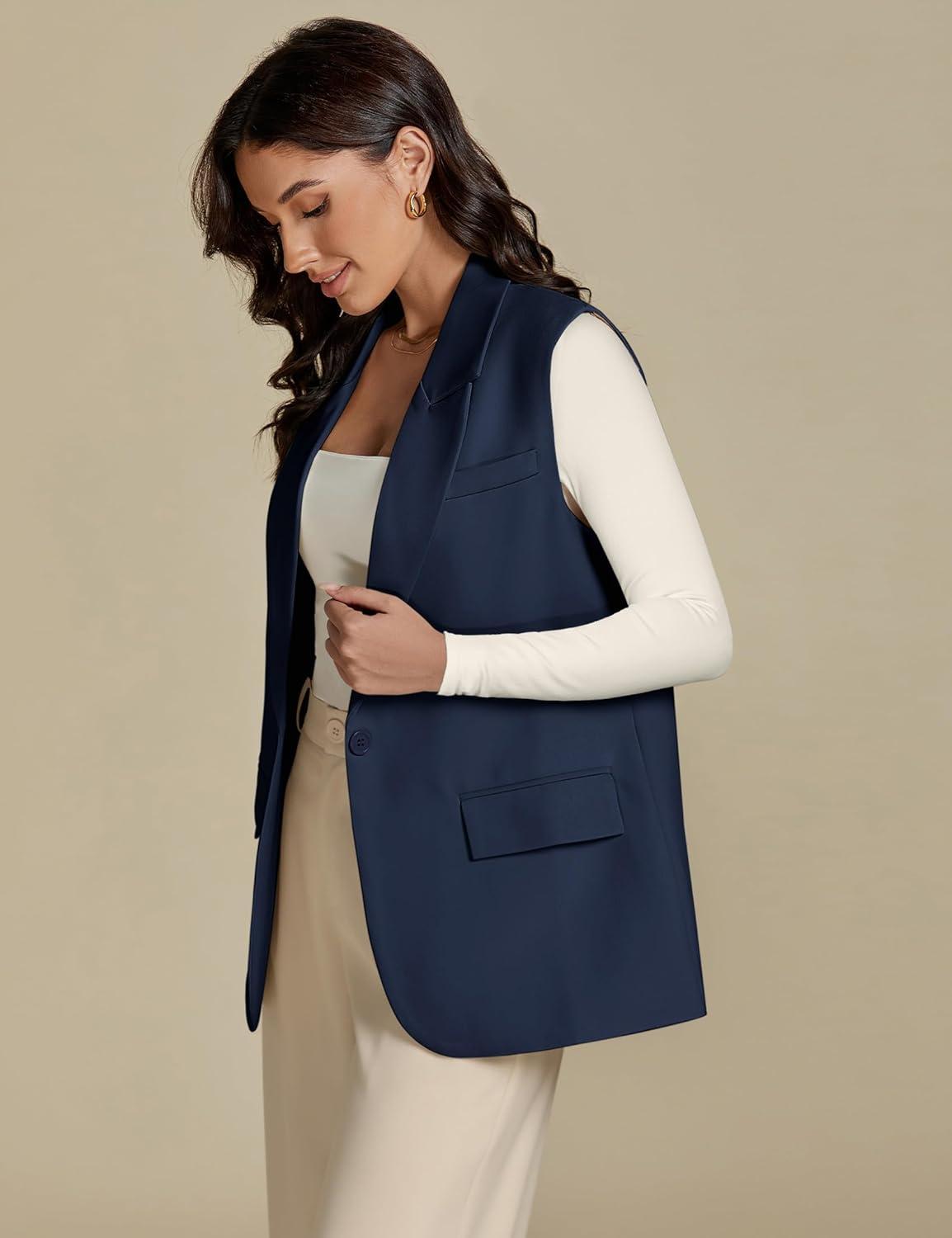 Save up to 40% on luvamia Long Vest for Women 2025 Spring Business Casual Sleeveless Open Front Blazers Suit Vests Top Pockets Work Office(Navy Blue) styles during our end-of-season sale.