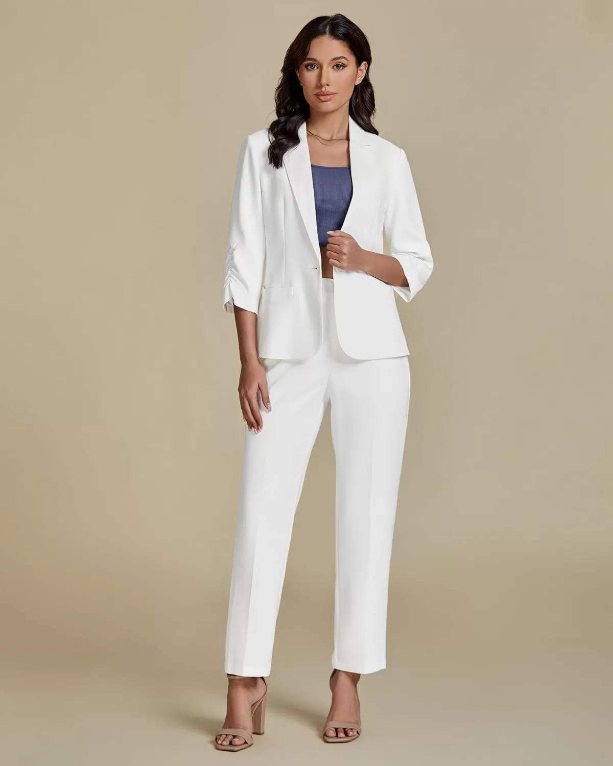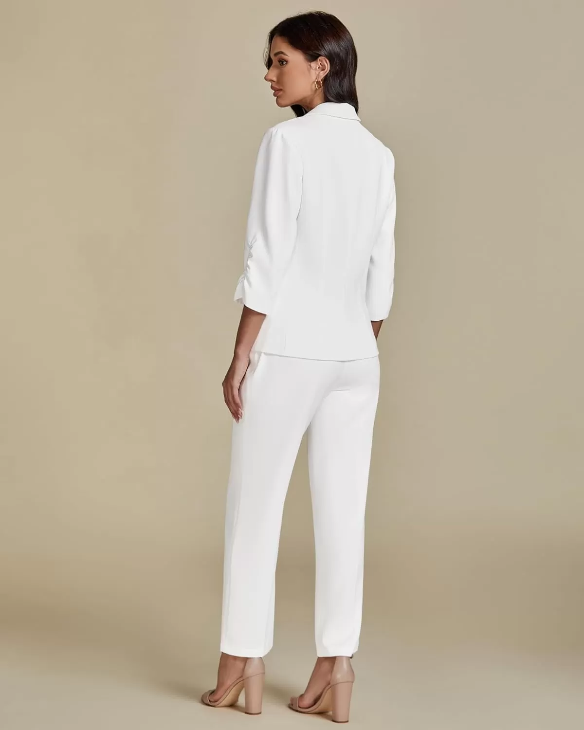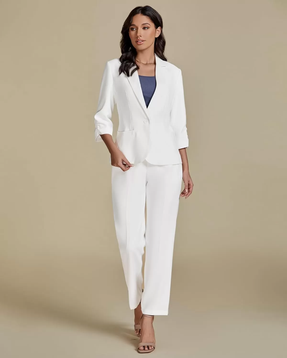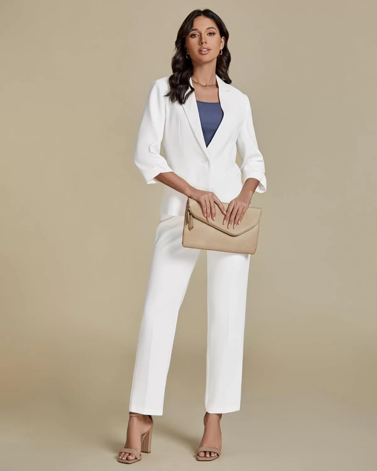 luvamia Pant Suits for Women Dressy 2 Piece Business Casual Outfits 3/4 Sleeve Blazer Straight Leg Pant Sets Office Work(Cream White)