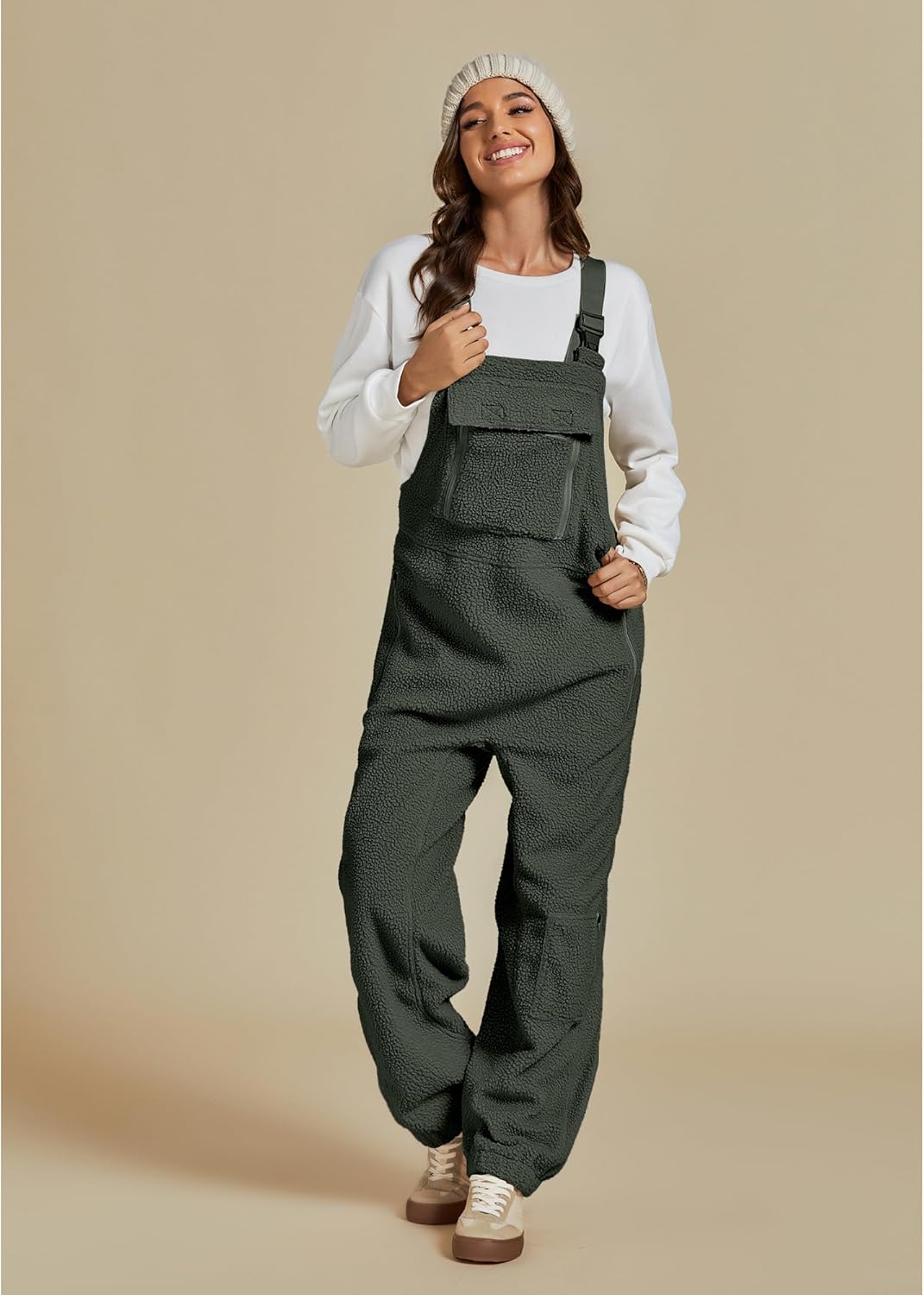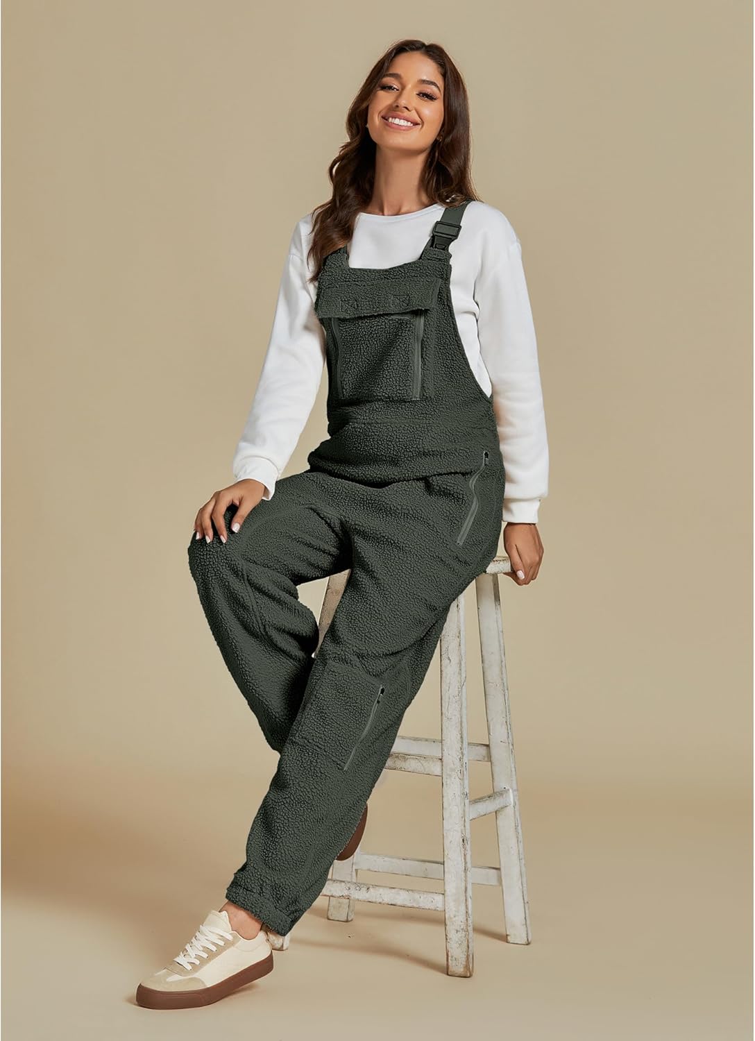Get the luvamia Sherpa Overalls for Women Baggy Warm Bib Fleece Fuzzy Winter Jumpsuits Adjustable Strap Overall with Zip Pockets(Army Green) you’ve been eyeing at a discounted price during our seasonal sale event.