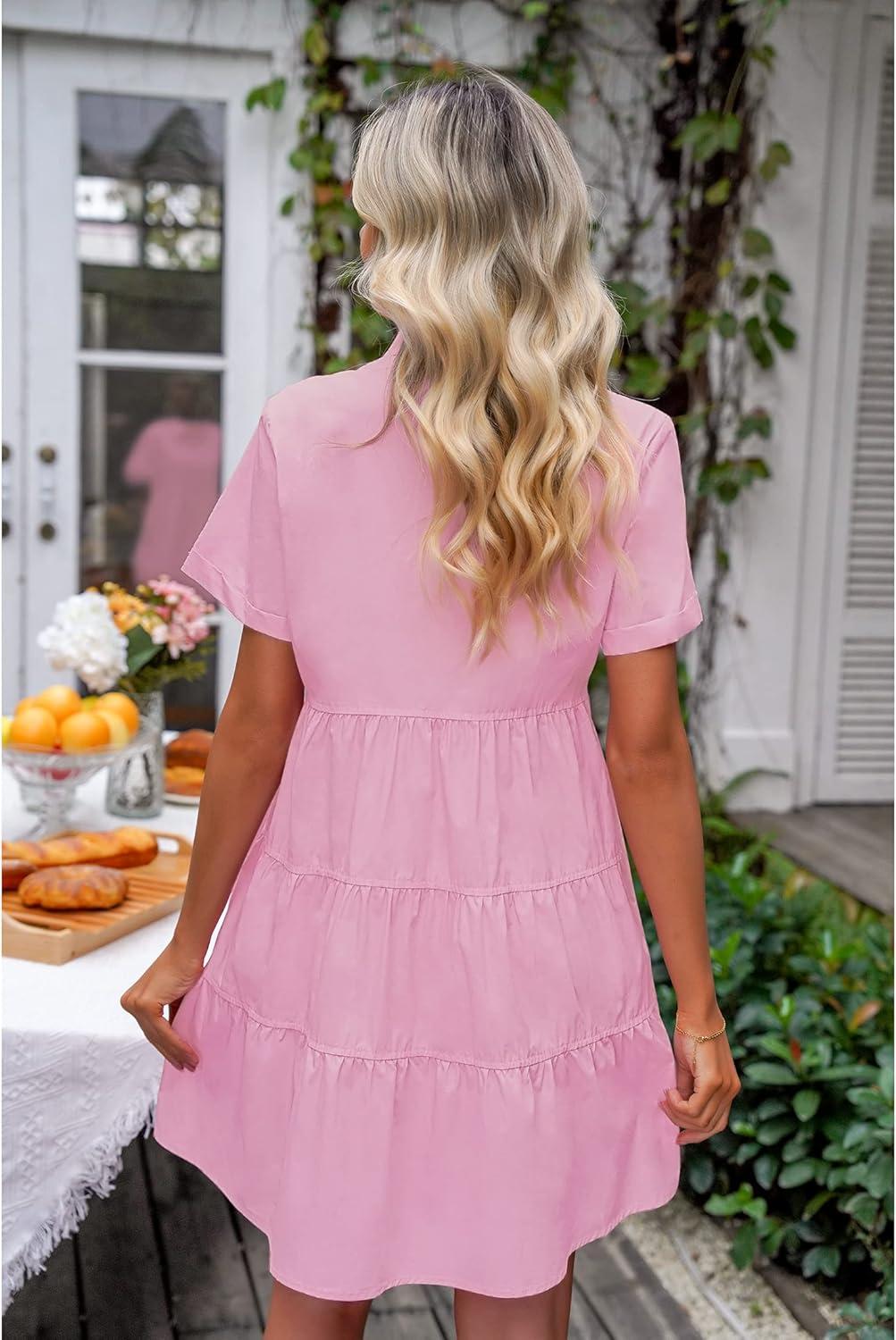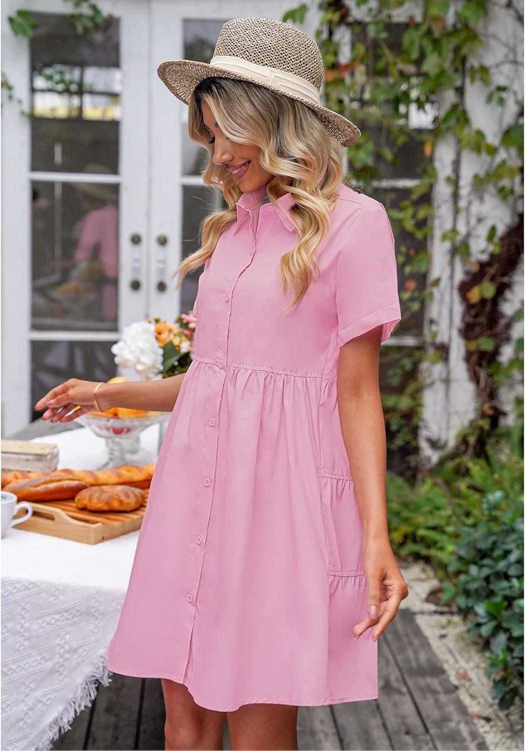 Get up to 60% off on luvamia Shirt Dresses for Women Button Down Babydoll Collared Swing A Line Short Tunic Dress(Candy Pink) styles during our winter sale event.
