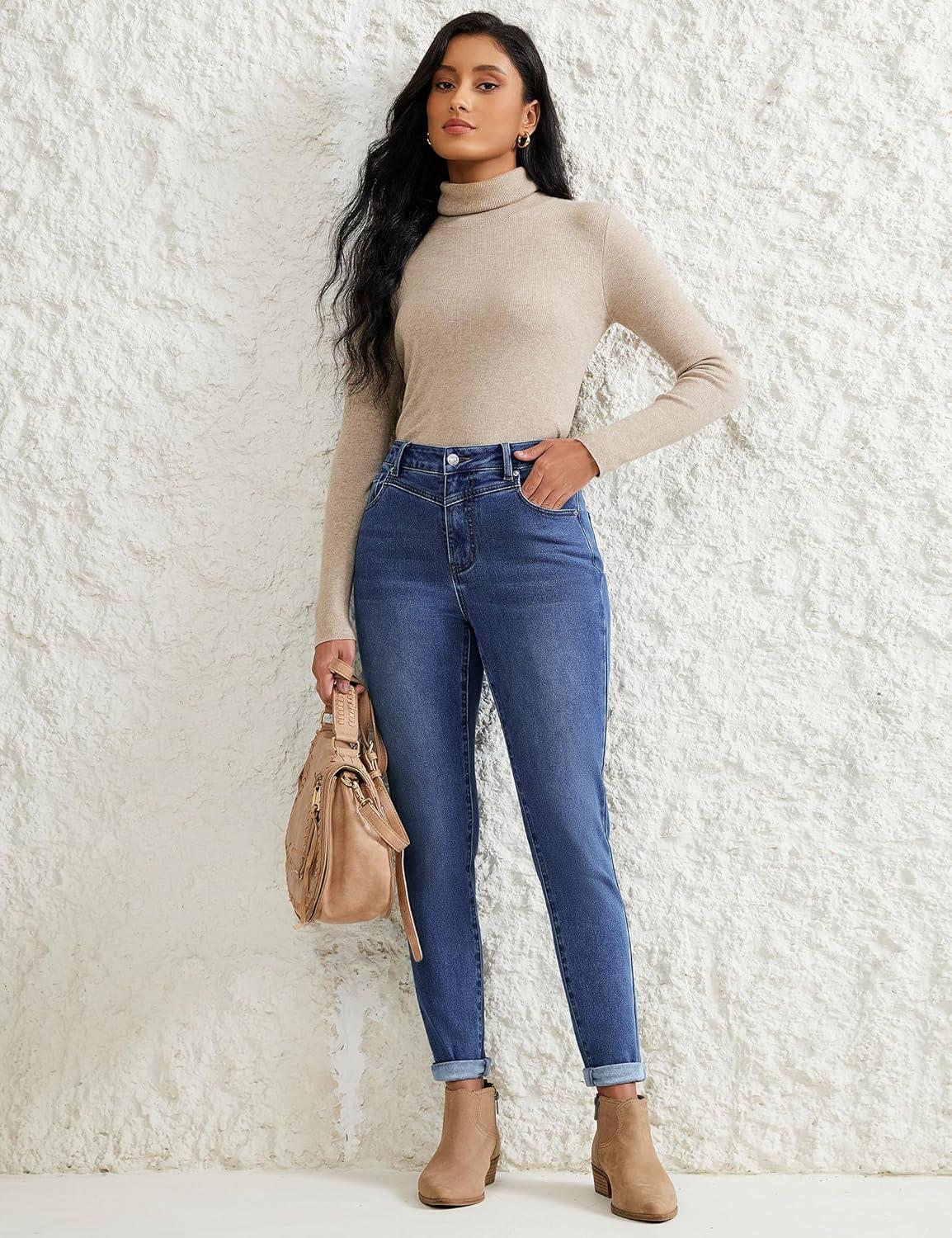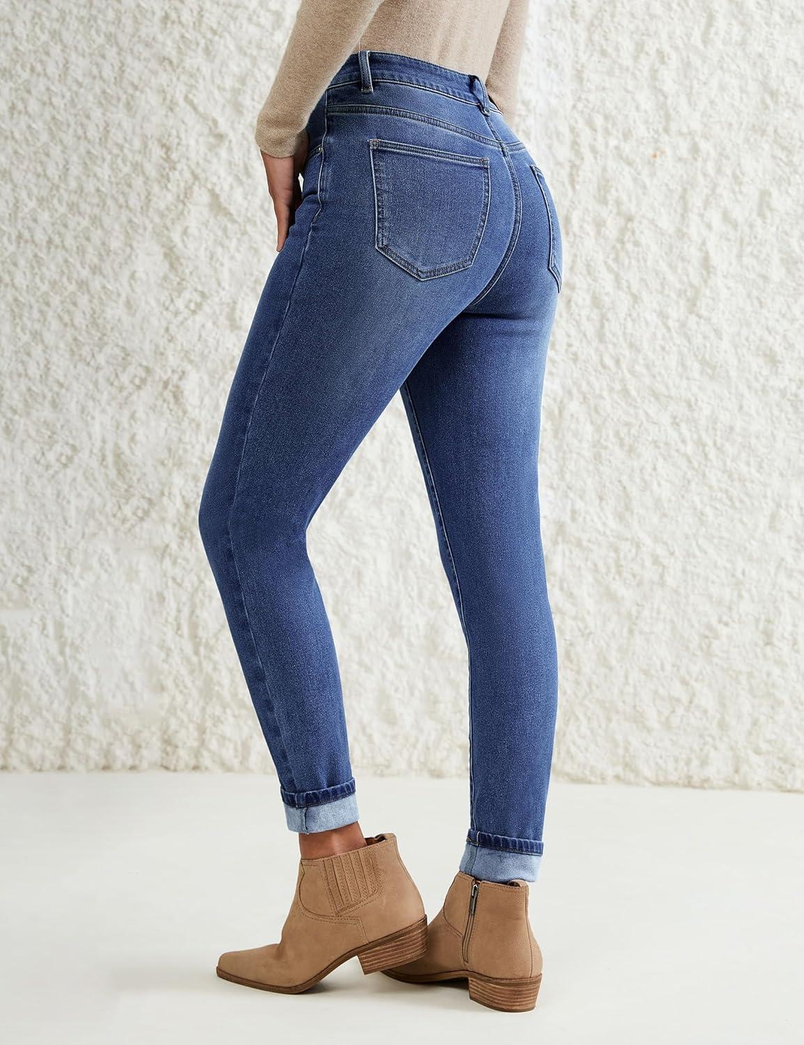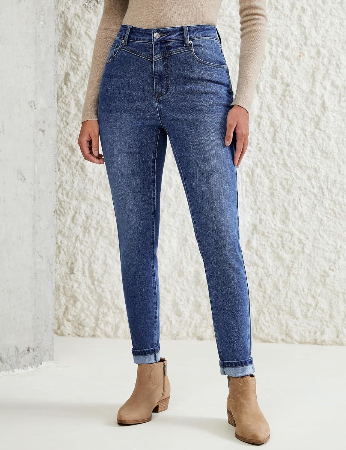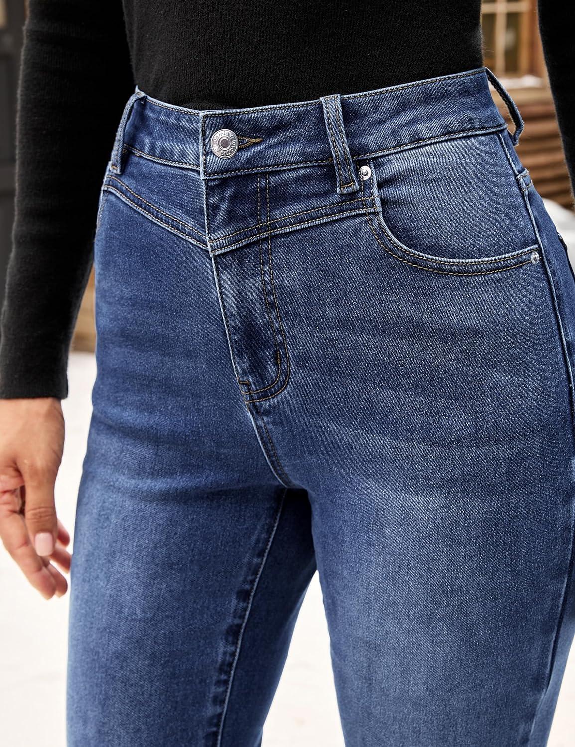 luvamia Skinny Jeans for Women Thin Fleece Lined High Waisted Front Yoke Fall Thermal Stretchy Denim Pants Warm Jeggings(Classic Blue)