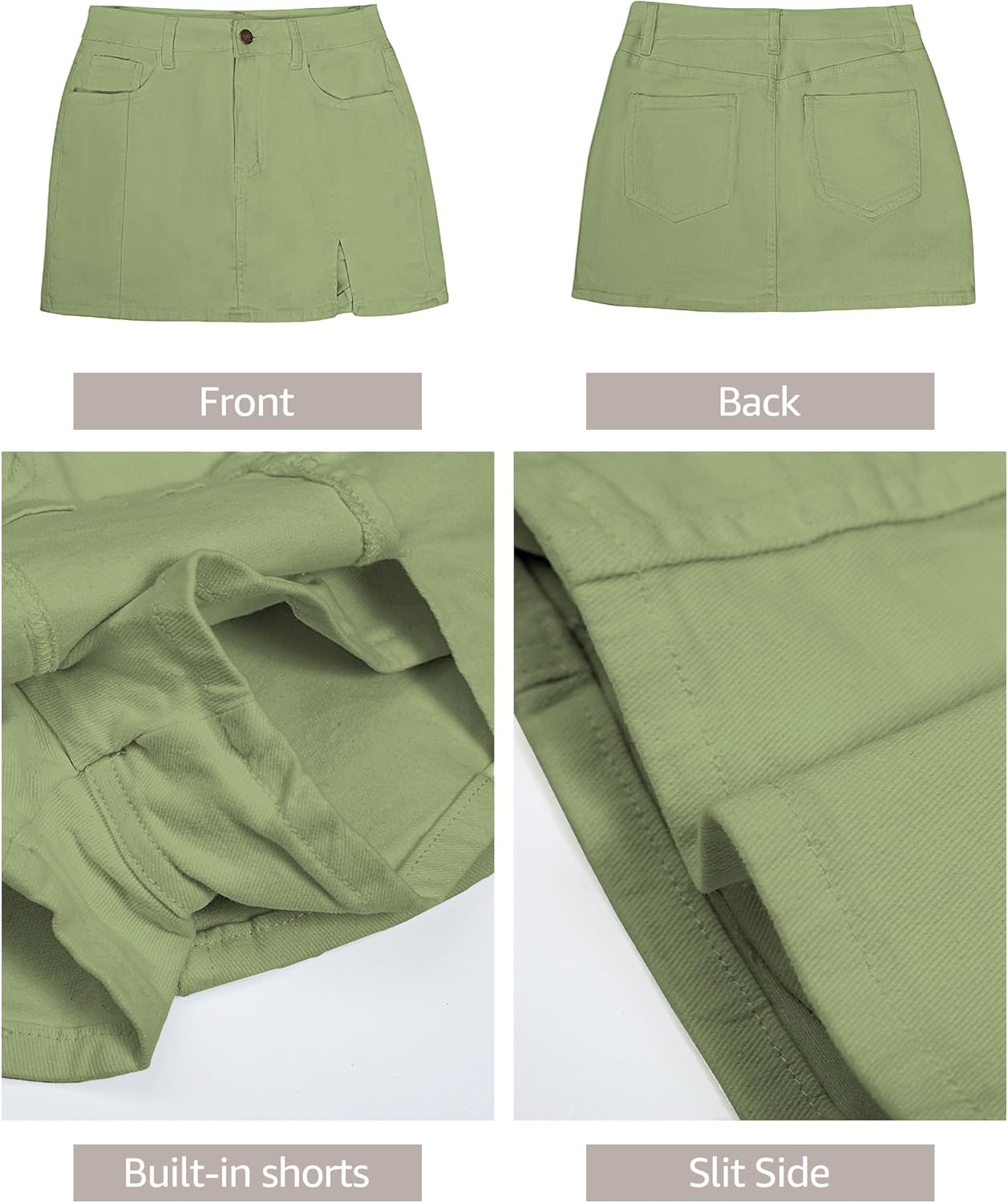 Save big on luvamia Skorts Skirts for Women Denim Mini Skirt Side Slit with High Waisted Jean Shorts Stretchy(Laurel Green) and accessories during our BOGO sale. Buy one, get one 50% off!