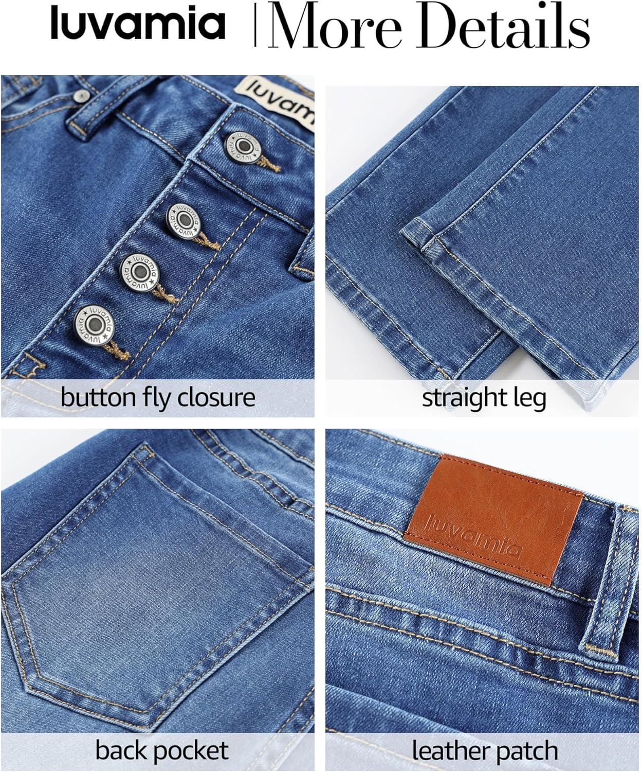 luvamia Straight Leg Jeans for Women High Waisted Trendy Button Fly Trouser Jeans Stretchy Denim Pants with Pockets(Classic Blue)