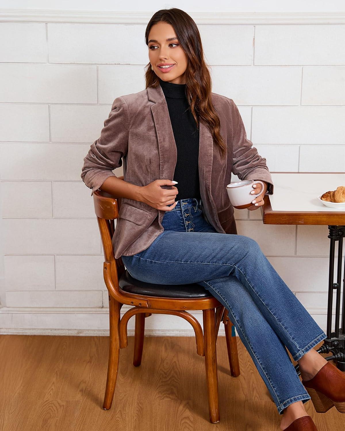 luvamia Jean Jacket Women Trendy Button Down Contrast Corduroy Collar Casual Loose Fit Denim Barn Jackets with Pockets(Roadknight Blue)