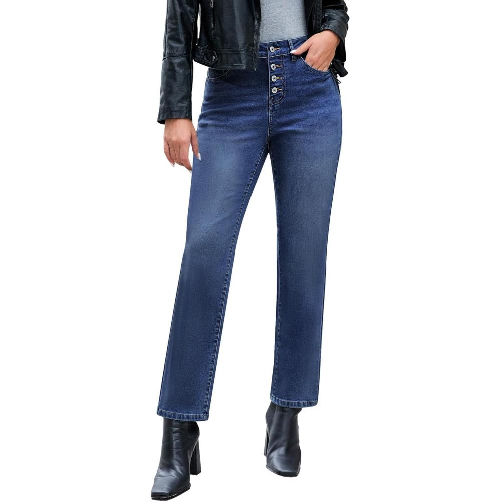 luvamia Straight Leg Jeans for Women High Waisted Trendy Button Fly Trouser Jeans Stretchy Denim Pants with Pockets(Darkness Blue)
