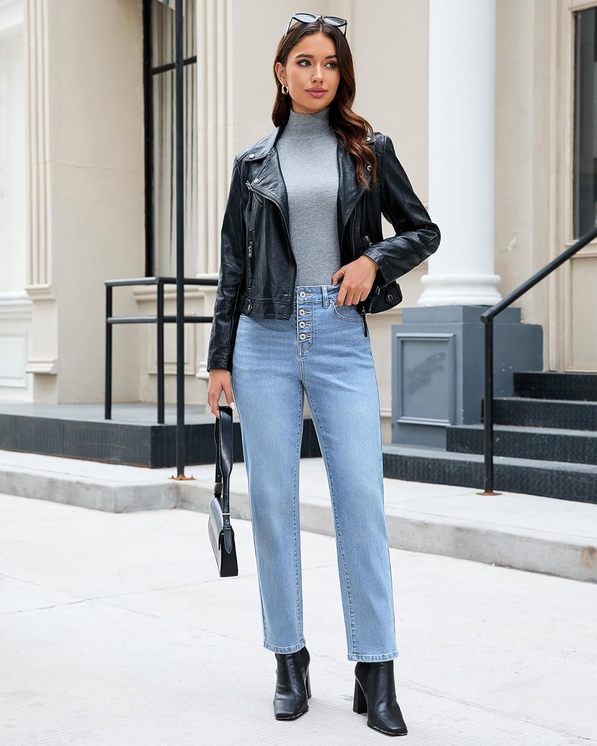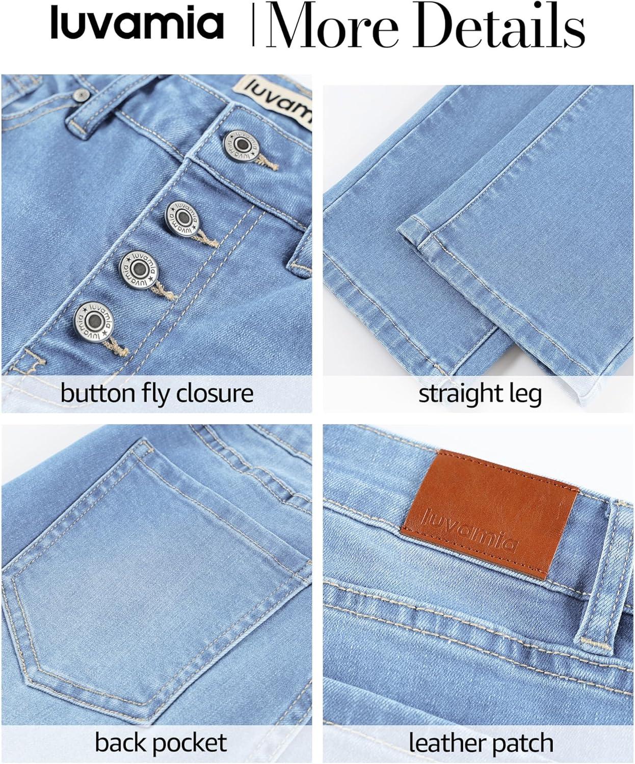luvamia Straight Leg Jeans for Women High Waisted Trendy Button Fly Trouser Jeans Stretchy Denim Pants with Pockets(Lakeside Blue)