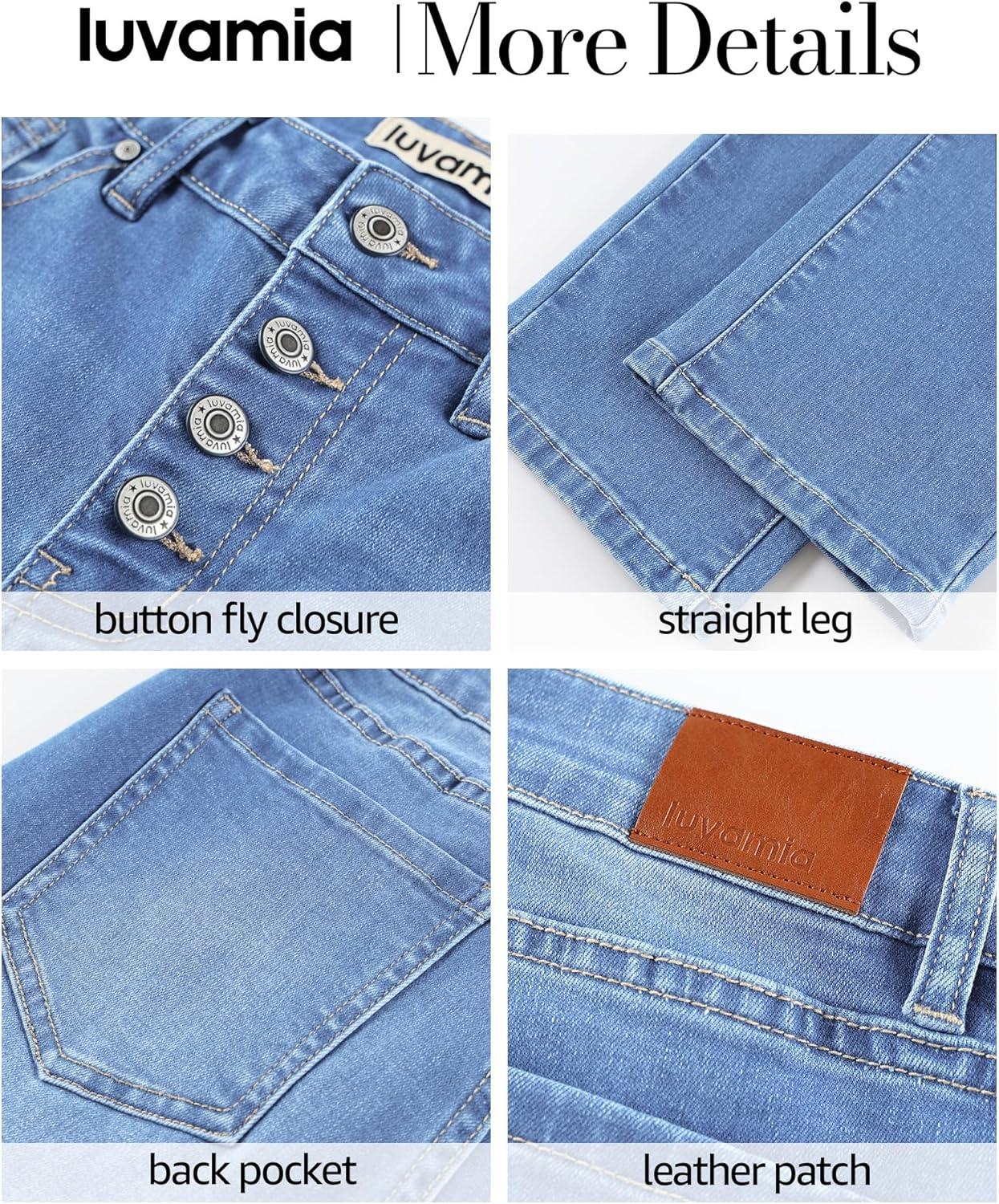luvamia Straight Leg Jeans for Women High Waisted Trendy Button Fly Trouser Jeans Stretchy Denim Pants with Pockets(Lakeside Blue)
