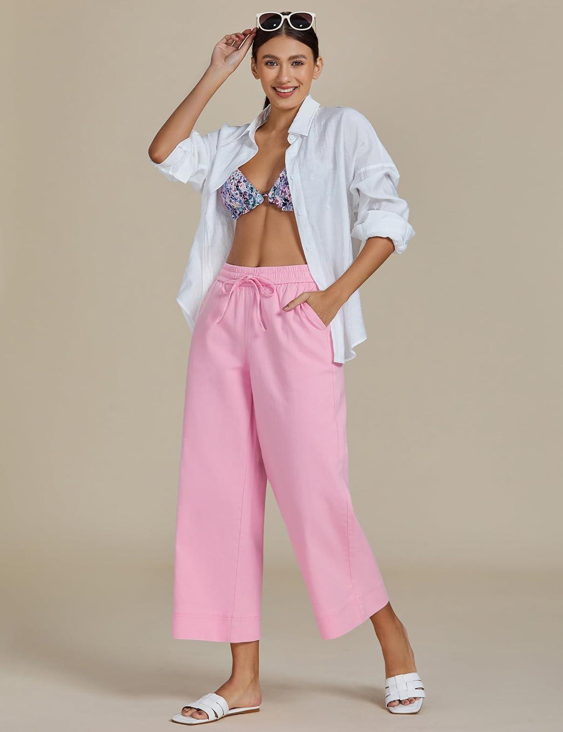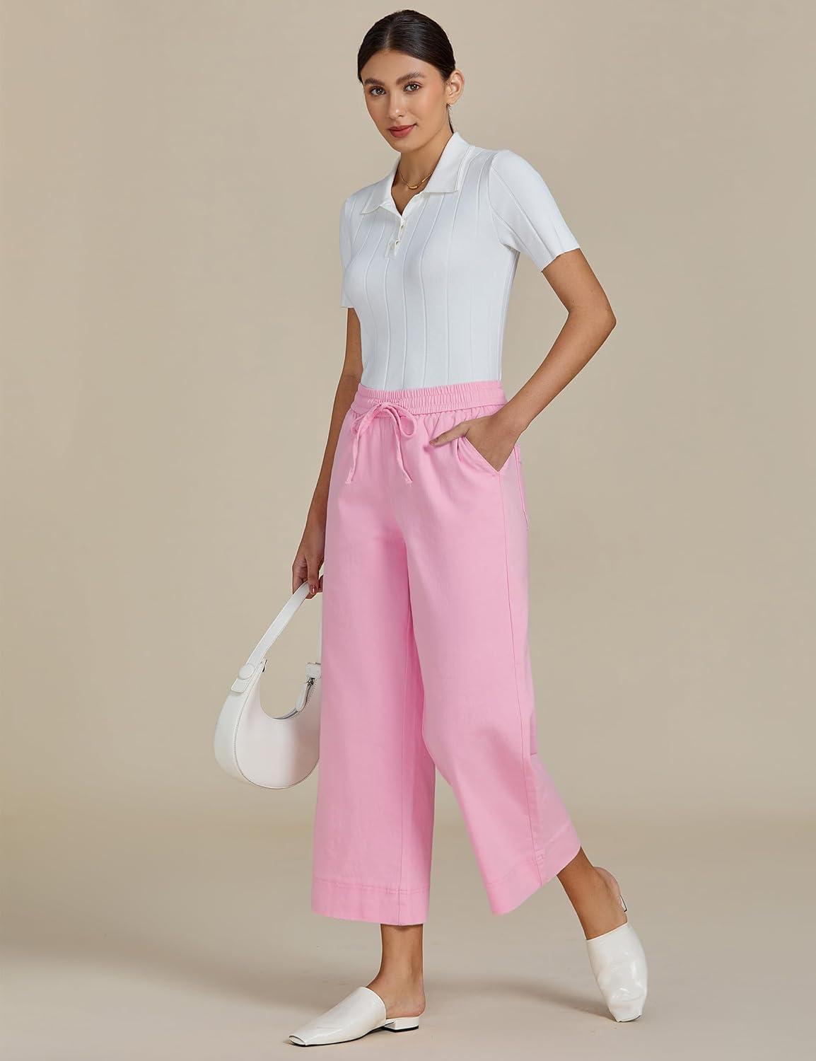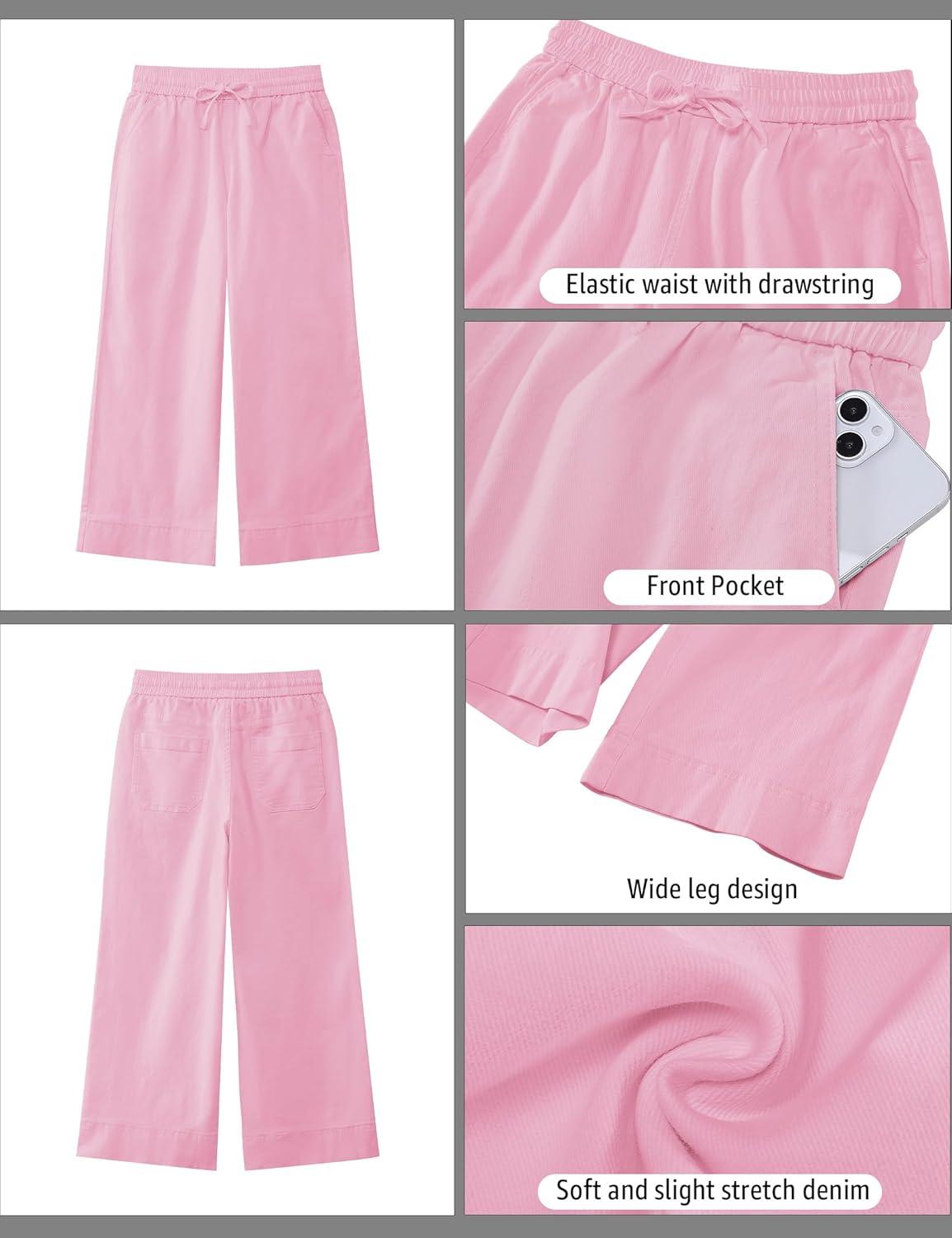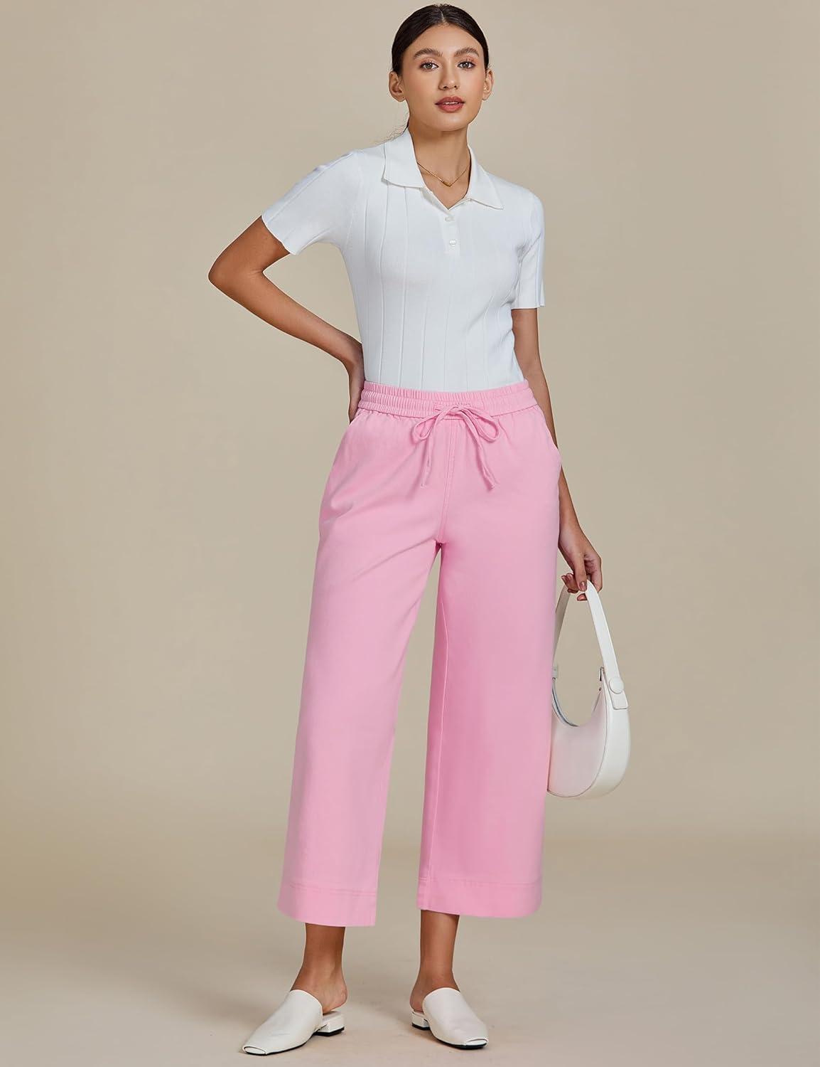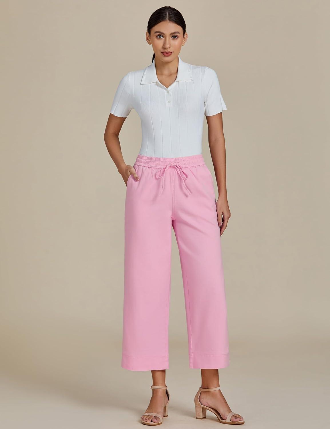 luvamia Wide Leg Jeans for Women High Waisted Cropped Pull On Jeans Elastic Wasit Drawstring Stretch Denim Trouser Pants(Pink-a-boo)