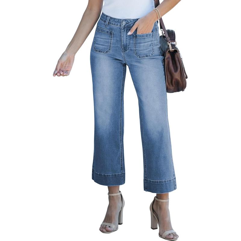 luvamia Wide Leg Jeans for Women Trendy High Waisted Flare Jeans Cropped Denim Pants Stretchy Baggy with Patch Pockets(Classic Blue)