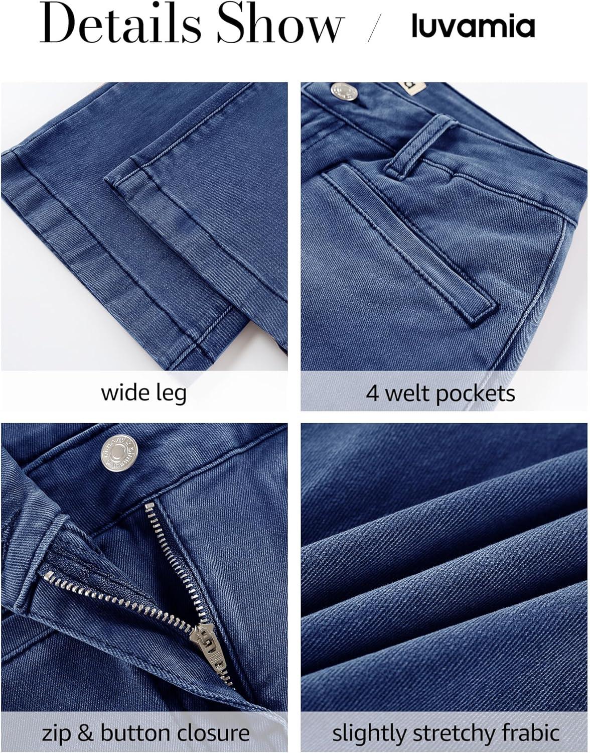 luvamia Wide Leg Jeans for Women Trendy High Waisted Welt Pockets Stretchy Denim Jeans Work Casual Trousers Pants(Darkness Blue)