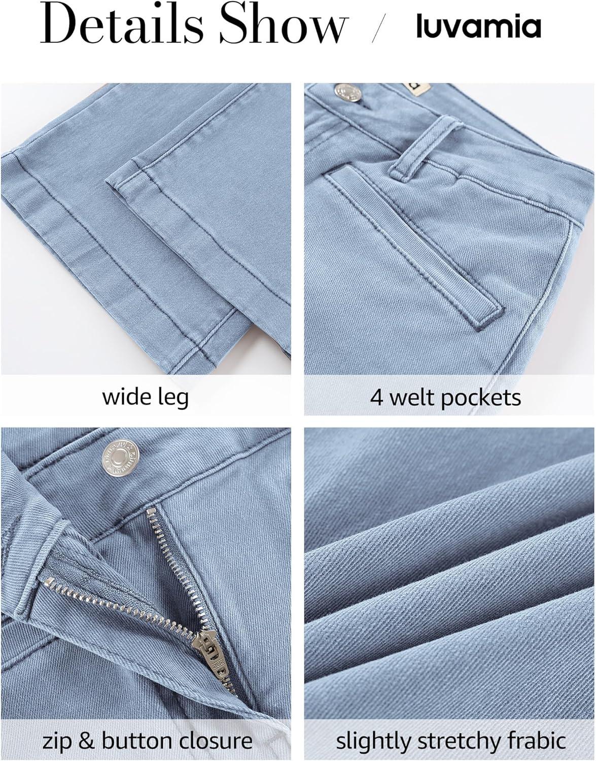 luvamia Wide Leg Jeans for Women Trendy High Waisted Welt Pockets Stretchy Denim Jeans Work Casual Trousers Pants(Lakeside Blue)