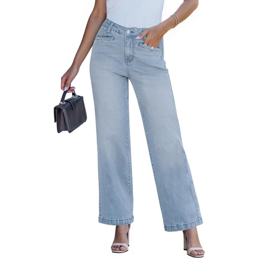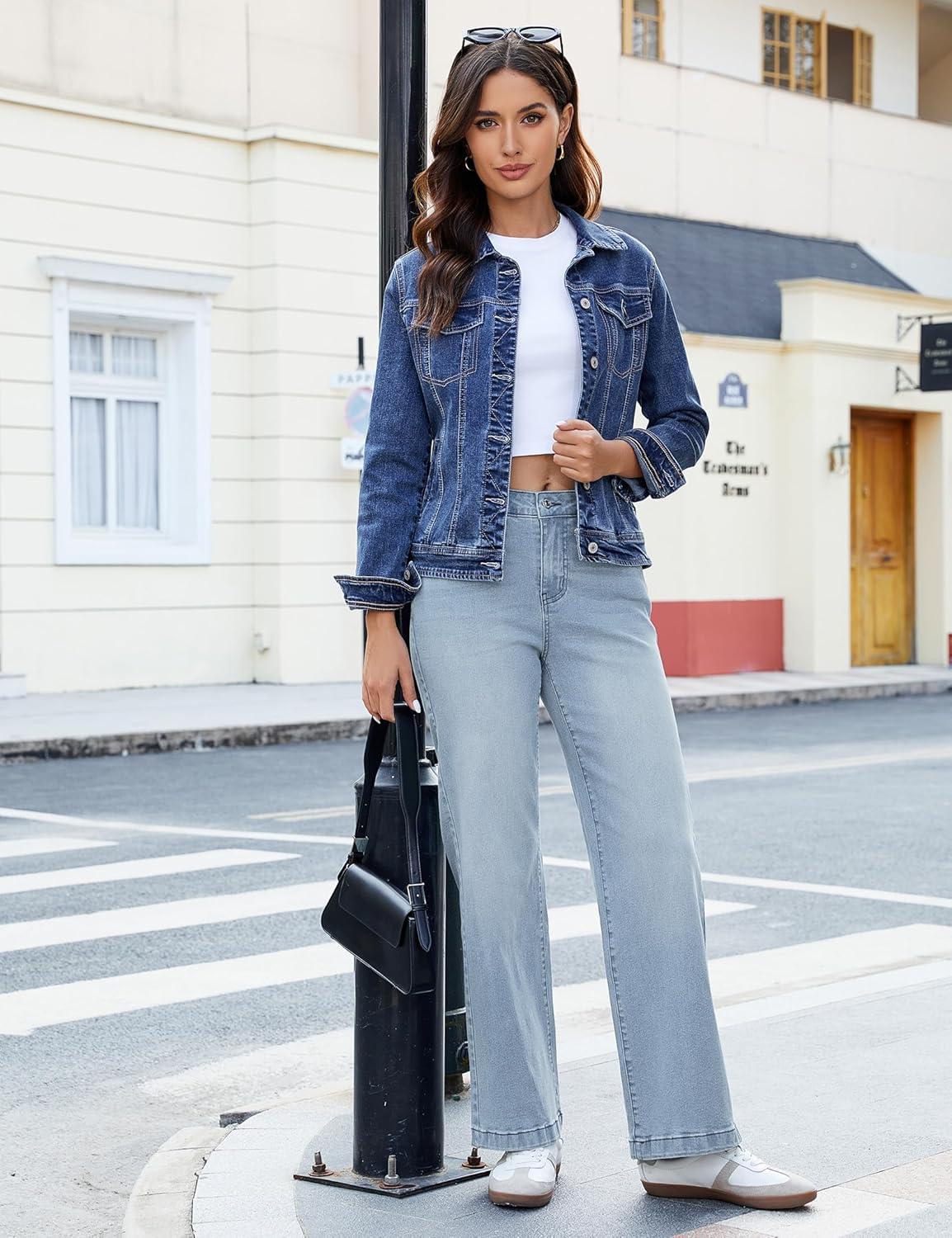 luvamia Wide Leg Jeans for Women Trendy High Waisted Welt Pockets Stretchy Denim Jeans Work Casual Trousers Pants(Medium Blue)