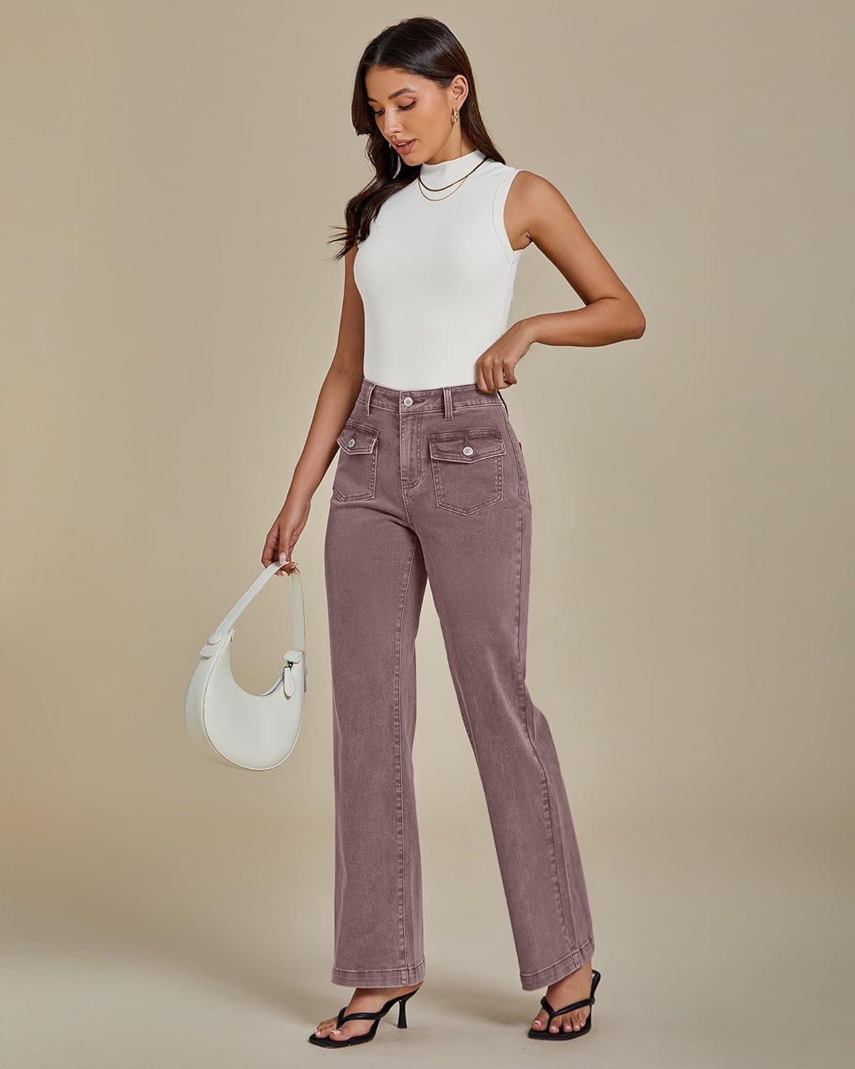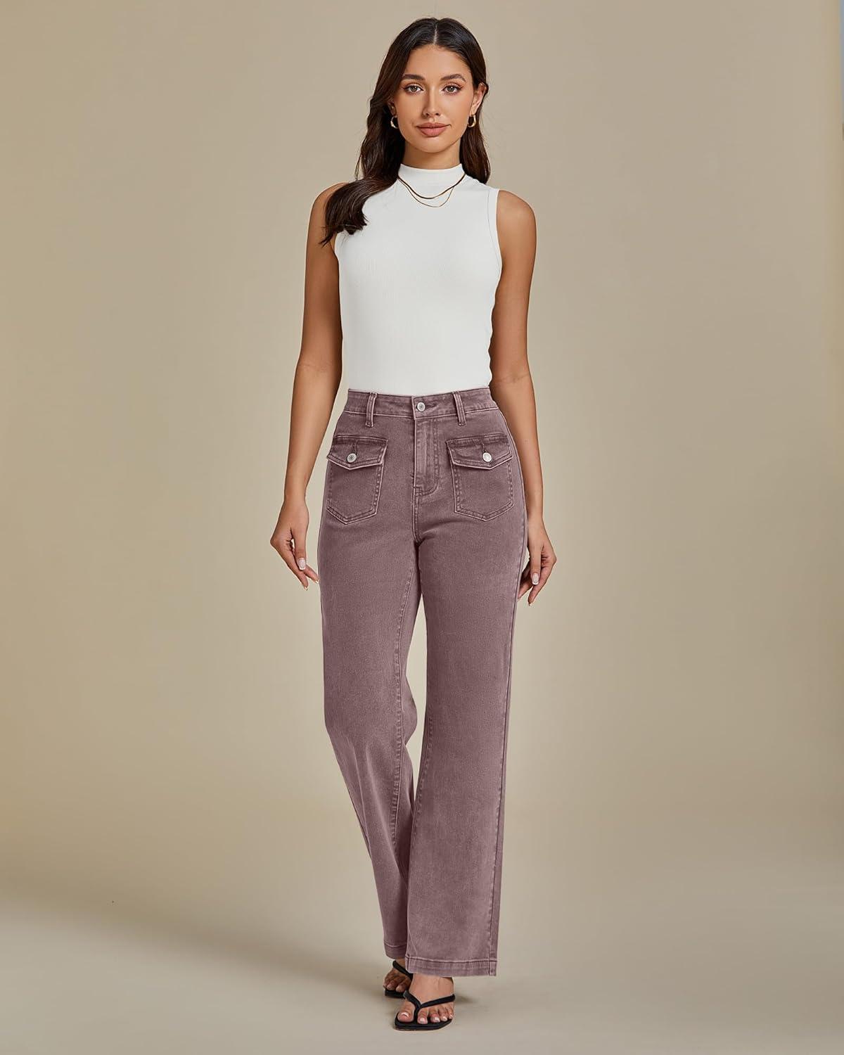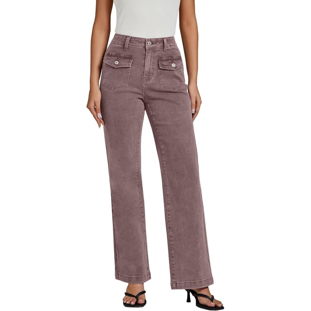 Don’t miss out on our limited-time offer: buy luvamia Wide Leg Jeans Woman High Waisted Trendy Stretchy Denim Work Trouser Jeans with Retro Button Flap Patch Pockets(Pecan Brown), get {accessory} 50% off!