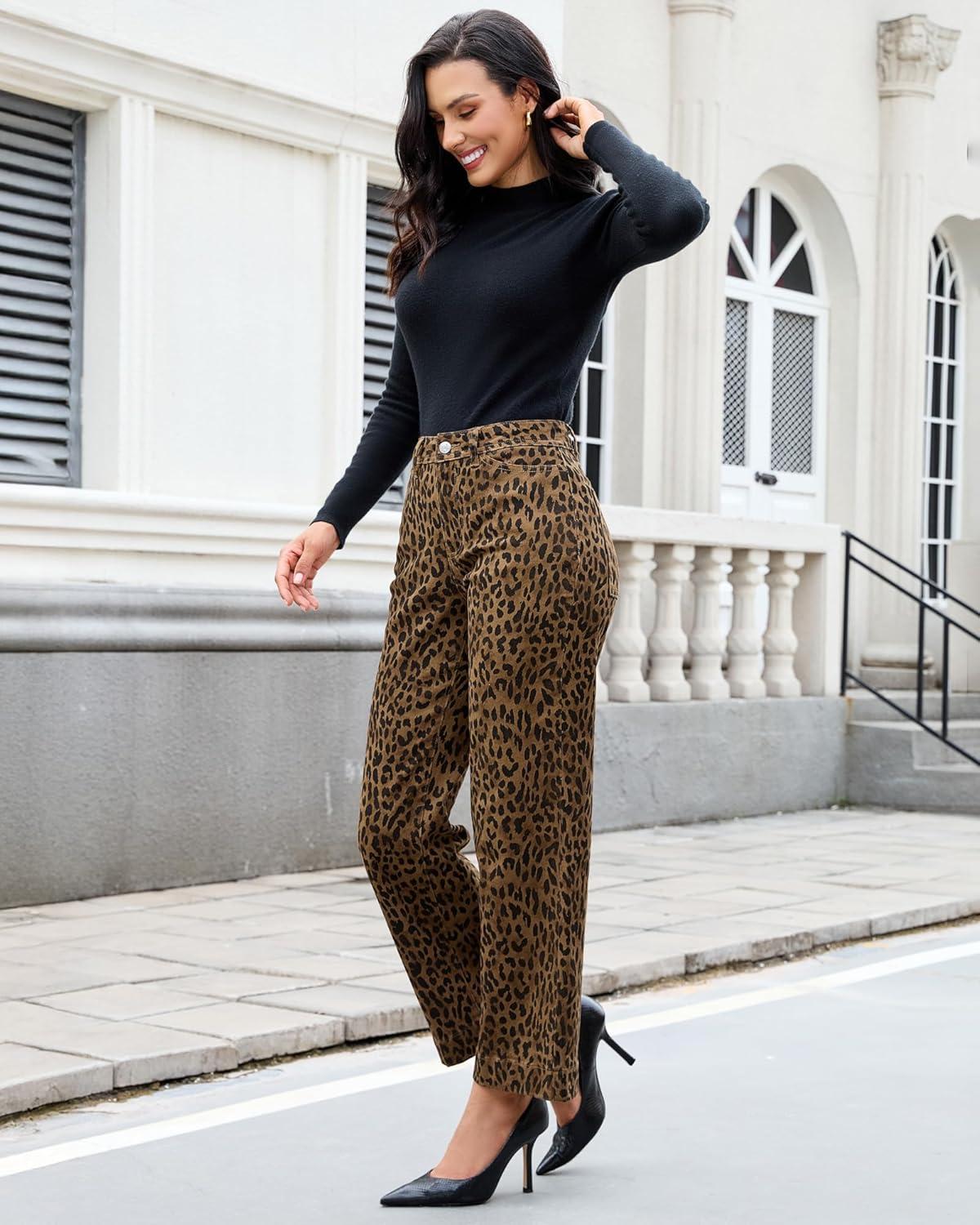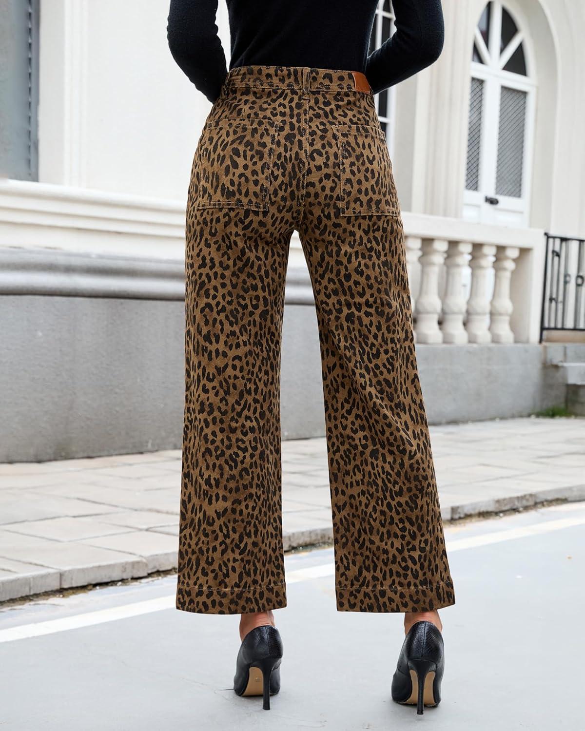 luvamia Wide Leg Jeans Woman Trendy High Waisted Leopard Cheetah Print Ankle Length Stretchy Denim Pants with Pockets(Brown Cheetah)