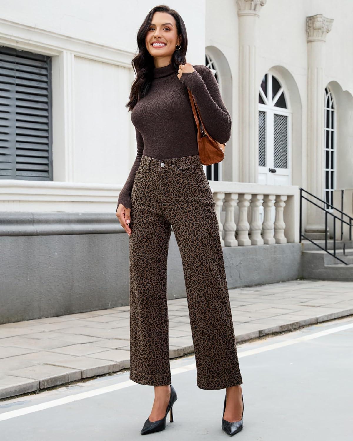 luvamia Wide Leg Jeans Woman Trendy High Waisted Leopard Cheetah Print Ankle Length Stretchy Denim Pants with Pockets(Mini Brown Leopard)