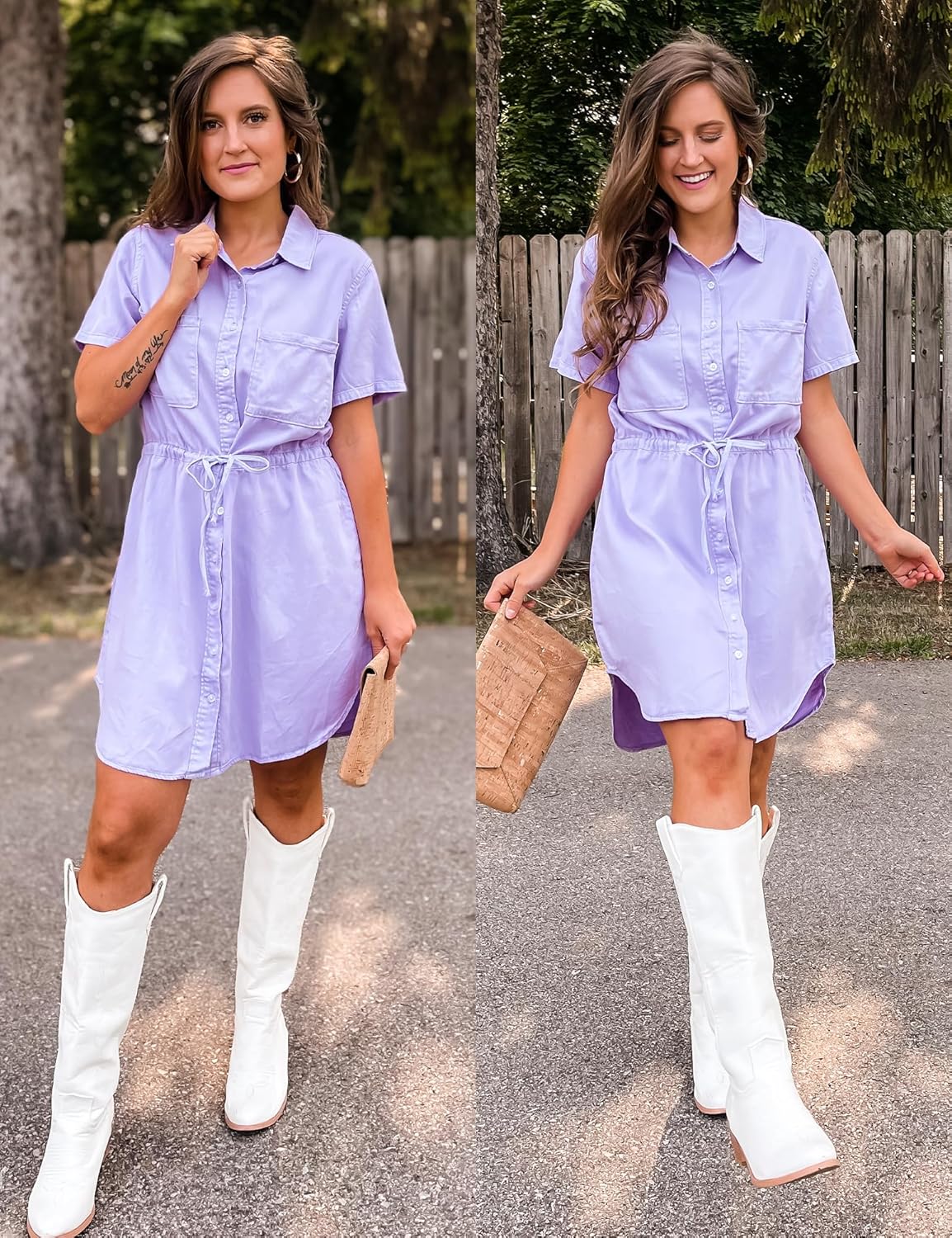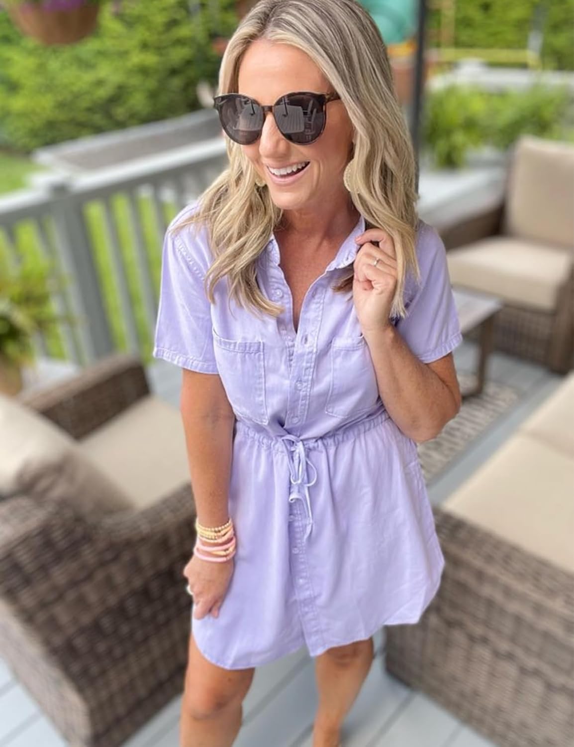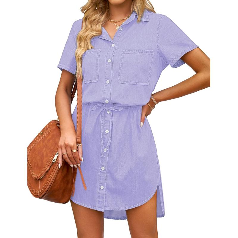Get the luvamia Women Casual Denim Dress Short Sleeve Tie Waist Classic Jean Shirt Dress(Digital Lavender) you’ve been eyeing at a discounted price during our seasonal sale event.