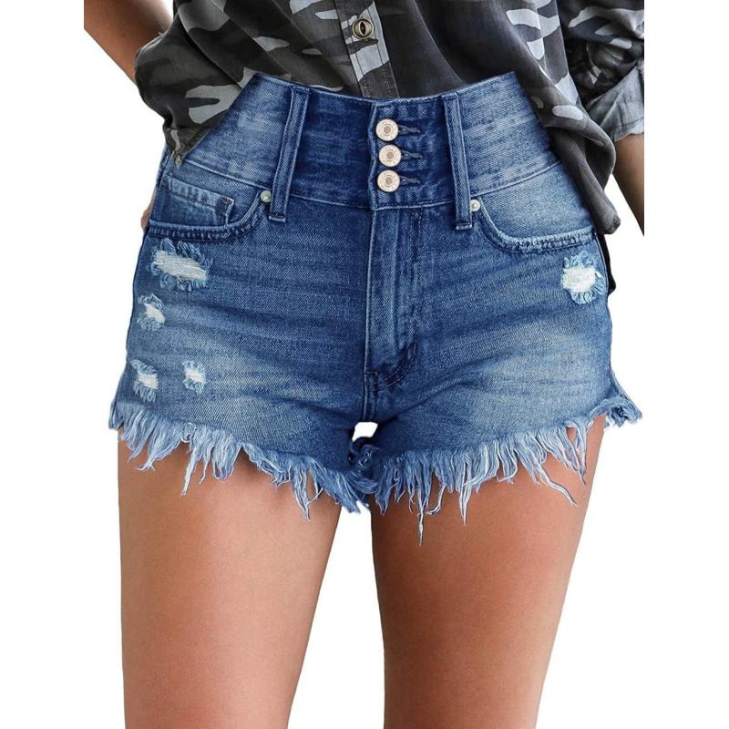 luvamia Women Casual High Waisted Denim Shorts Frayed Raw Hem Ripped Jeans ShortsD Blue Plunge