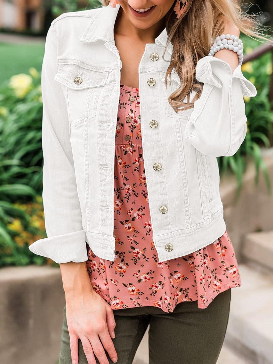 Our holiday sale features the best deals on luvamia Women’s Basic Button Down Stretch Fitted Long Sleeves Denim Jean Jacket(Cream White) and accessories. Shop now and save!